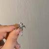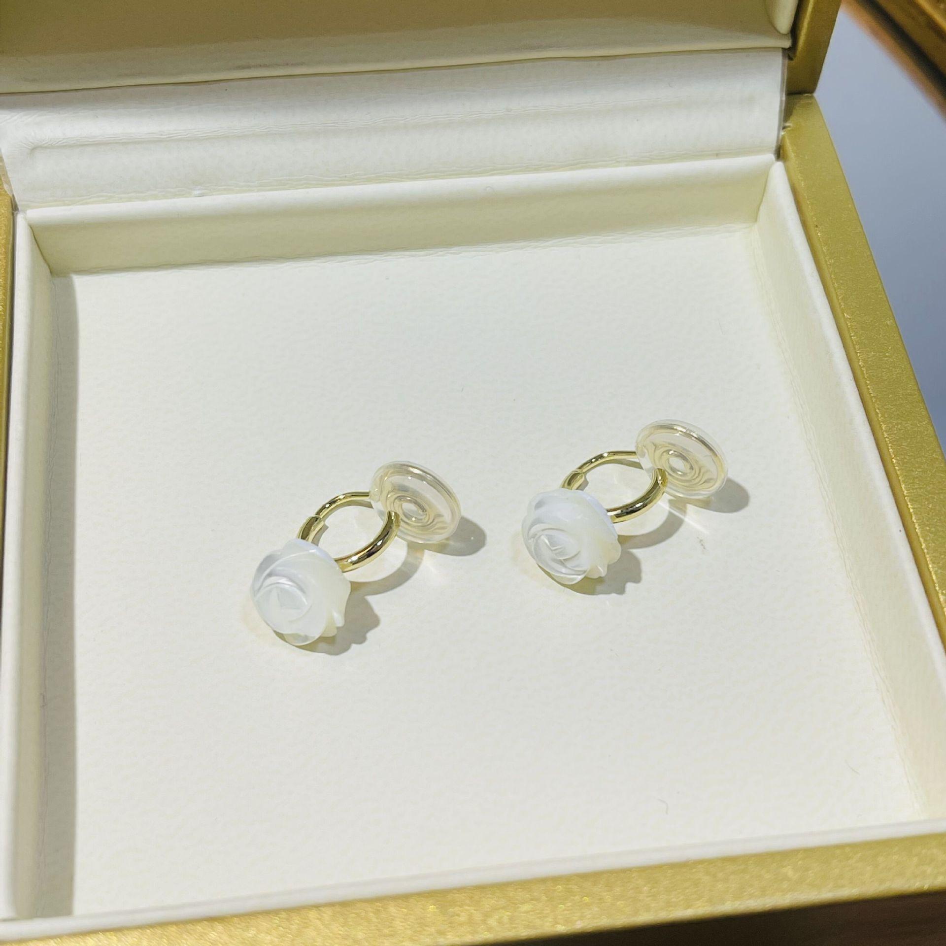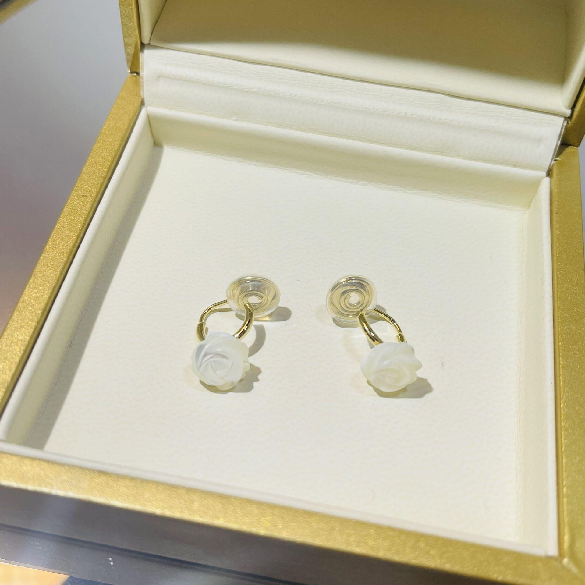 Elegantes pendientes con forma de flor de rosa blanca sin orificio para la oreja, con diseño de hada femenina, con forma de hueso, a la moda, con viento frío