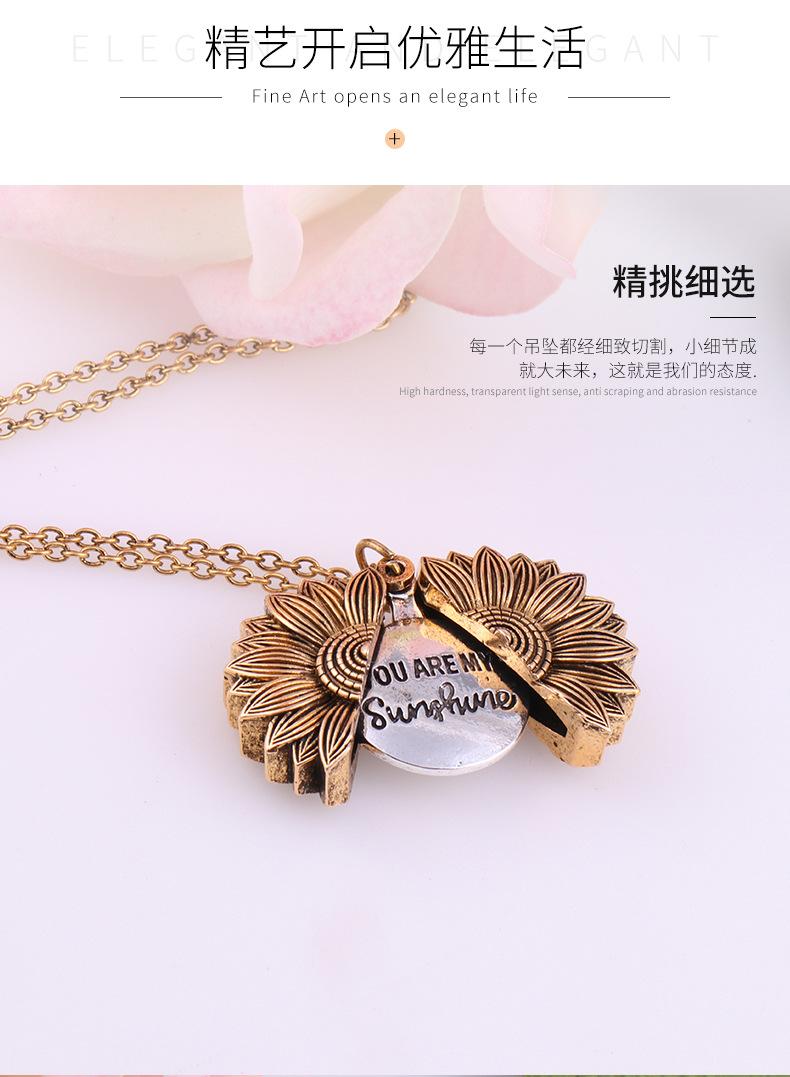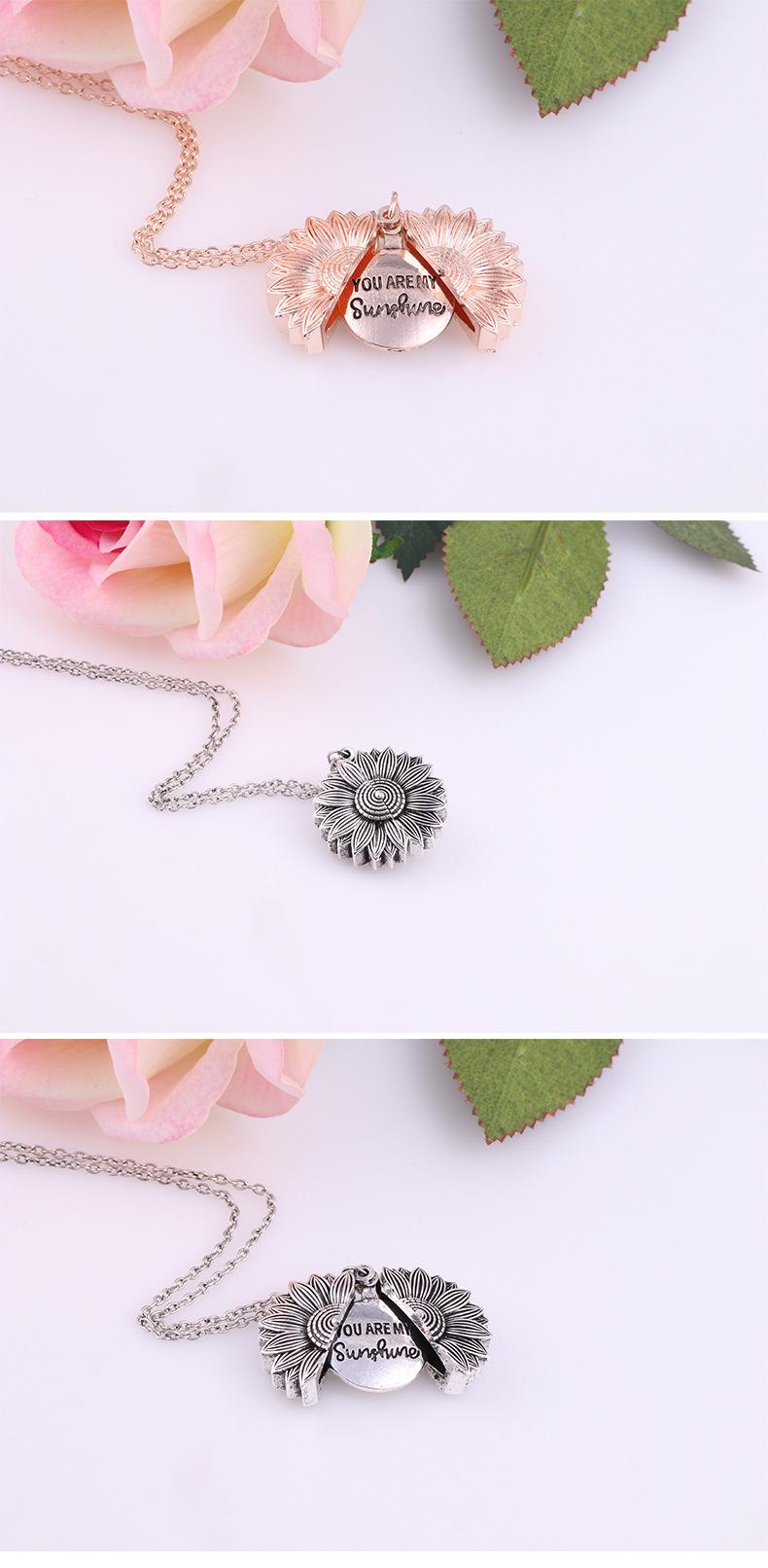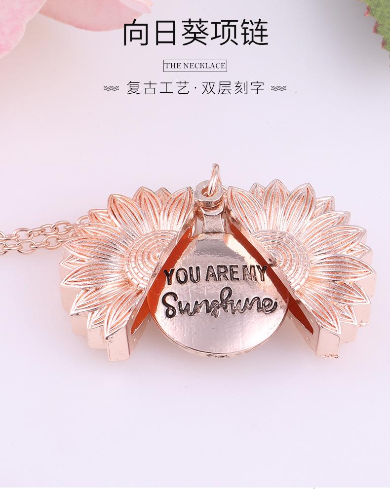 Collar de flor nuevo europeo y americano, collar de aleación de flor de girasol con doble inscripción que se puede abrir, cadena para clavícula al por mayor