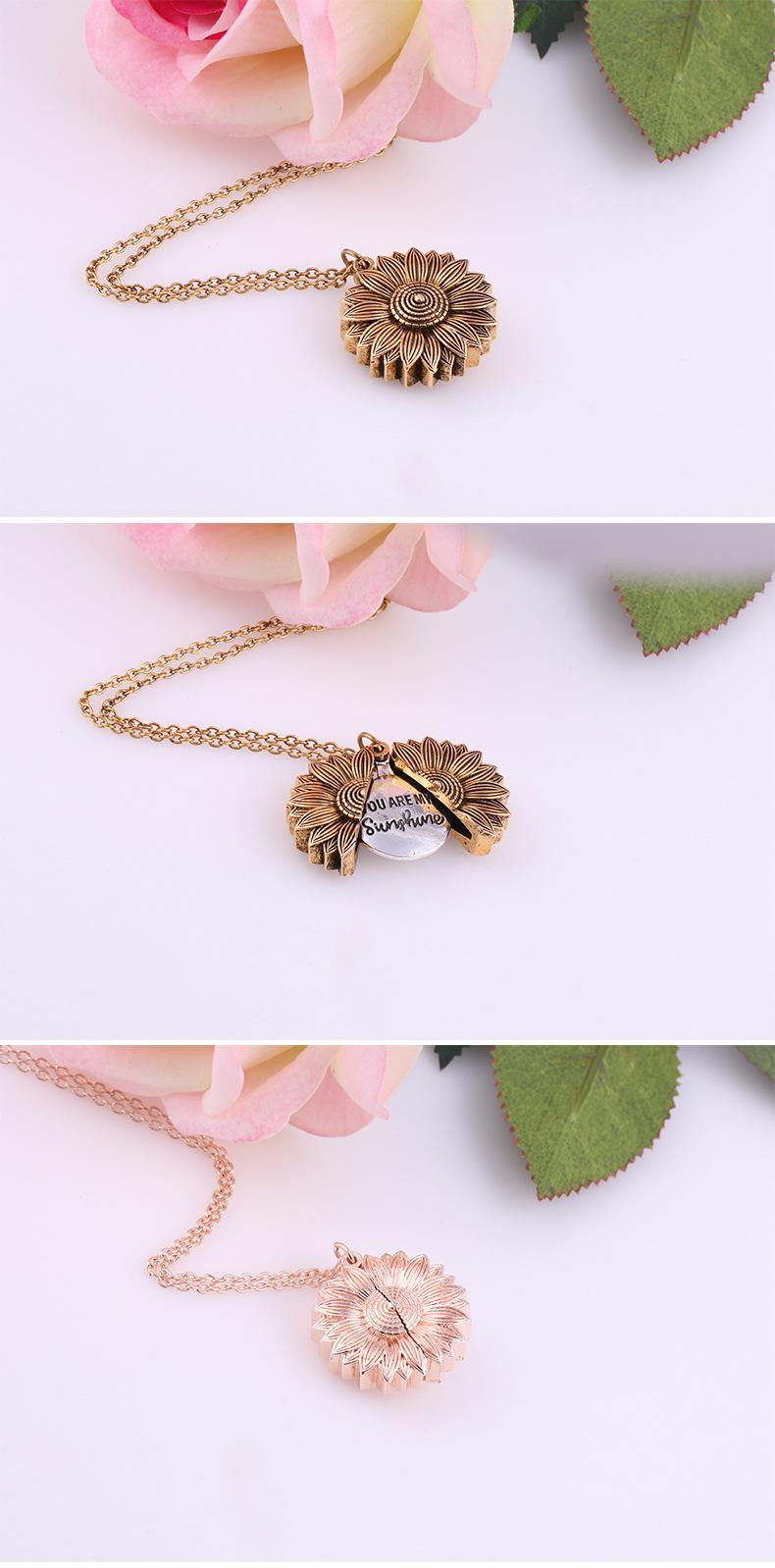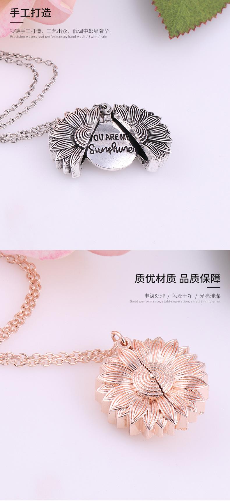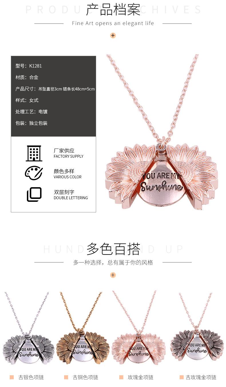 Collar de flor nuevo europeo y americano, collar de aleación de flor de girasol con doble inscripción que se puede abrir, cadena para clavícula al por mayor