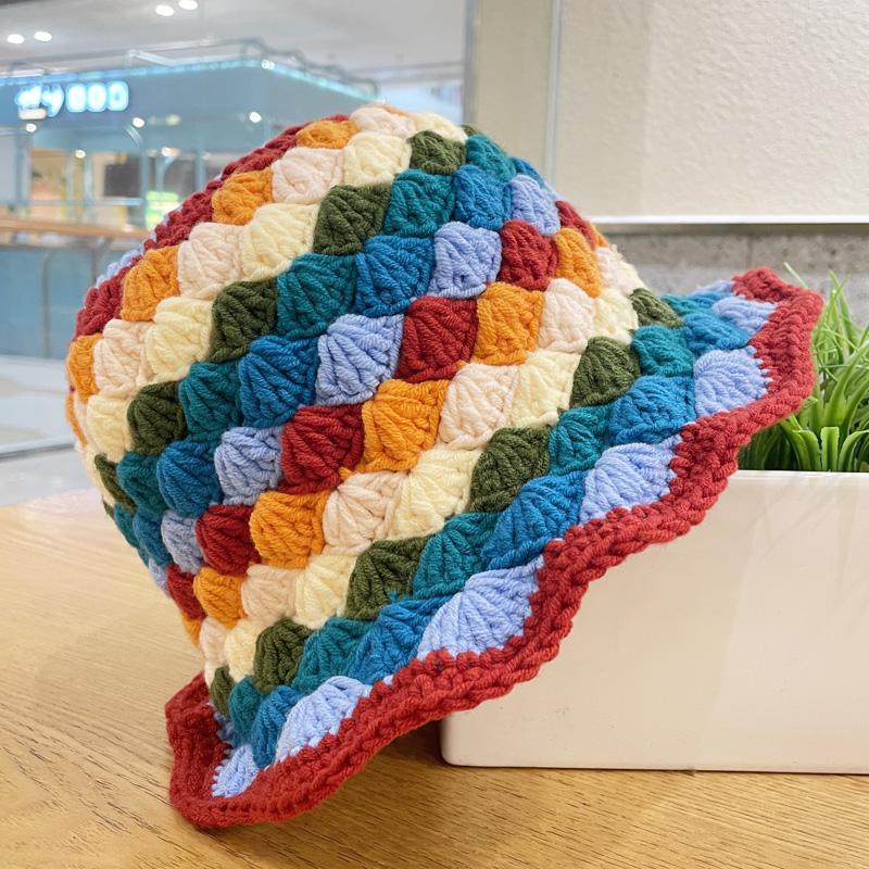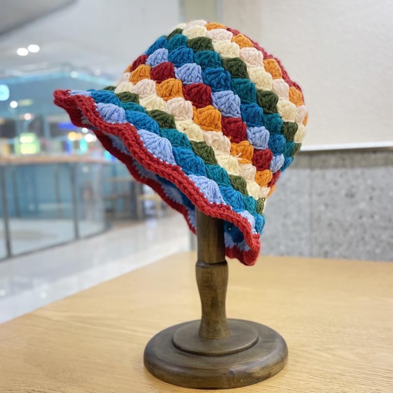 Gorro de lana con diseño de nicho de estilo elegante para mujer, otoño e invierno, retro, hecho a mano, de crochet, color pescador, sombrero de cubo, moda