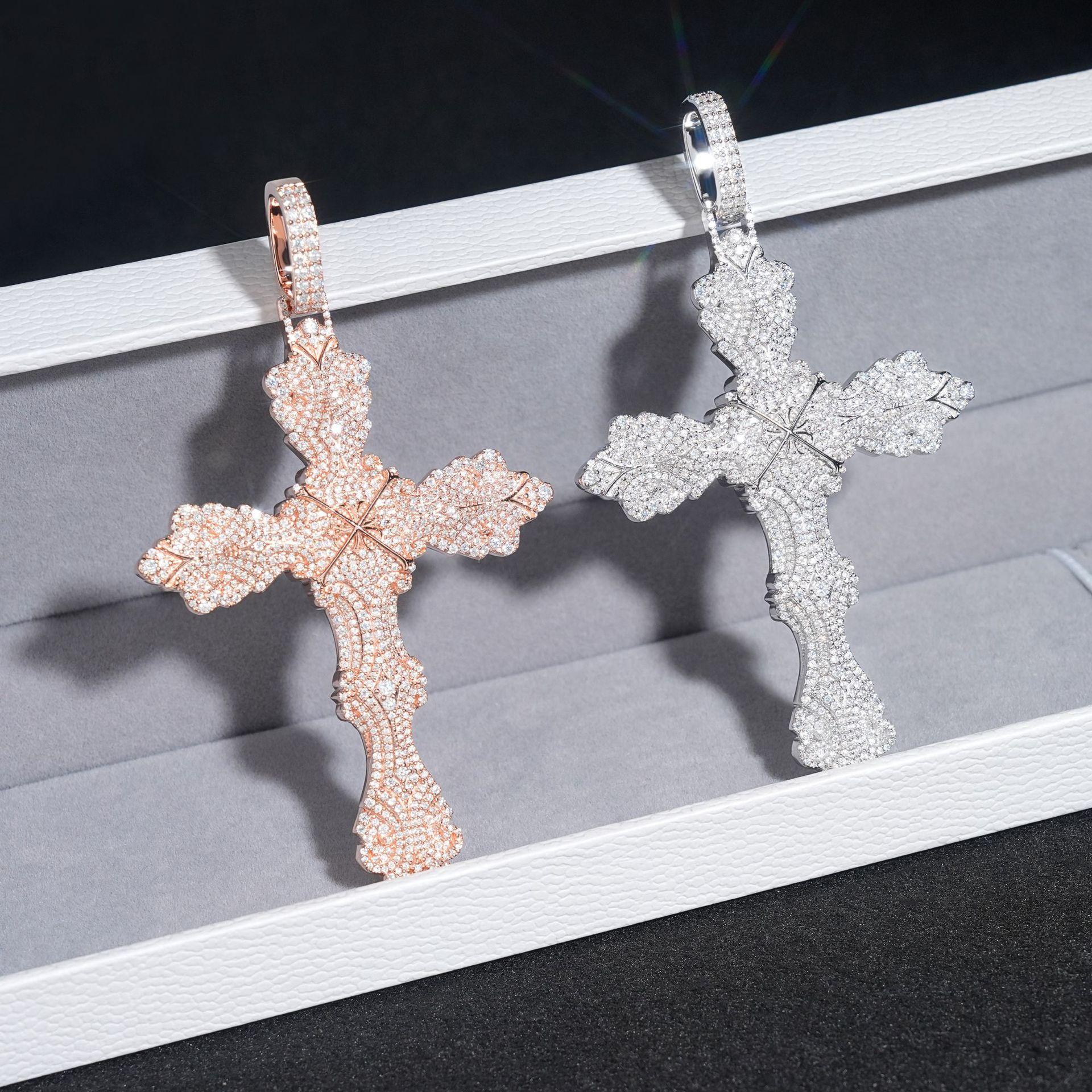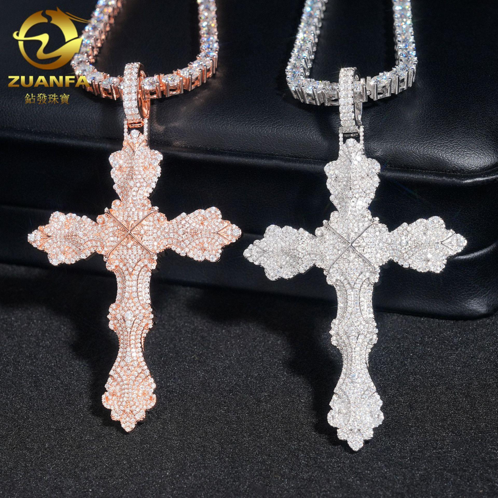 Colgante de hip-hop con moissanita de plata 925 y diamantes, conjunto completo, colgante de cruz, collar portátil de 8 mm, gran oferta transfronteriza.