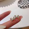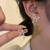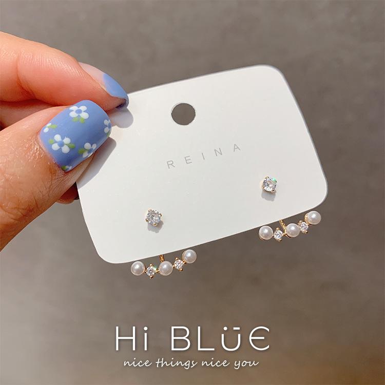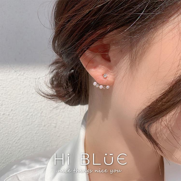 Pendientes de plata de ley S925 con forma de aguja de Dongdaemun, con perla colgante en la parte trasera y diamantes de imitación, elegantes y pequeños, para mujer.