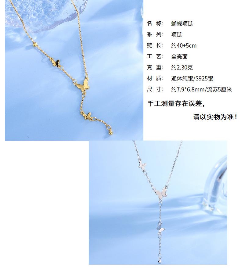 Collar de Borla de Mariposa de Plata Esterlina S925 para Mujer Ins Zhoujia Mismo Estilo Nicho Elegante Simple Lujo Accesible Cadena Clavícula Mejor Amiga