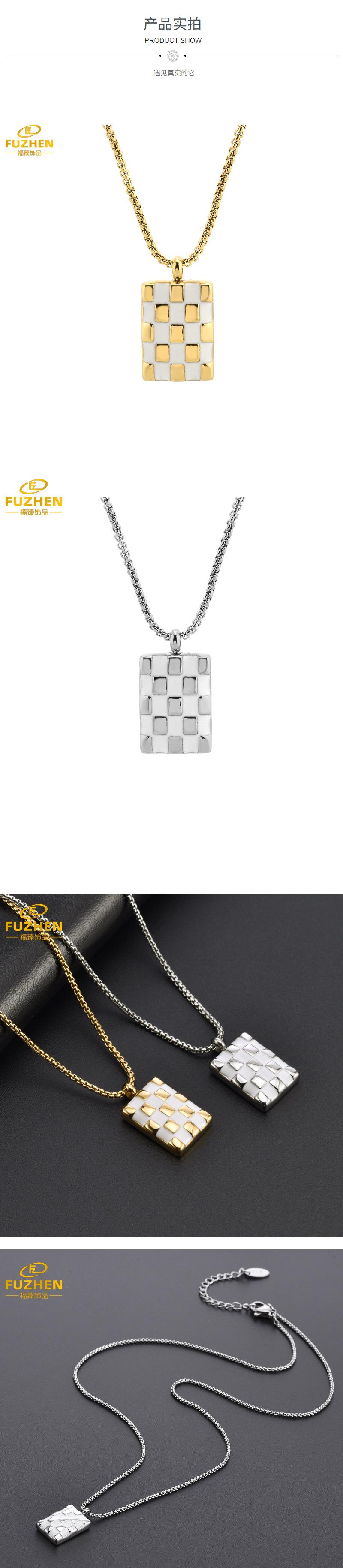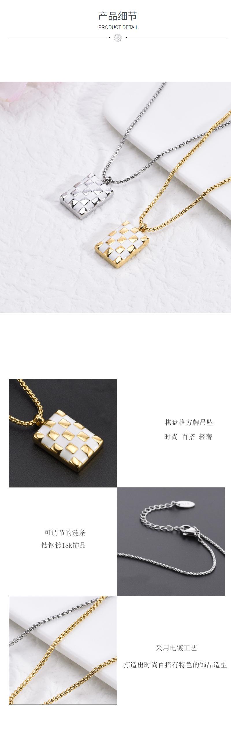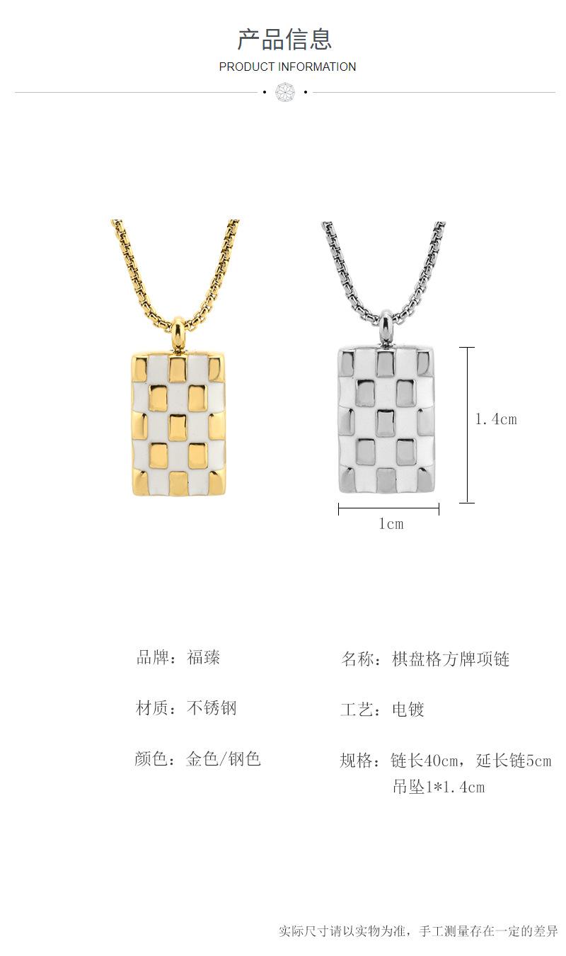 ![]() Collar de tablero de ajedrez de marca cuadrada transfronteriza europea y americana, acero de titanio chapado en oro de 18k, cadena para clavícula, colgante cuadrado de estilo frío retro