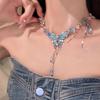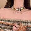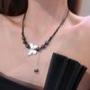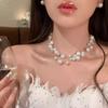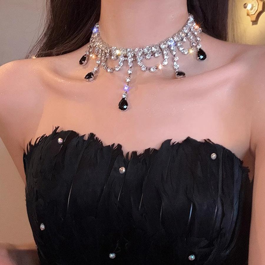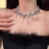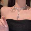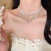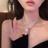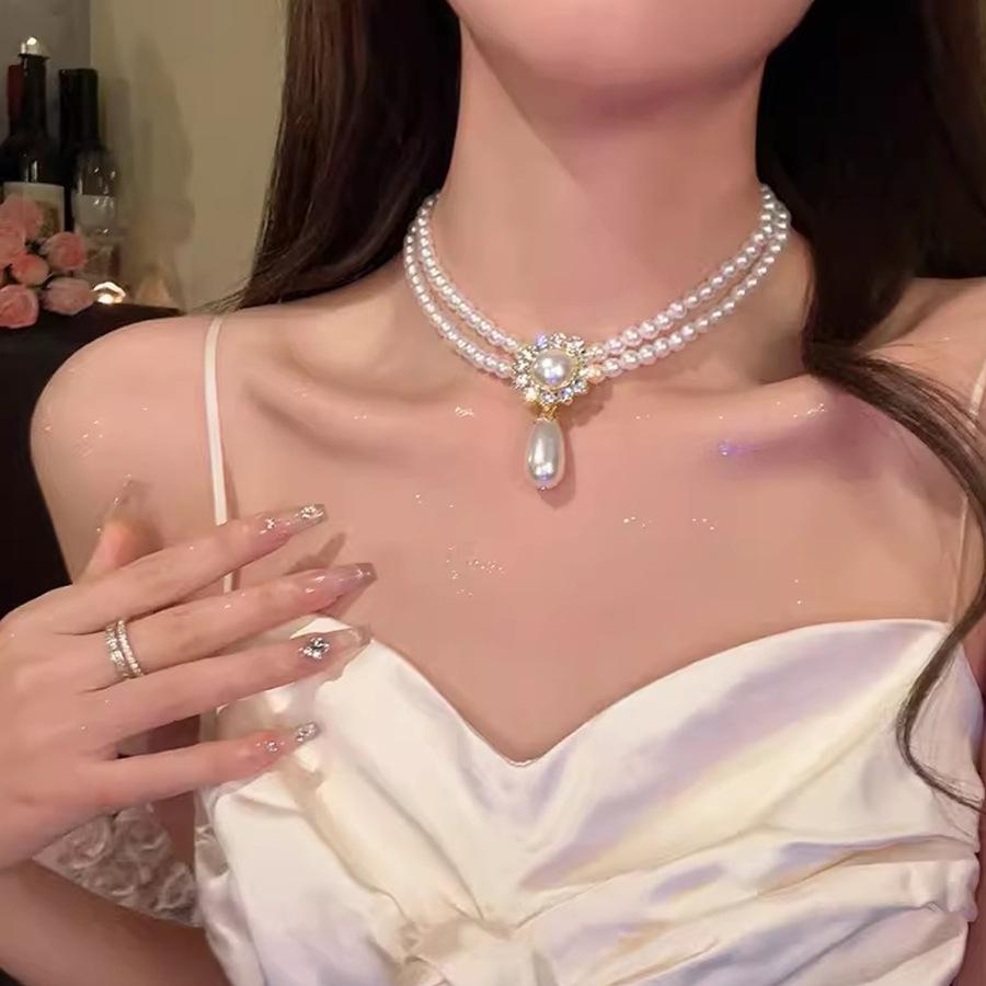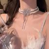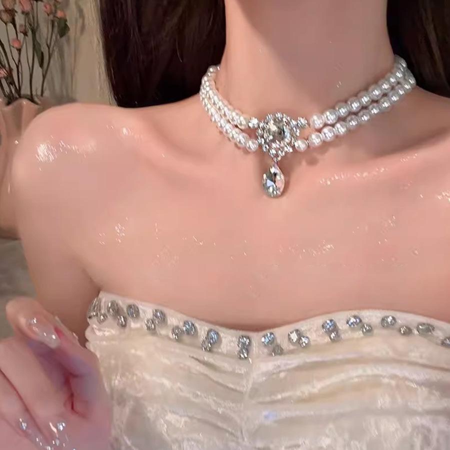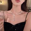 Collar de perlas con borlas de diamantes súper llamativos para mujer, cadena de clavícula de lujo ligera y de alta gama, accesorios que combinan con todo, 2024