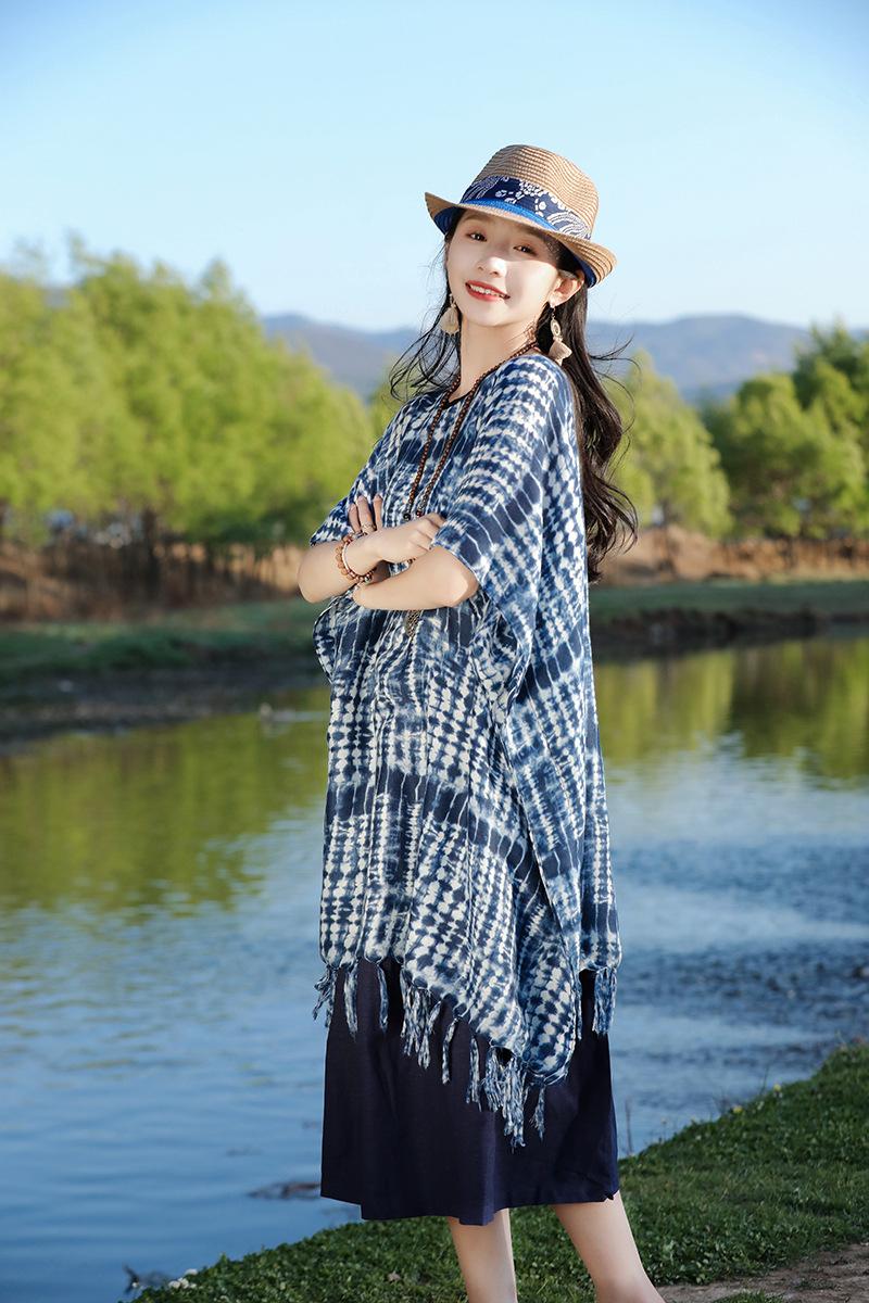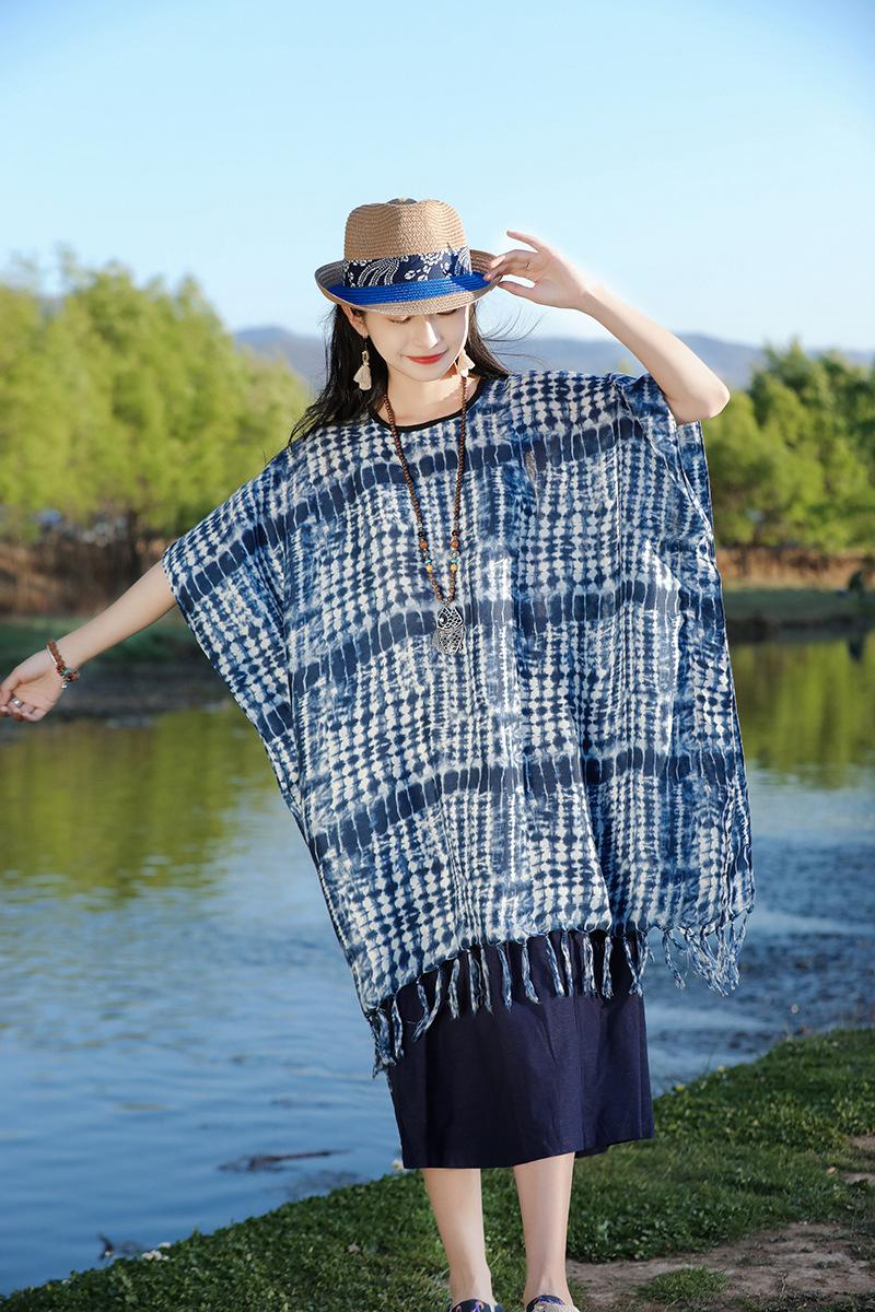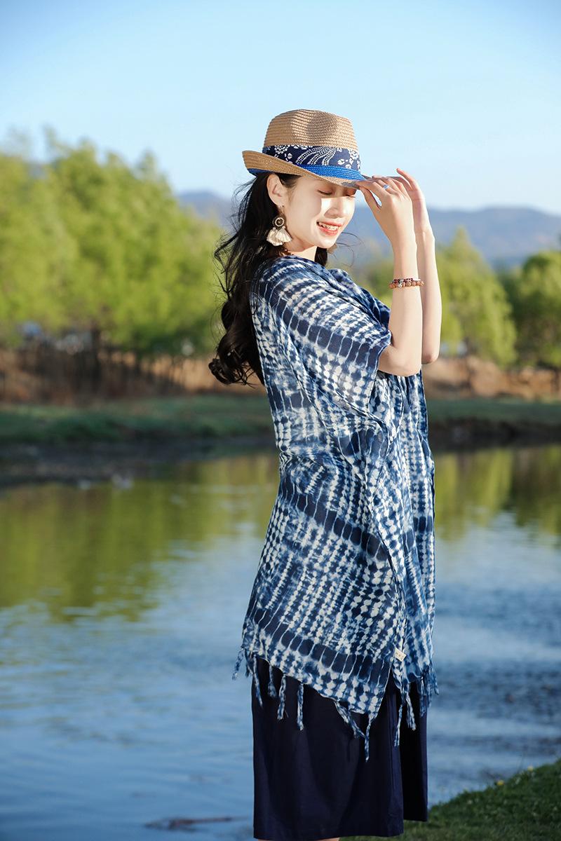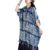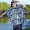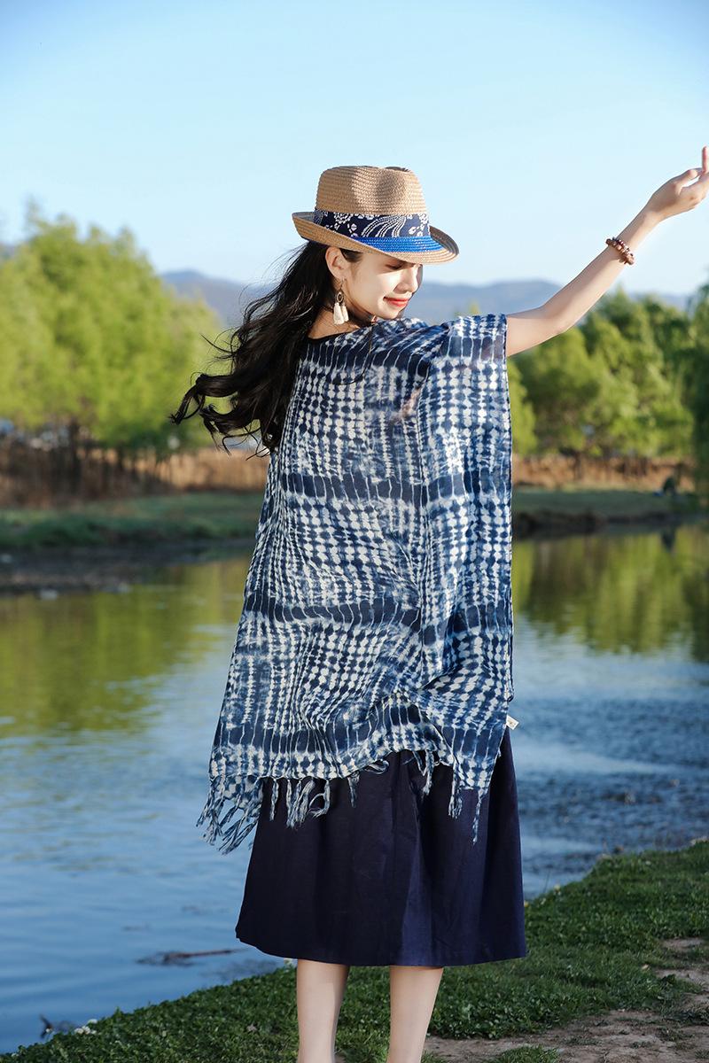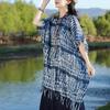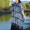 Bufanda de Algodón Batik Azul para Mujer Viaje Colgante Barba Jersey Estilo Étnico Fotografía Chal Parasol Protector Solar Abrigo Holgado