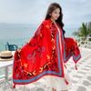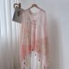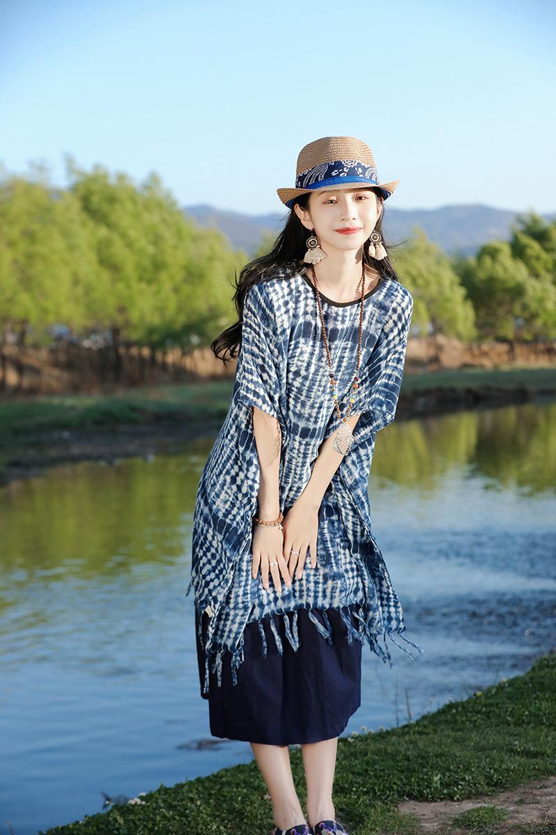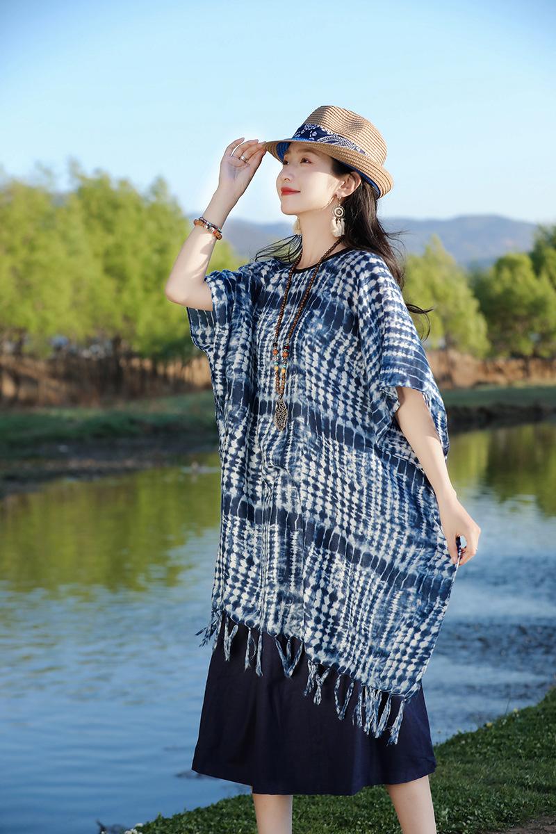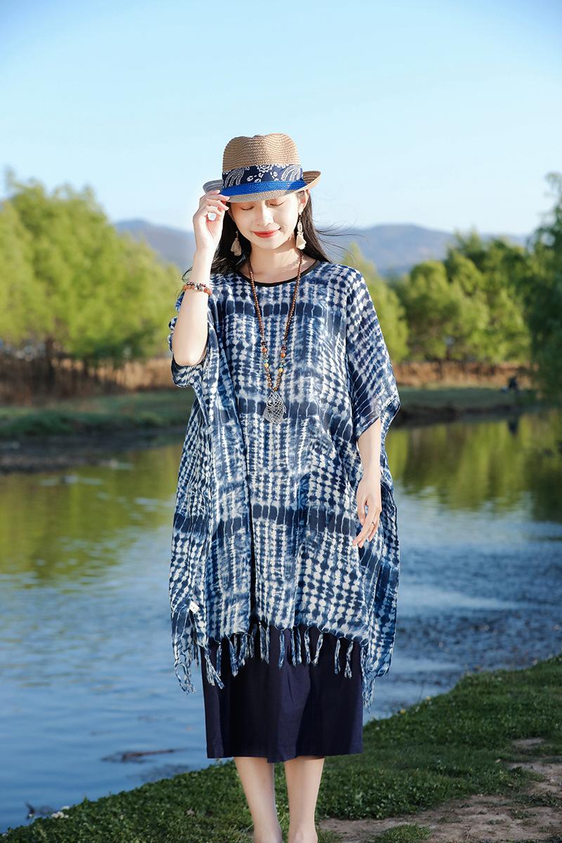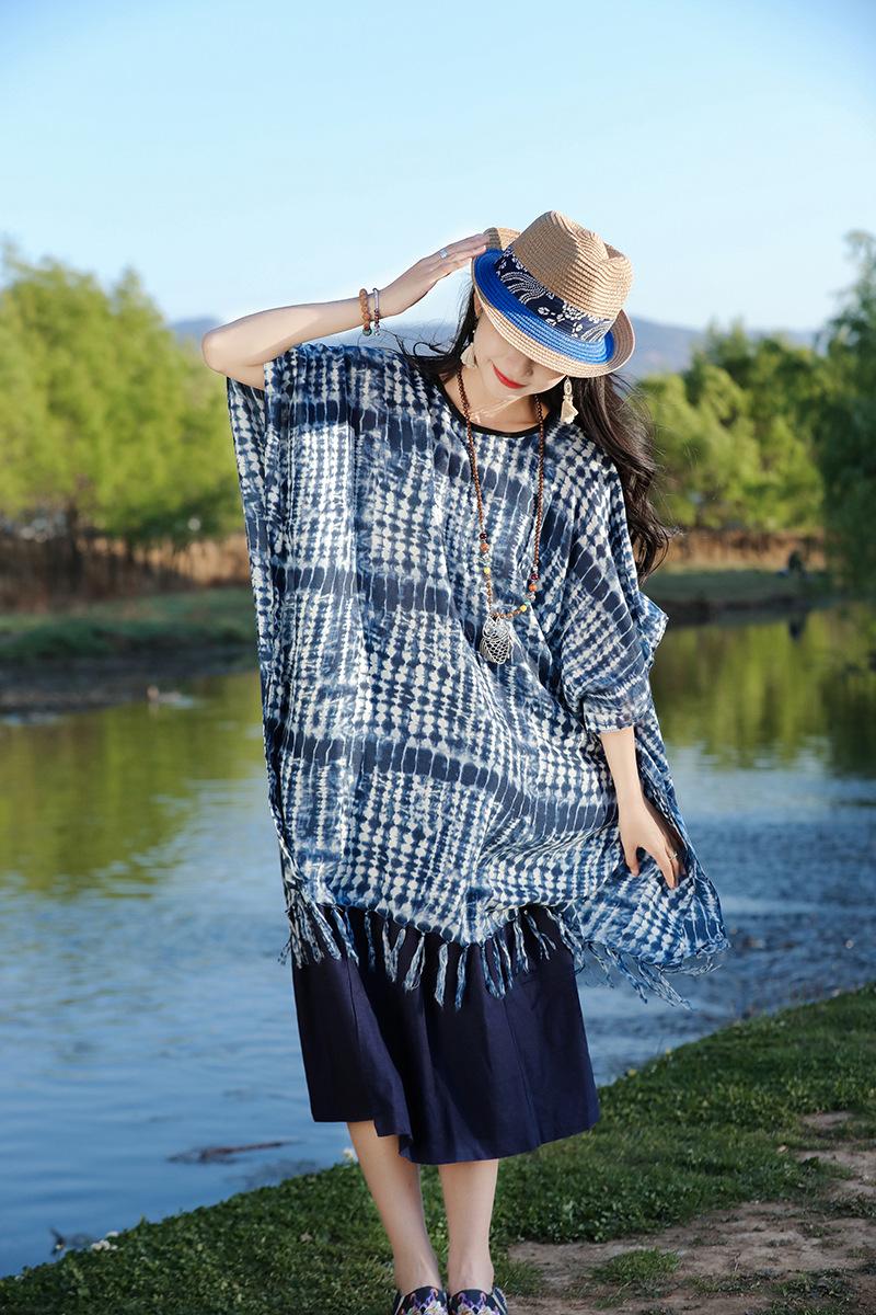 Bufanda de Algodón Batik Azul para Mujer Viaje Colgante Barba Jersey Estilo Étnico Fotografía Chal Parasol Protector Solar Abrigo Holgado