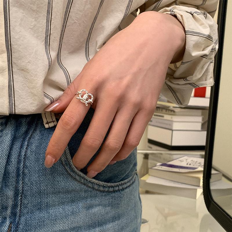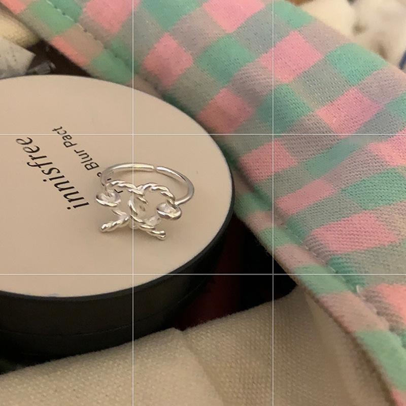Anillo Hueco Trenzado de Amor para Mujer Anillo de Dedo Abierto de Plata S925 Simple y Dulce con Lazo Apilable Anillo de Dedo de Celebridad de Internet