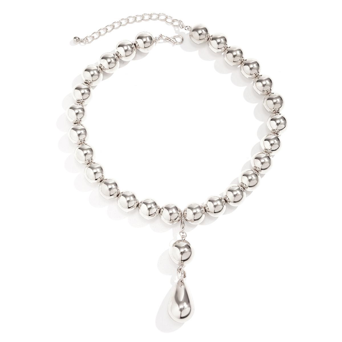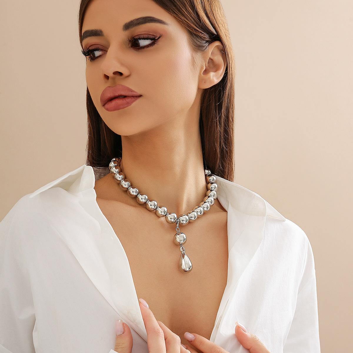 Collar de cuentas exageradas transfronterizo europeo y americano, joyería para mujer, gargantilla de cuentas a juego con gotas de agua metálicas.
