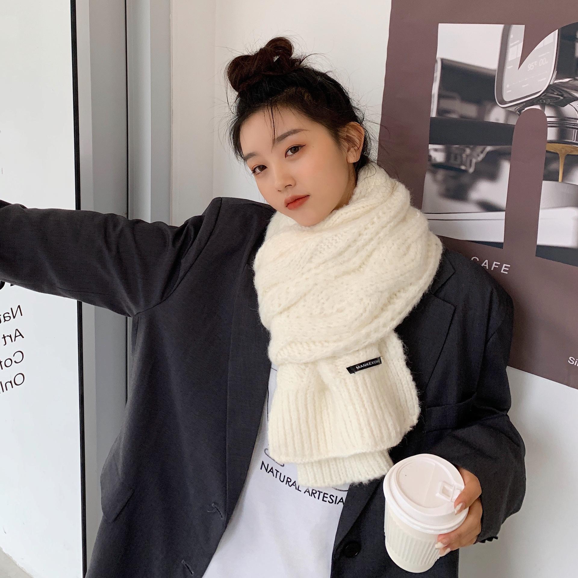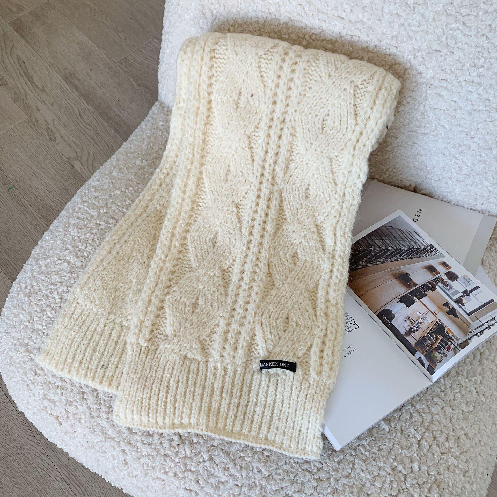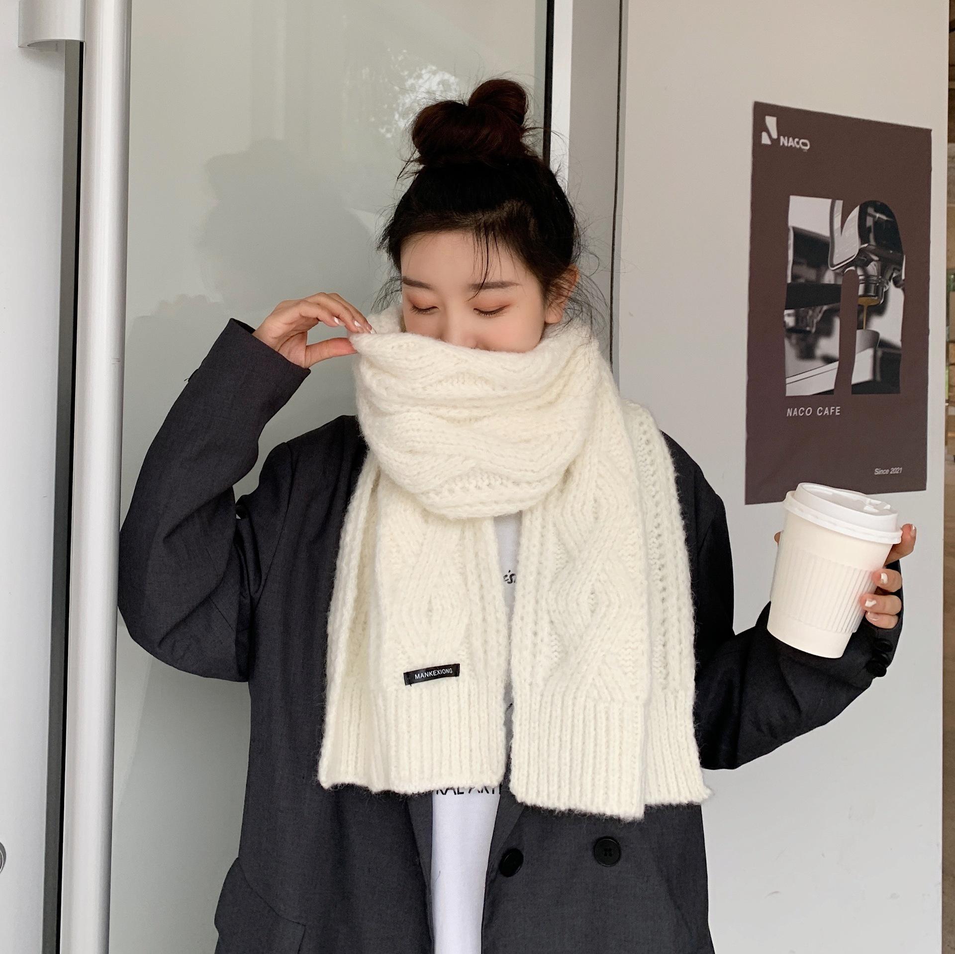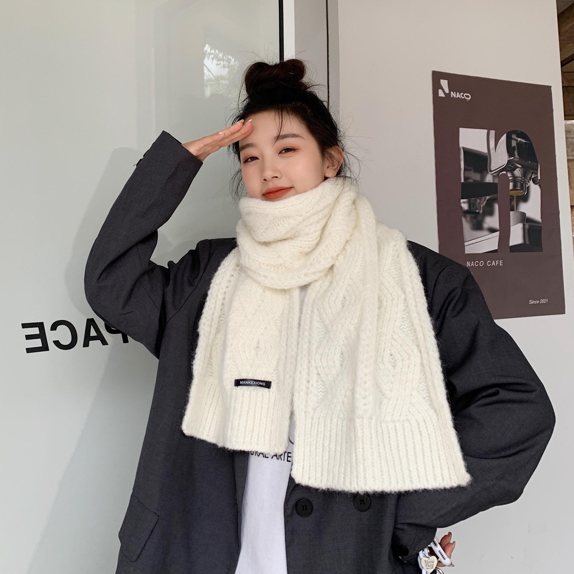 Bufanda de lana torcida para mujer, estilo coreano de invierno, a la moda, combina con todo, para chica, corazón, estudiante, color sólido, cálida bufanda de punto