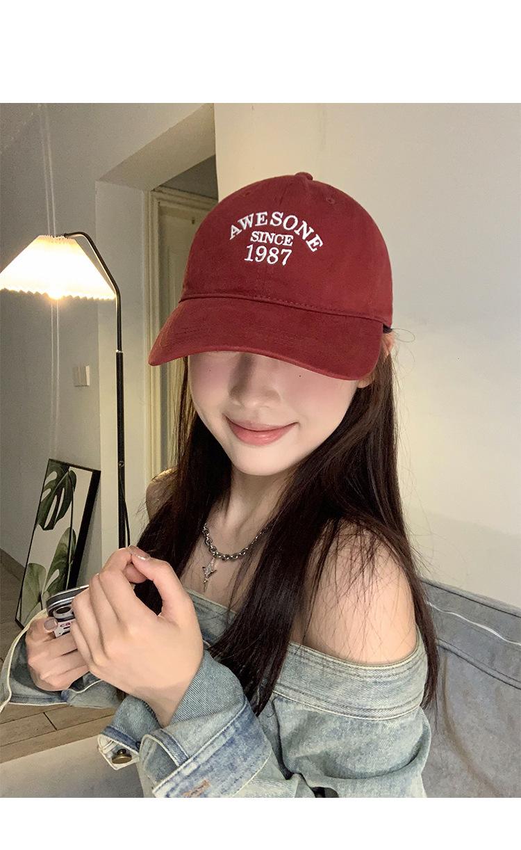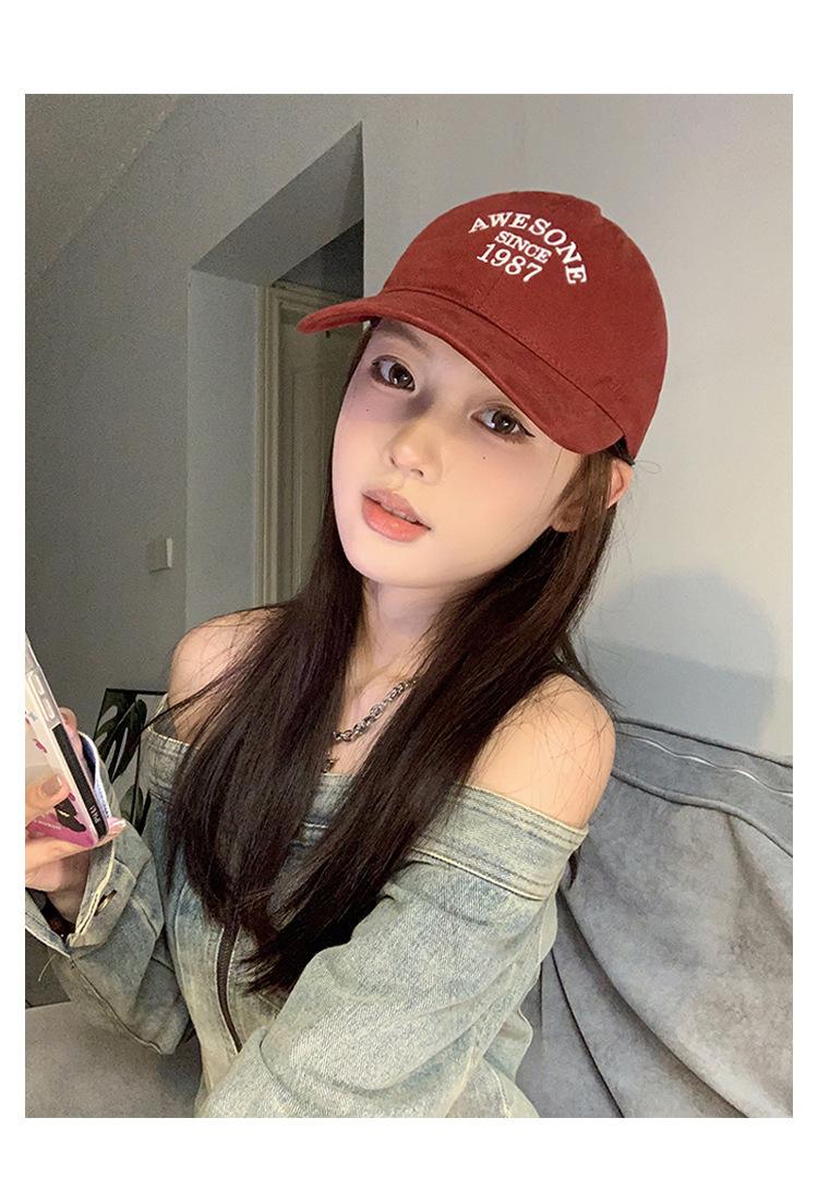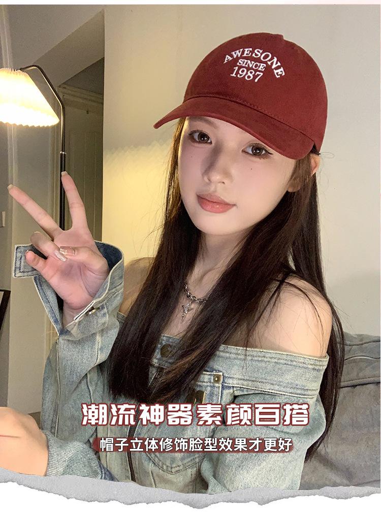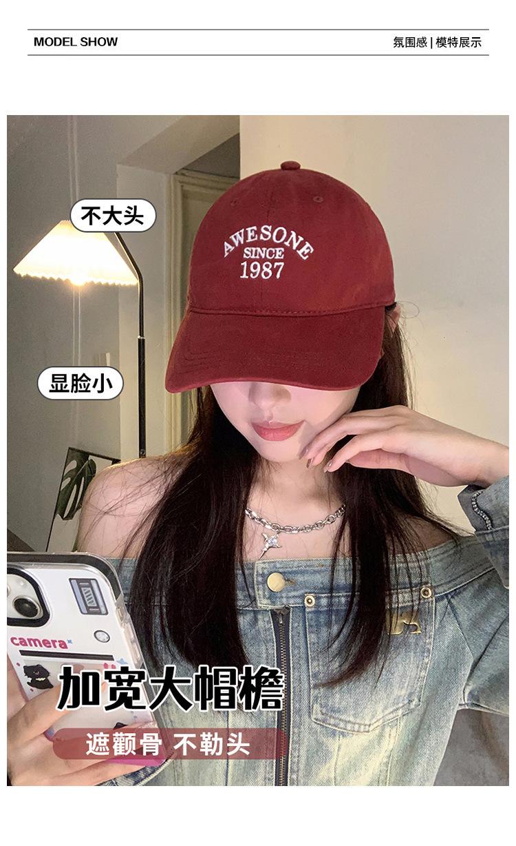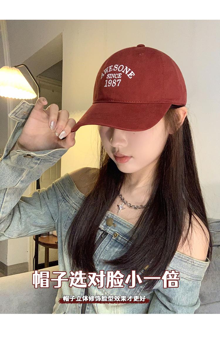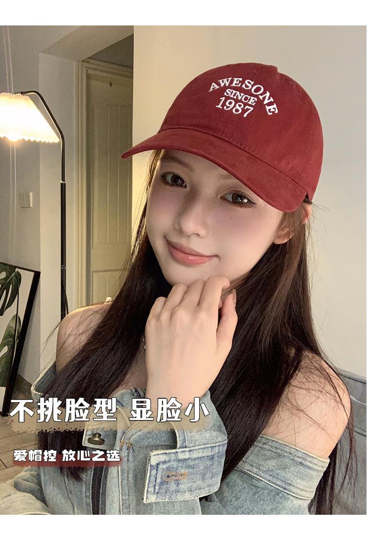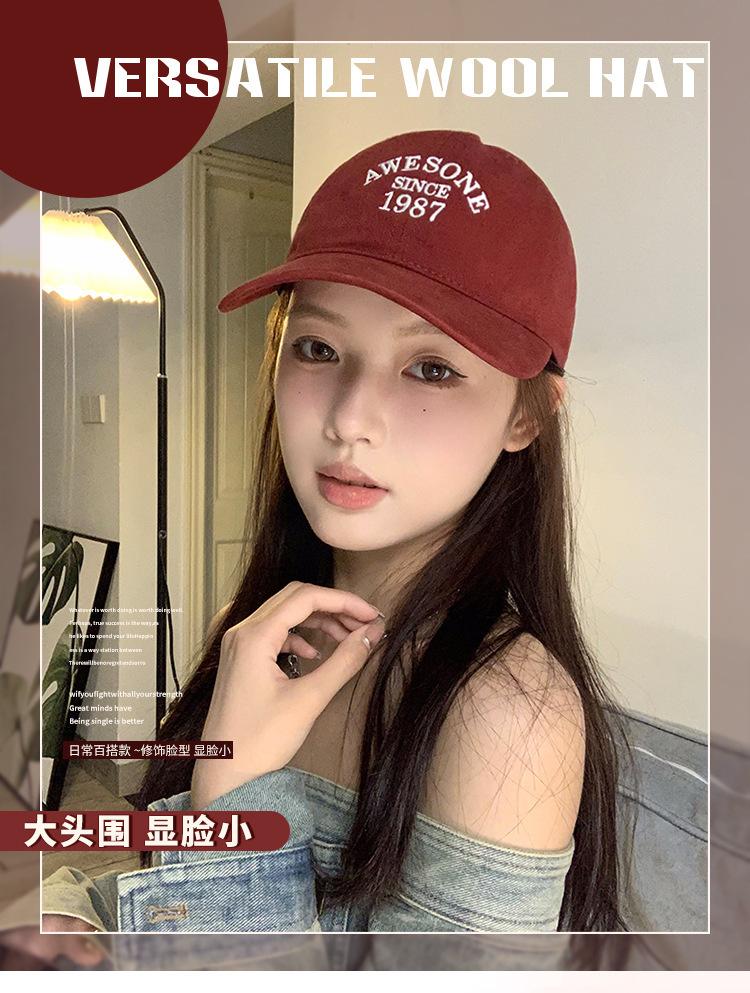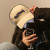 Gorra de béisbol retro americana con letras, estilo nuevo, agrandada y profundizada para mujer, con ala ancha y gorra pequeña de pico de pato que revela el rostro, para circunferencia de cabeza grande