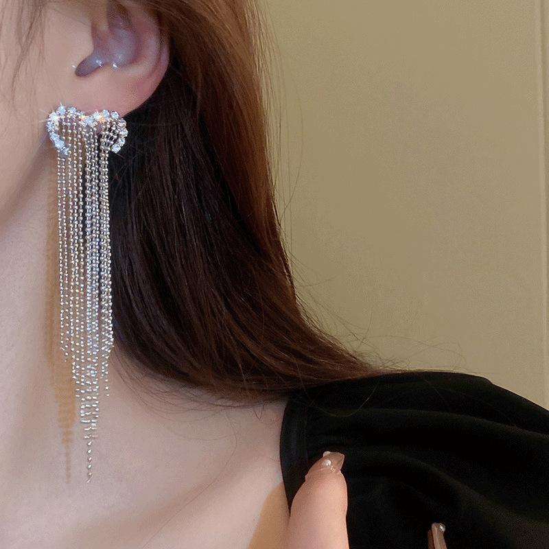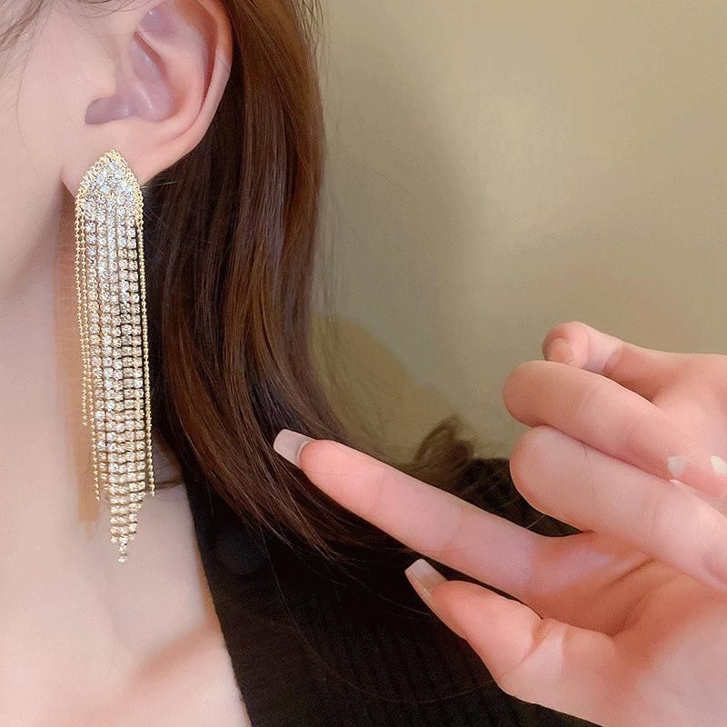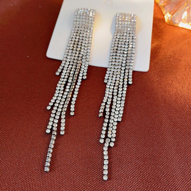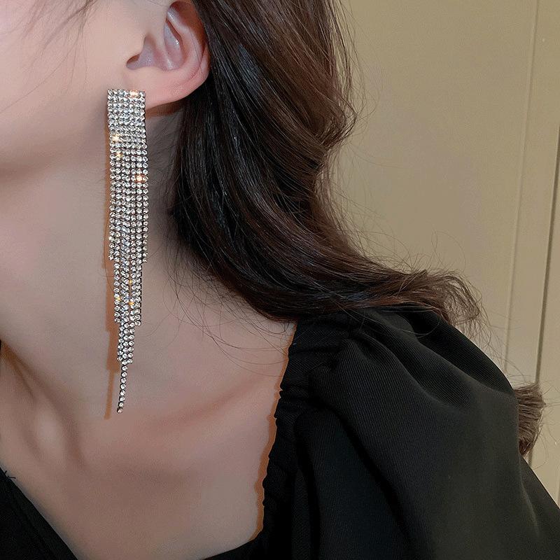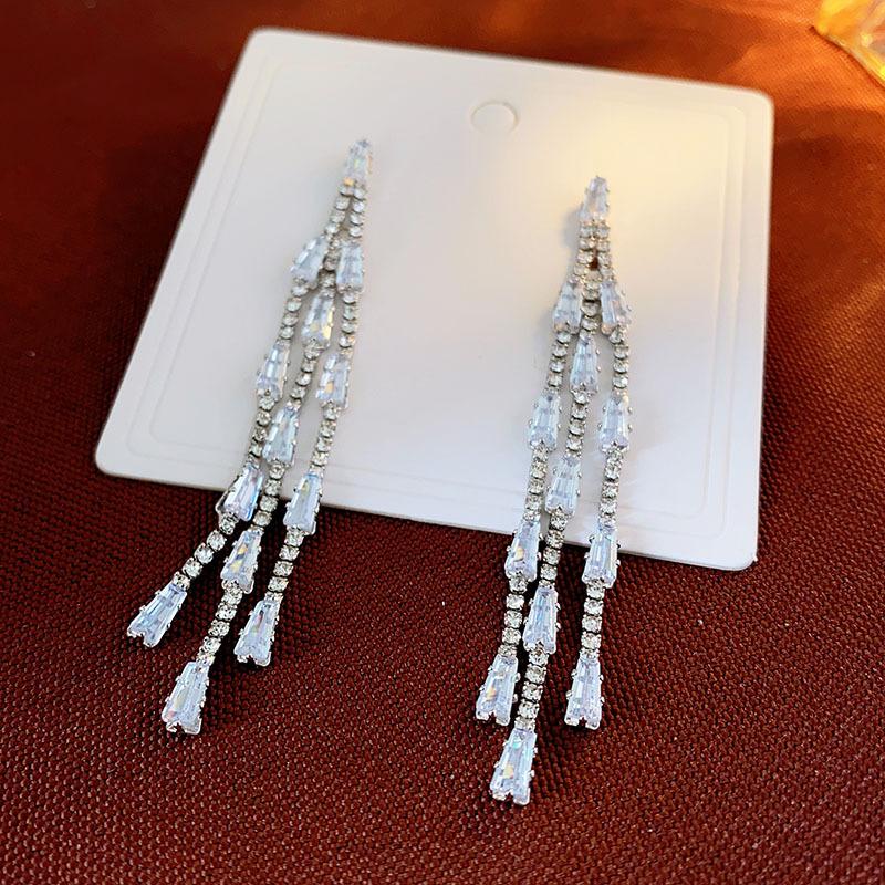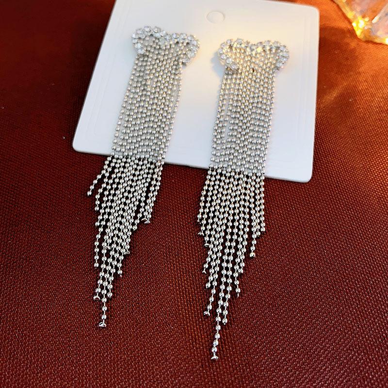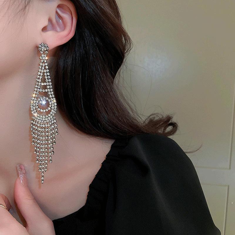 Pendientes de Borla de Diamantes Europeos y Americanos de Aguja de Plata Pendientes Niche Exagerados de Alta Gama Moda de Lujo Ligero Pendientes Personalizados Venta al por Mayor Mujer