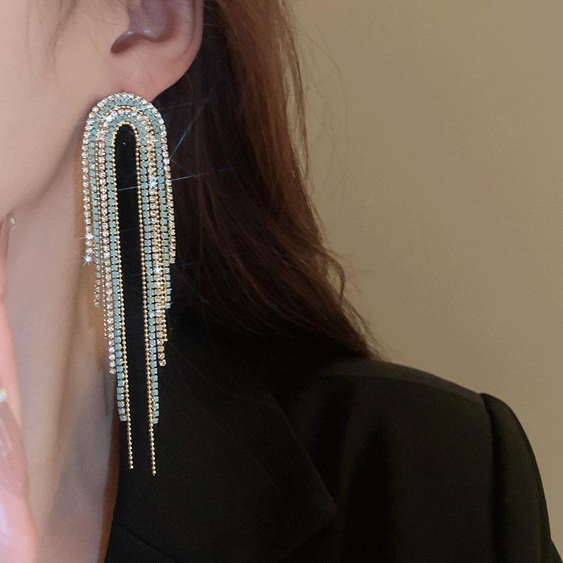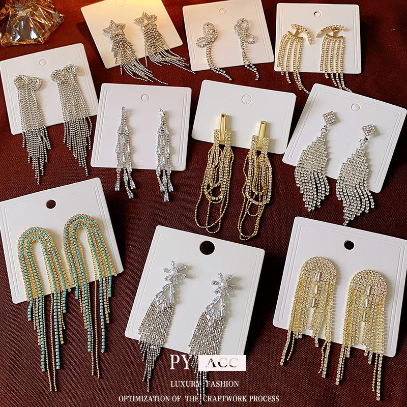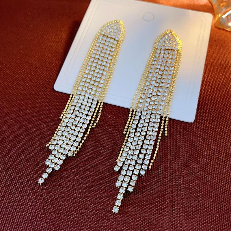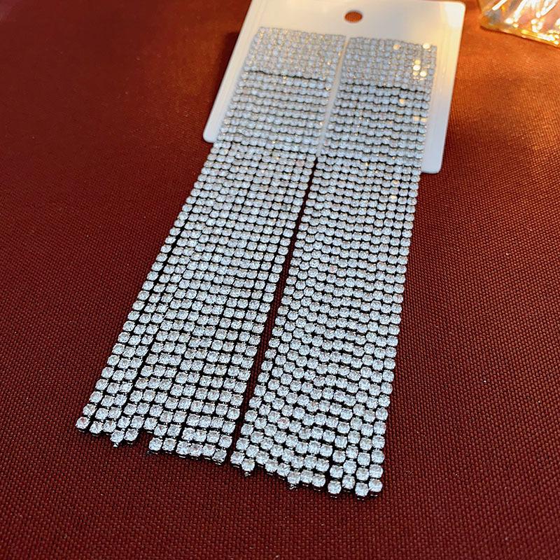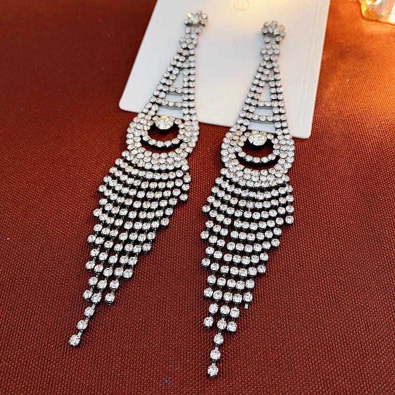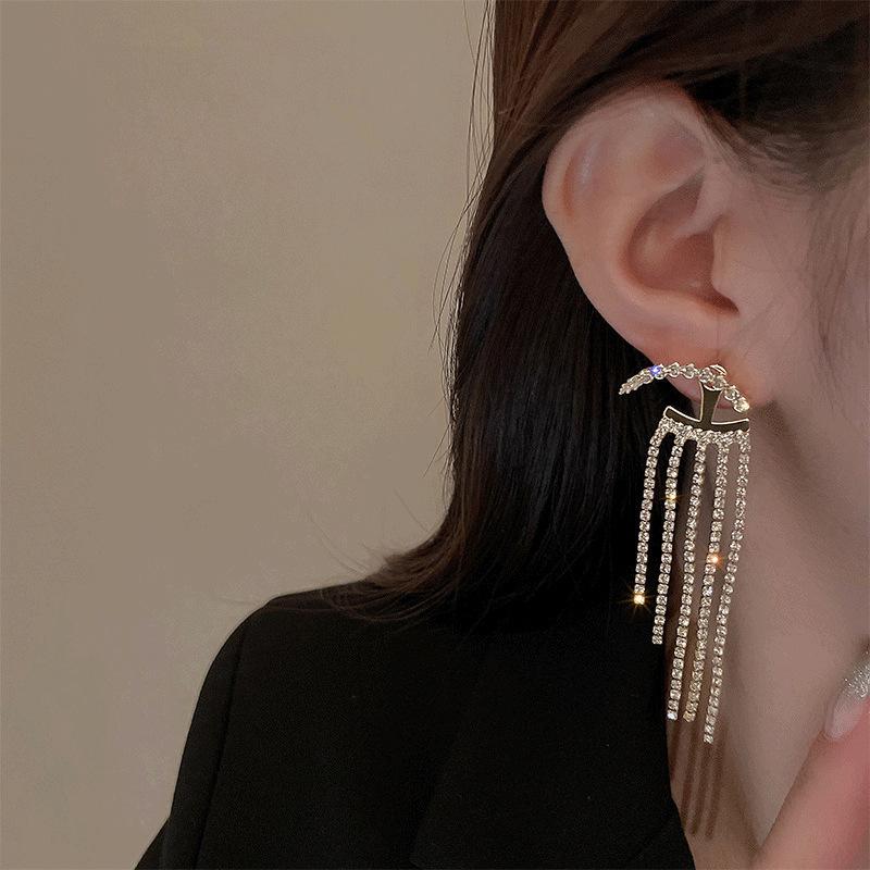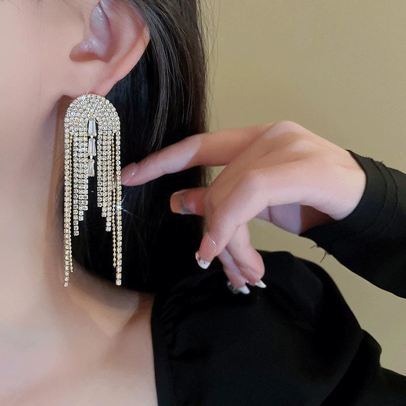 Pendientes de Borla de Diamantes Europeos y Americanos de Aguja de Plata Pendientes Niche Exagerados de Alta Gama Moda de Lujo Ligero Pendientes Personalizados Venta al por Mayor Mujer