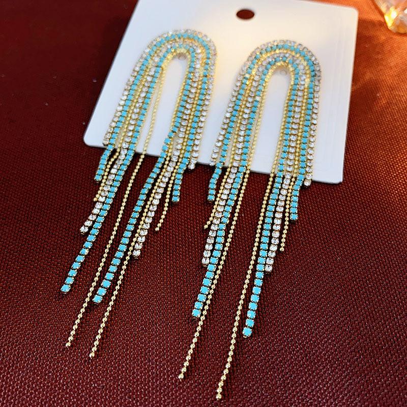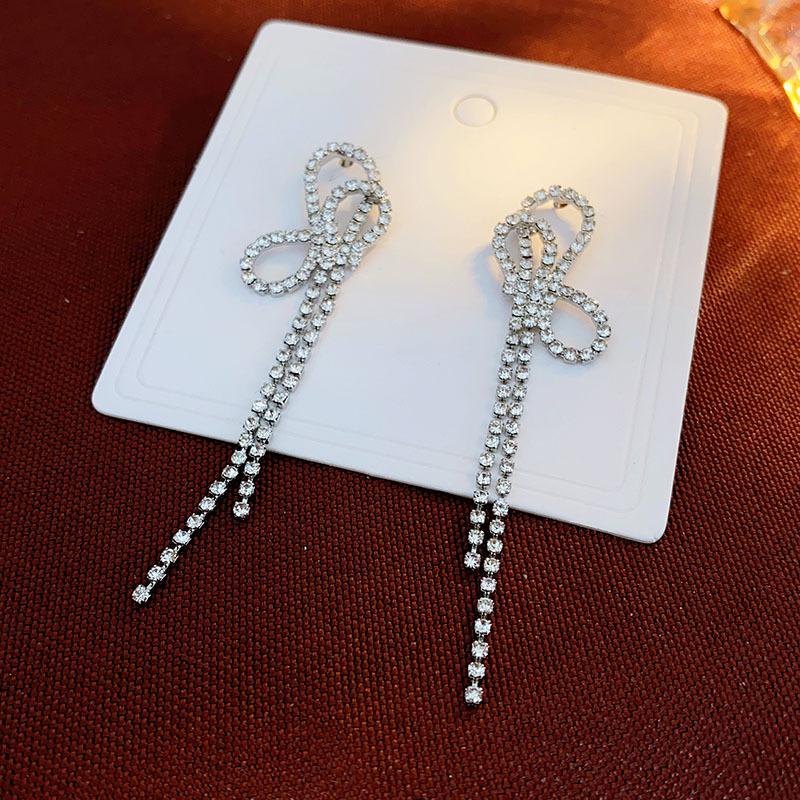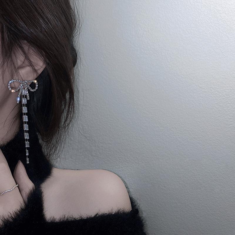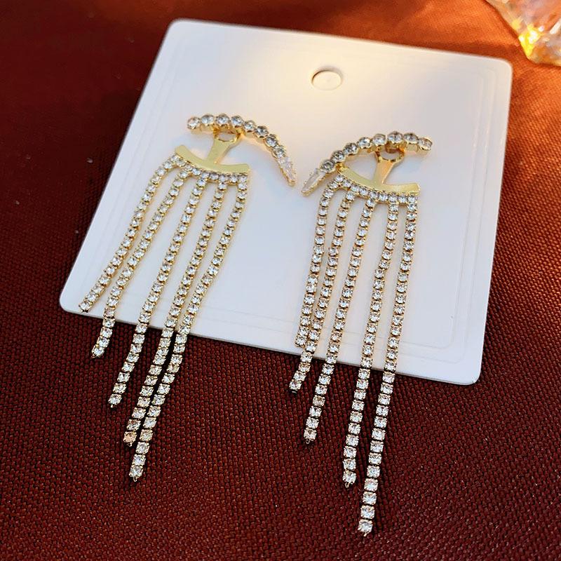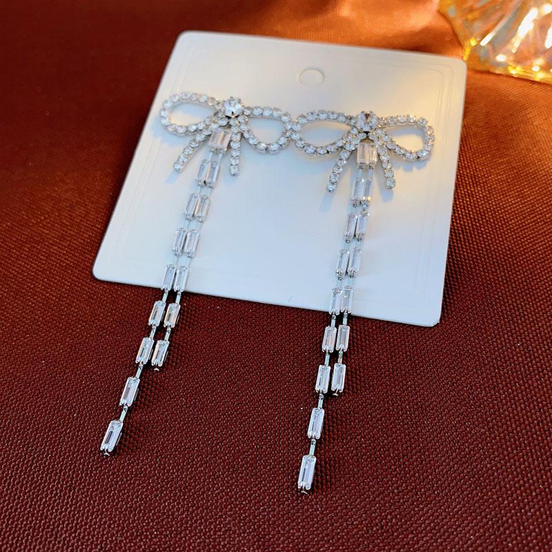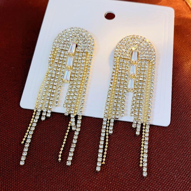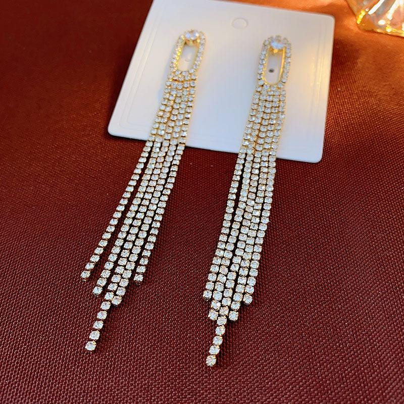 Pendientes de Borla de Diamantes Europeos y Americanos de Aguja de Plata Pendientes Niche Exagerados de Alta Gama Moda de Lujo Ligero Pendientes Personalizados Venta al por Mayor Mujer