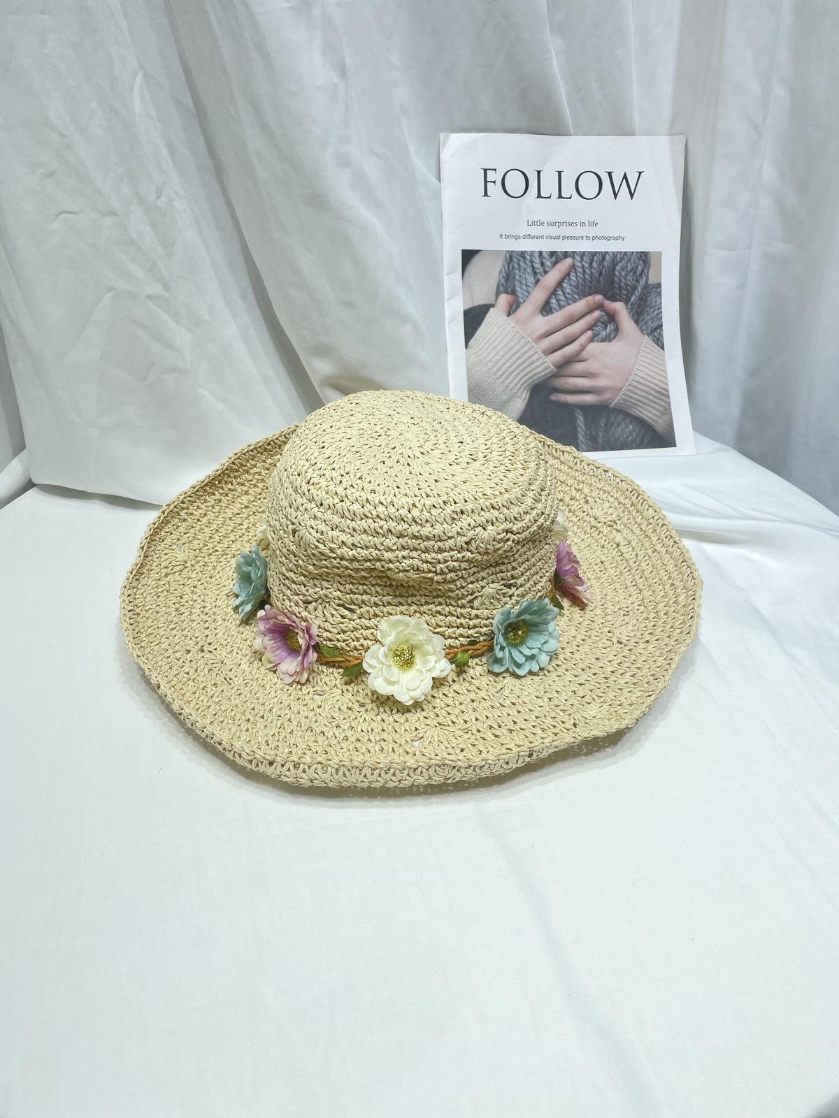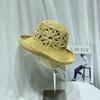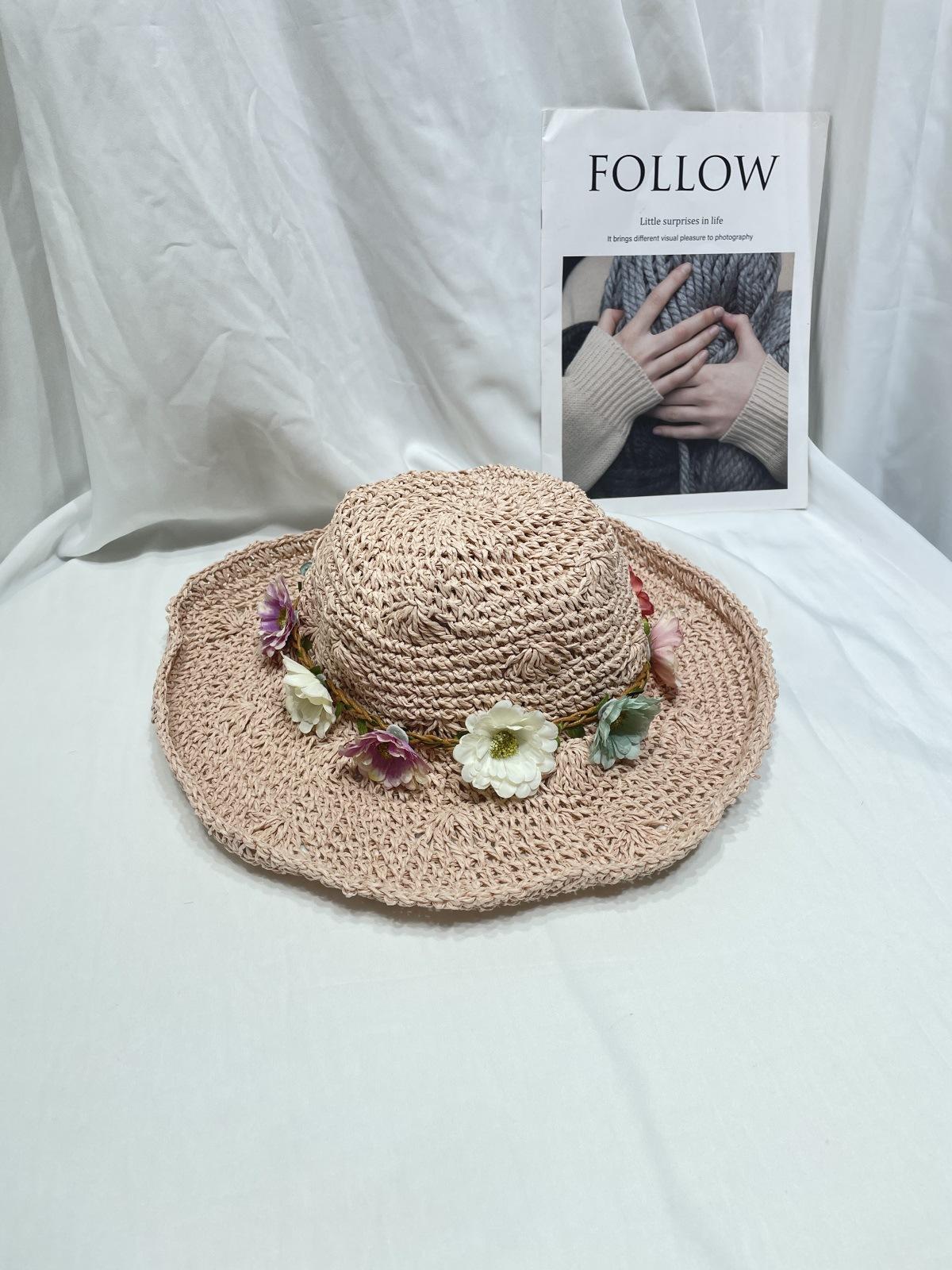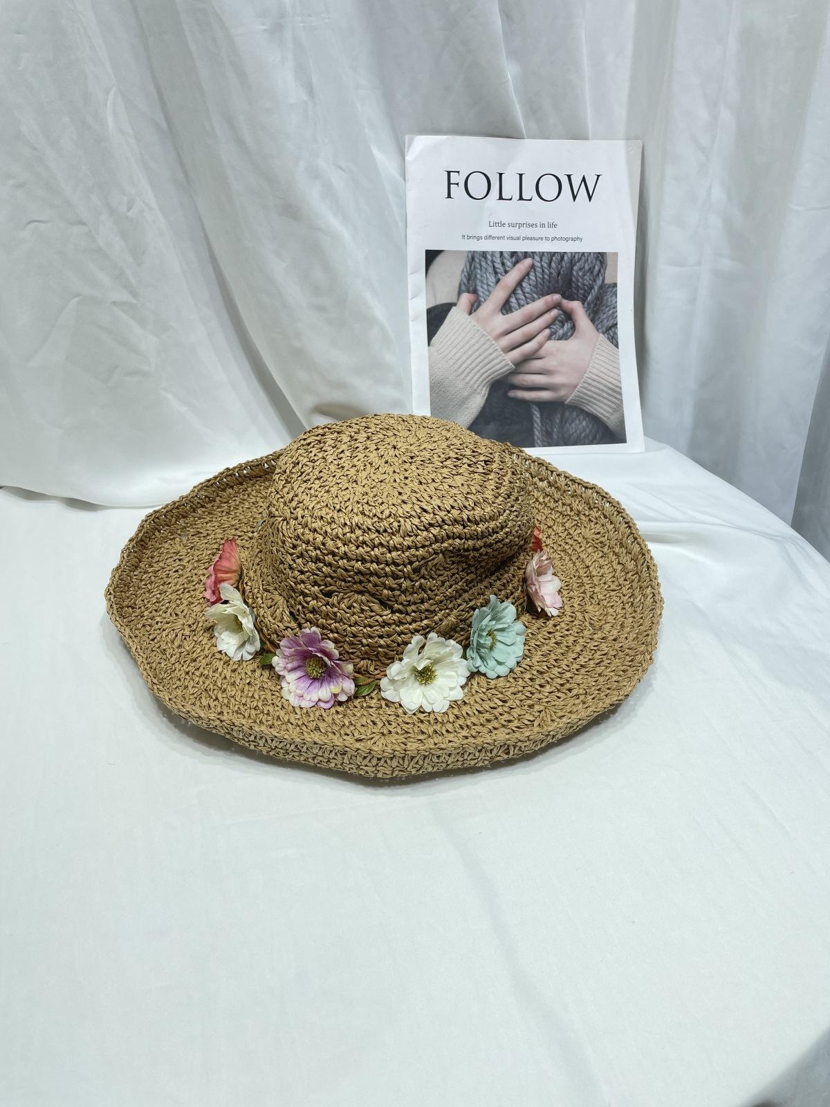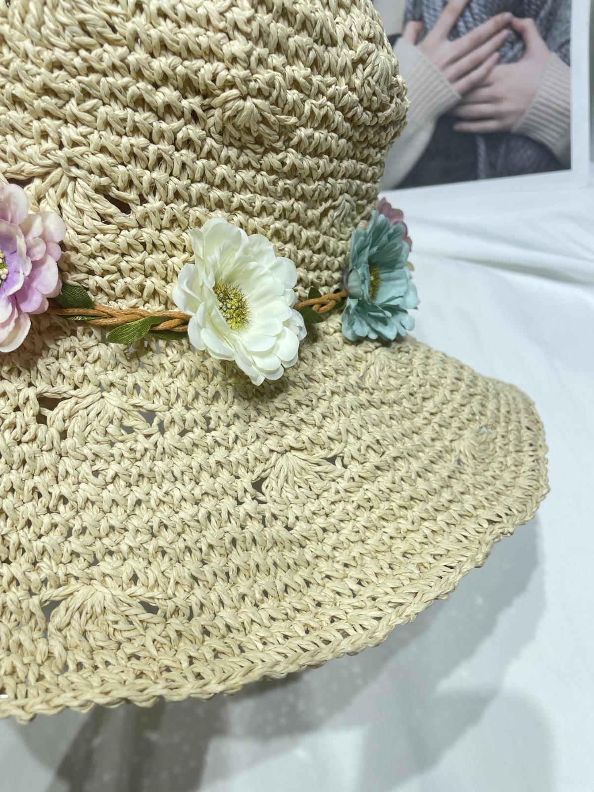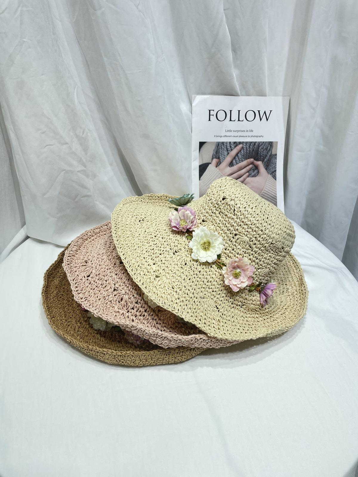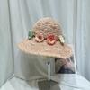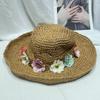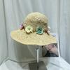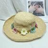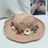 Sombrero de paja tejido a mano con flores para niños, ideal para vacaciones en la playa, verano, protección solar, sombrero de pescador de ala grande plegable.