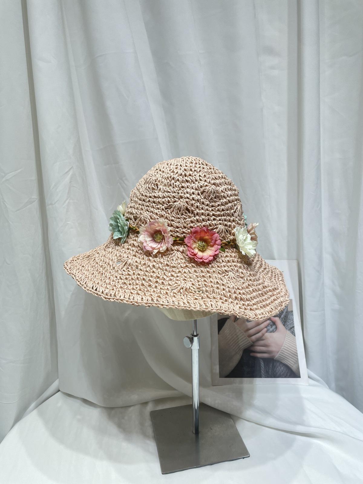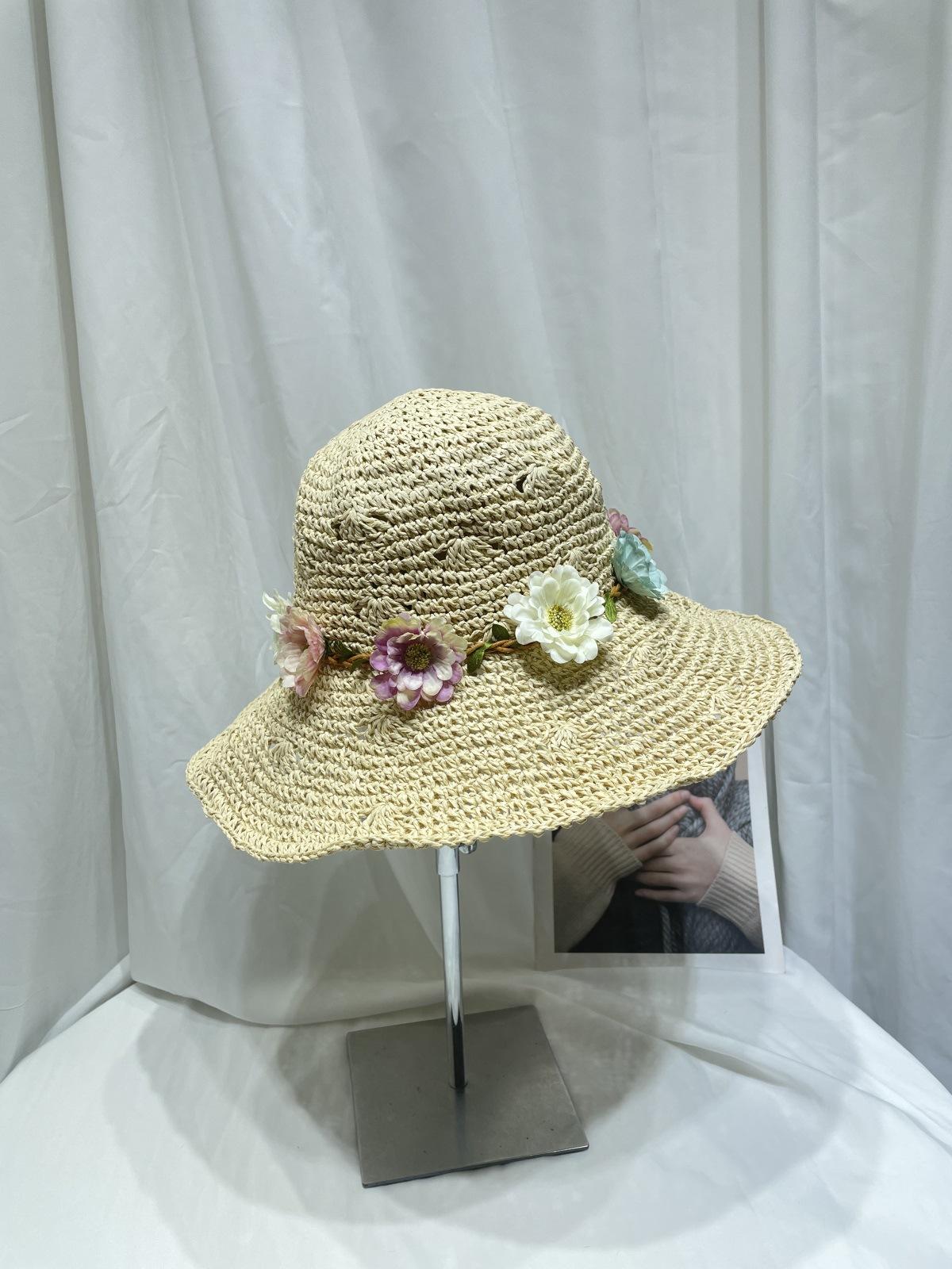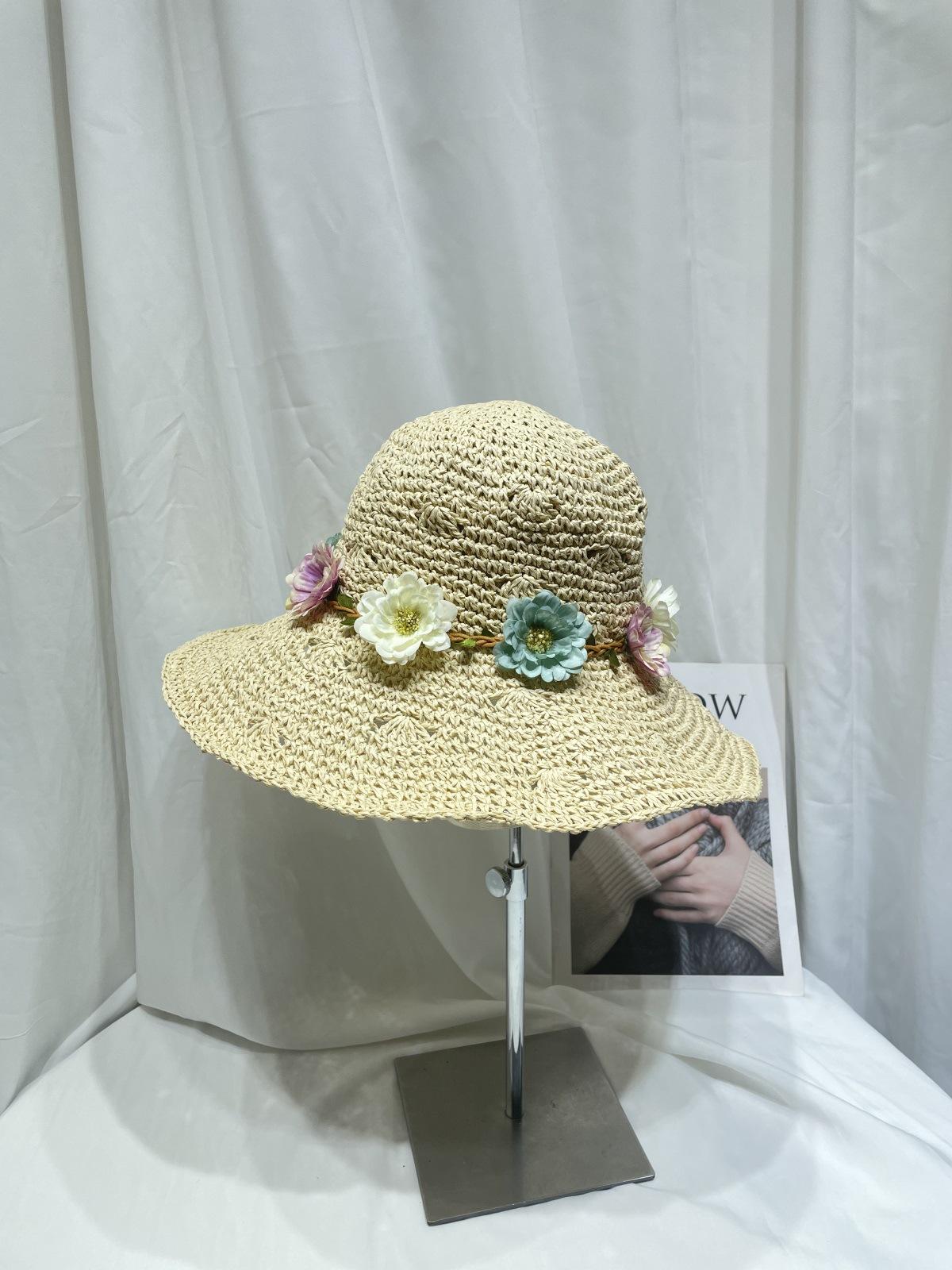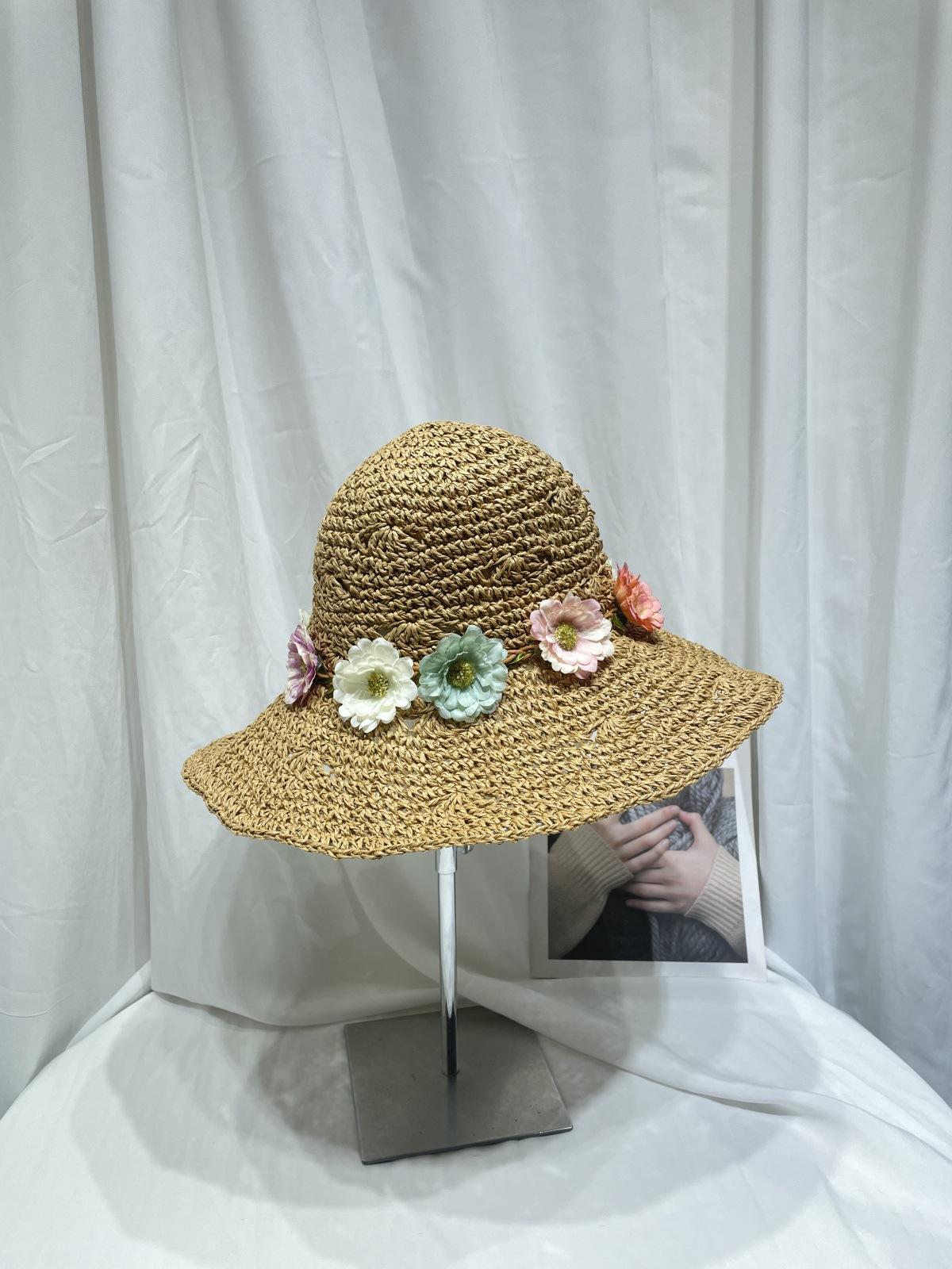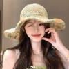 Sombrero de paja tejido a mano con flores para niños, ideal para vacaciones en la playa, verano, protección solar, sombrero de pescador de ala grande plegable.