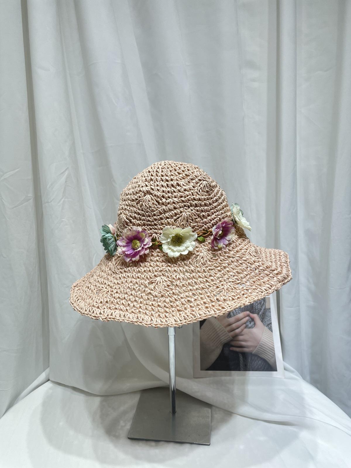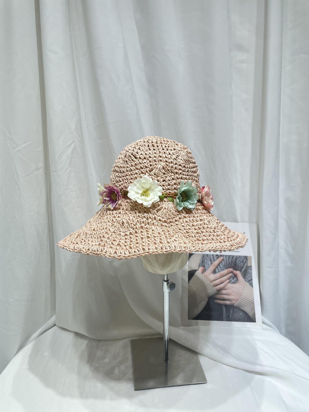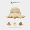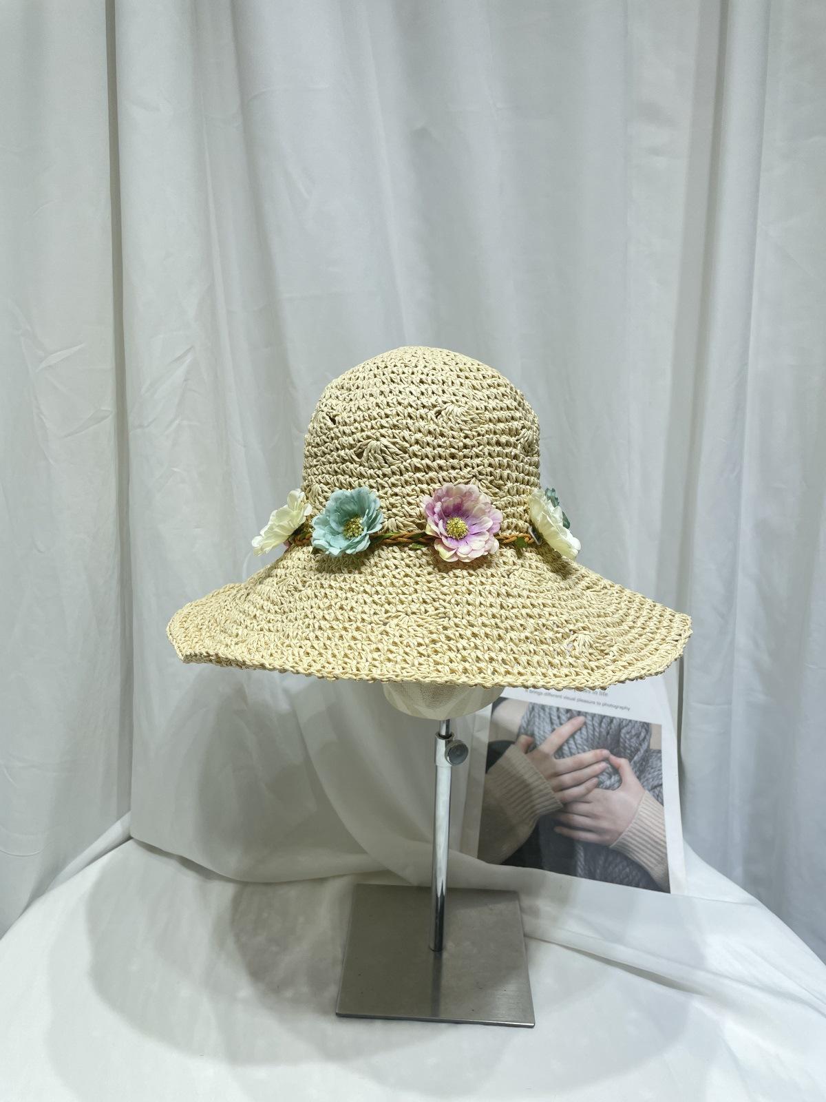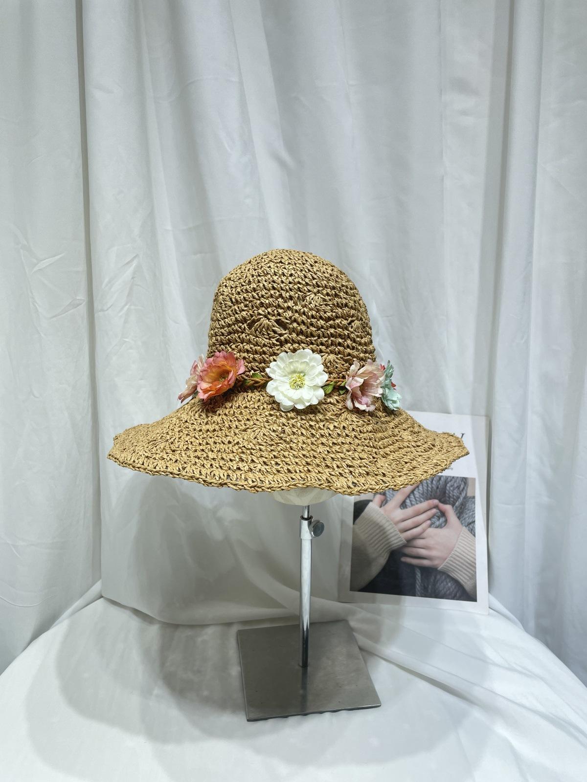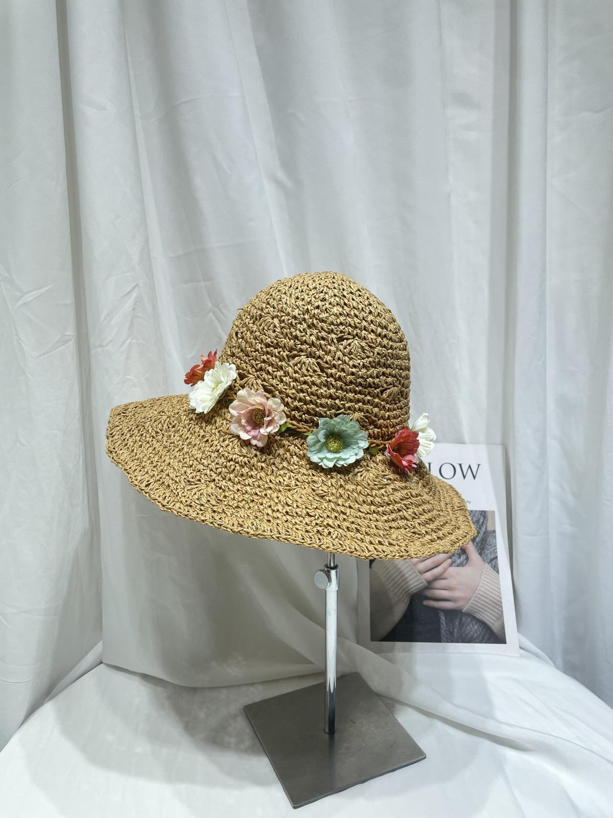Sombrero de paja tejido a mano con flores para niños, ideal para vacaciones en la playa, verano, protección solar, sombrero de pescador de ala grande plegable.