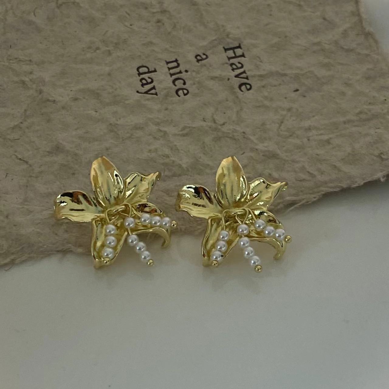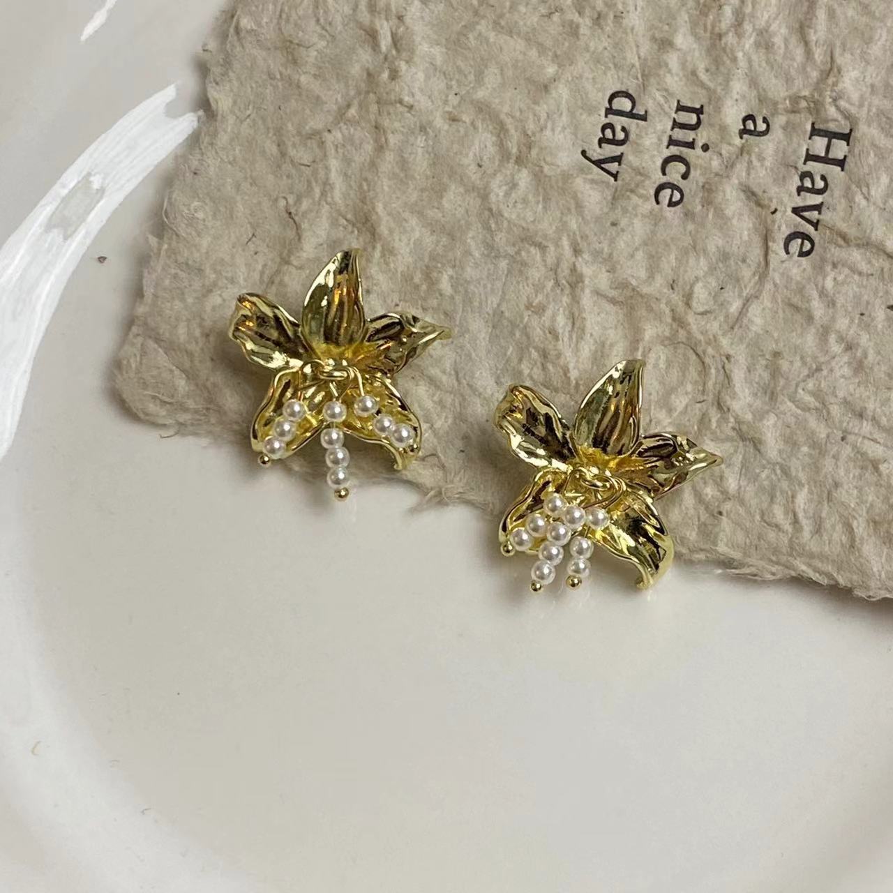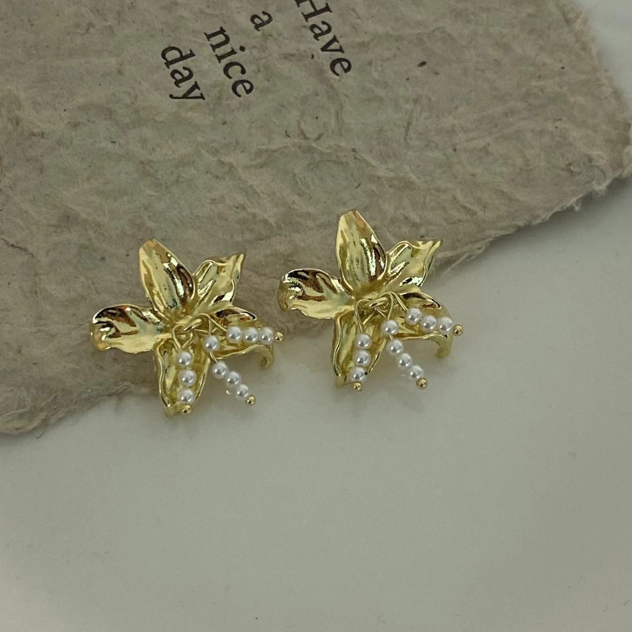 Compra Pendientes de borlas de perlas y flores de metal para mujer, diseño de nicho, estilo francés, retro, elegante, de alta gama. al por mayor en Joom.pro
