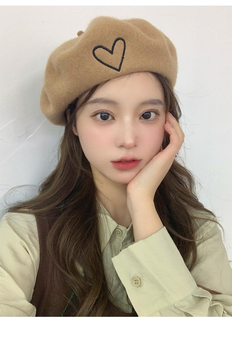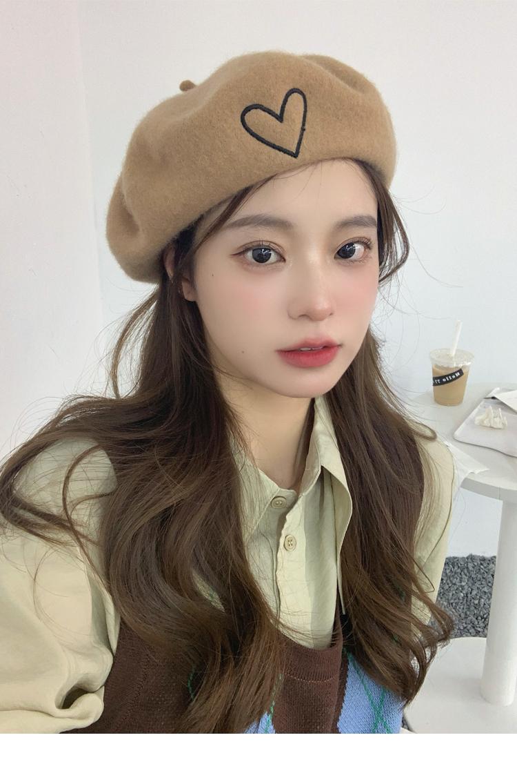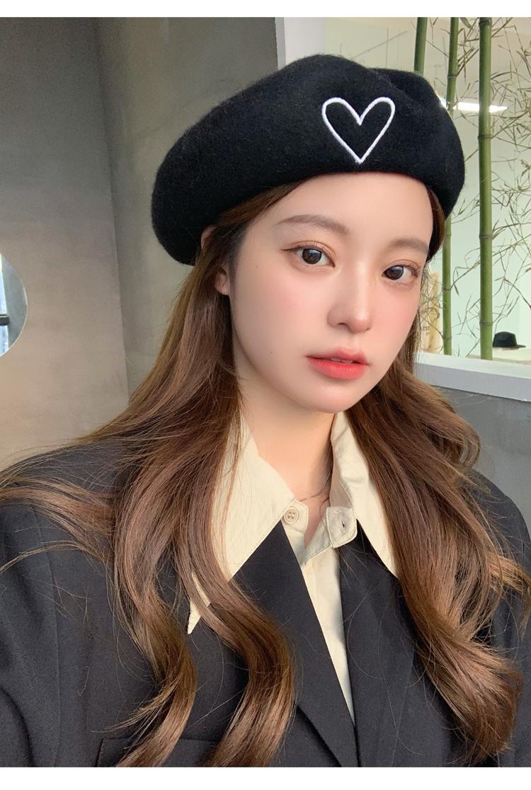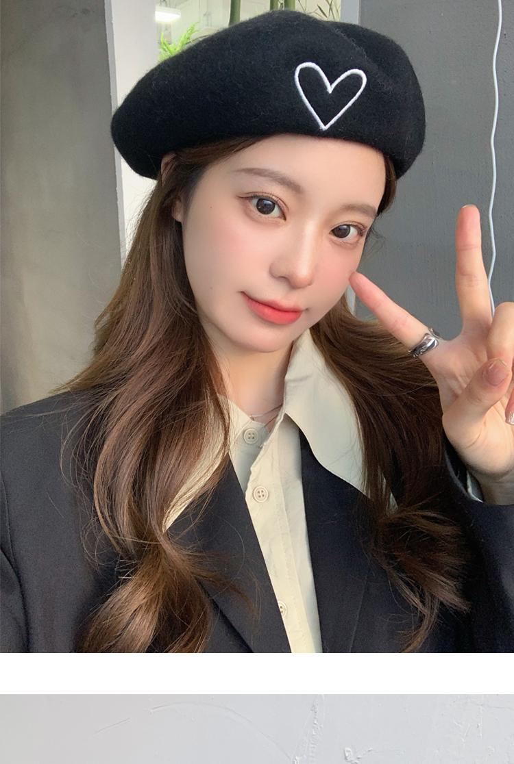 El bordado de corazón es simple y moderno, y se ve bien en la cabeza, logrando la sensación de "cabeza que cubre la cara" y haciendo que la cara parezca más pequeña.