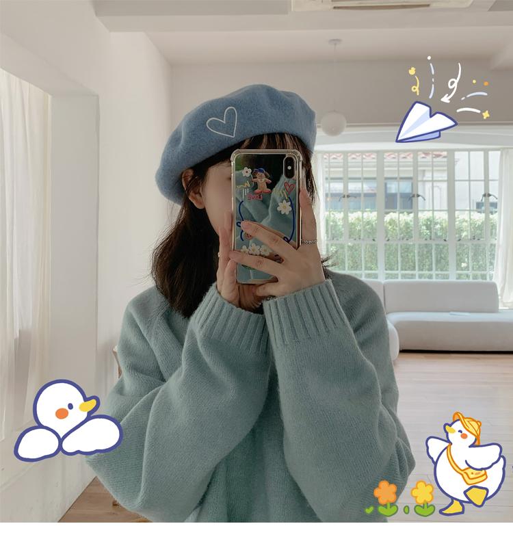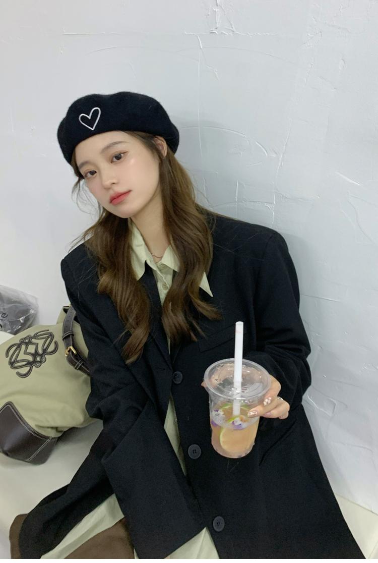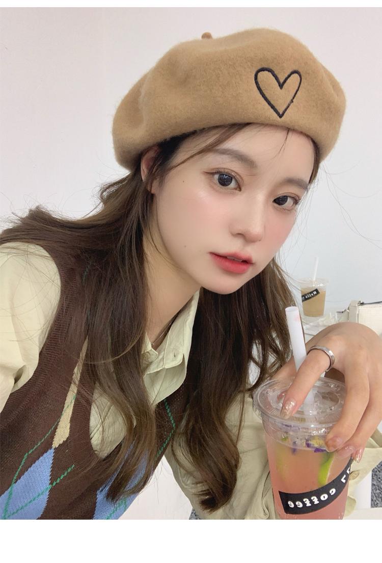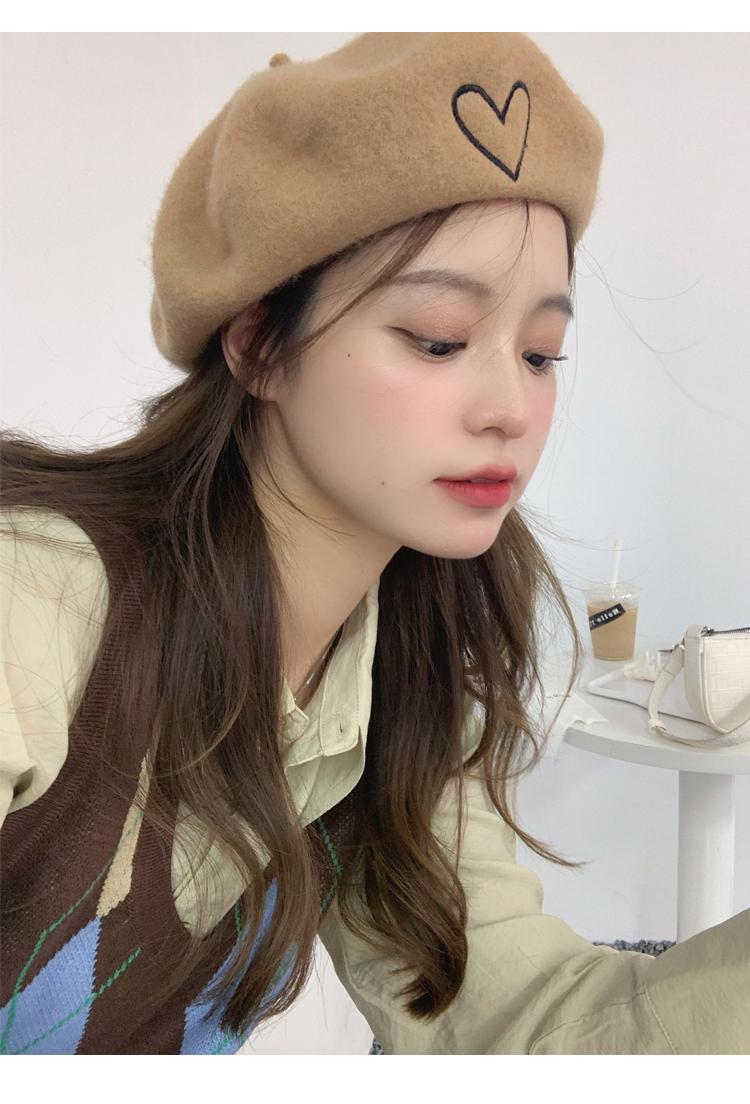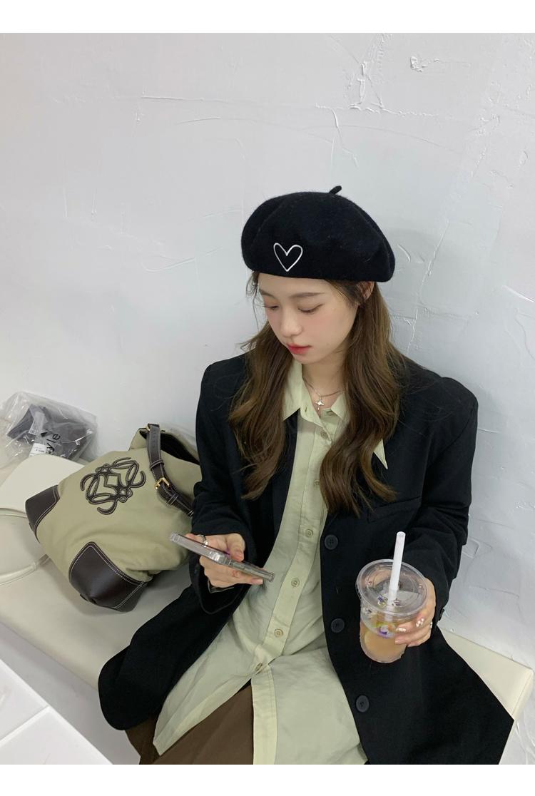 El bordado de corazón es simple y moderno, y se ve bien en la cabeza, logrando la sensación de "cabeza que cubre la cara" y haciendo que la cara parezca más pequeña.