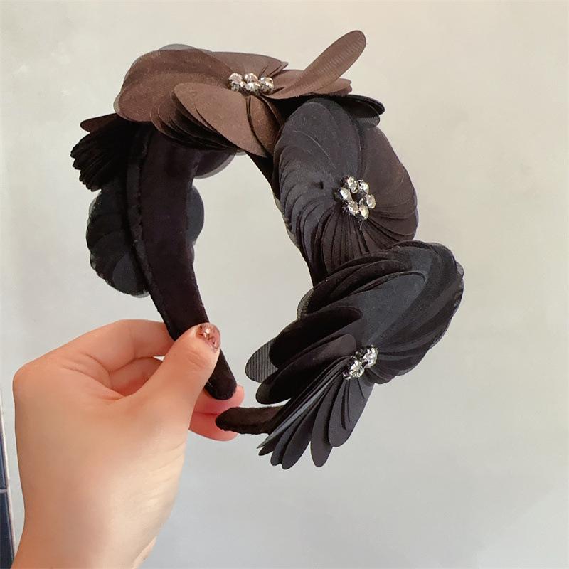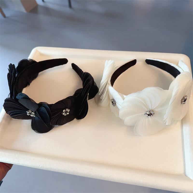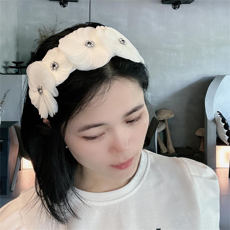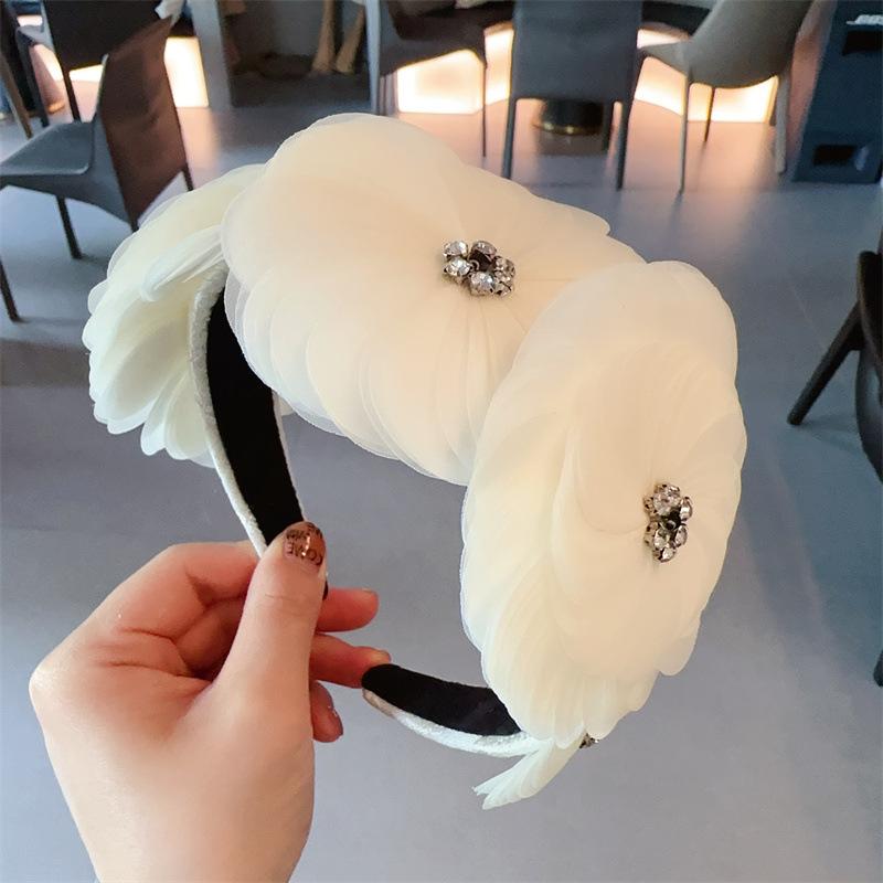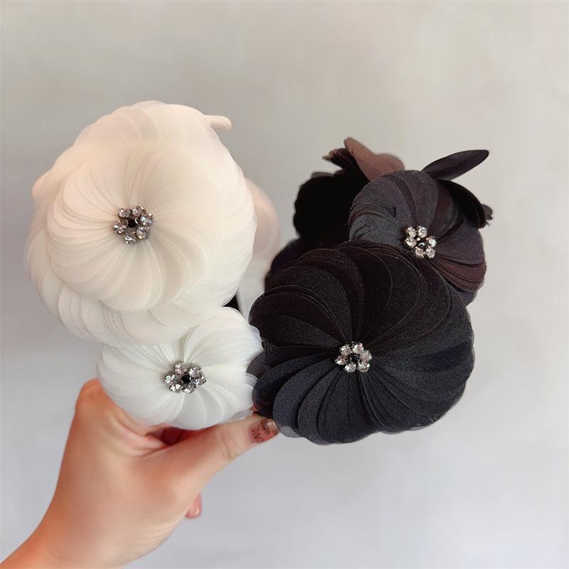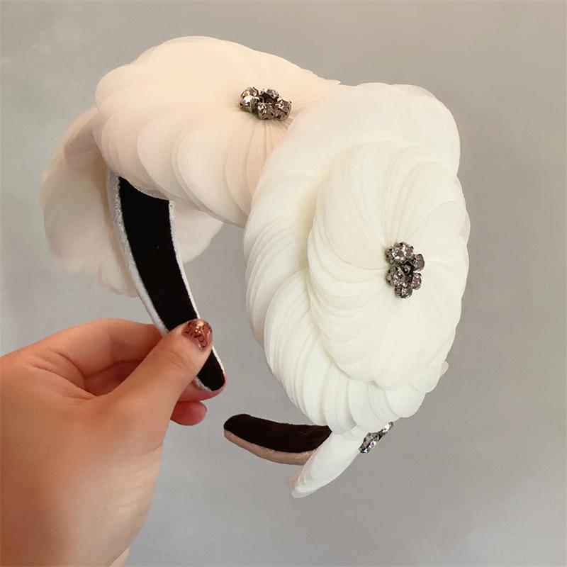 Diadema ligera de lujo con diseño de pétalos de flores multicapa, color blanco puro y dulce, con diamantes de imitación, estilo europeo y americano, accesorios para el cabello transfronterizos para mujer.