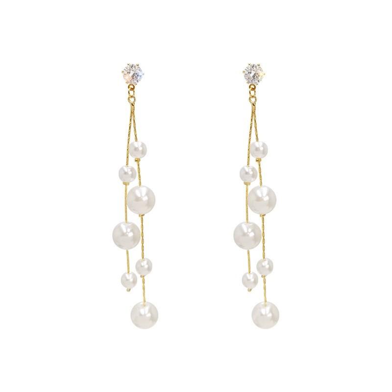 Pendientes largos con borlas de perlas de moda Dongdaemun de Corea del Sur, nuevos y elegantes pendientes de celebridades de Internet para mujer