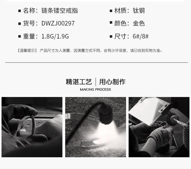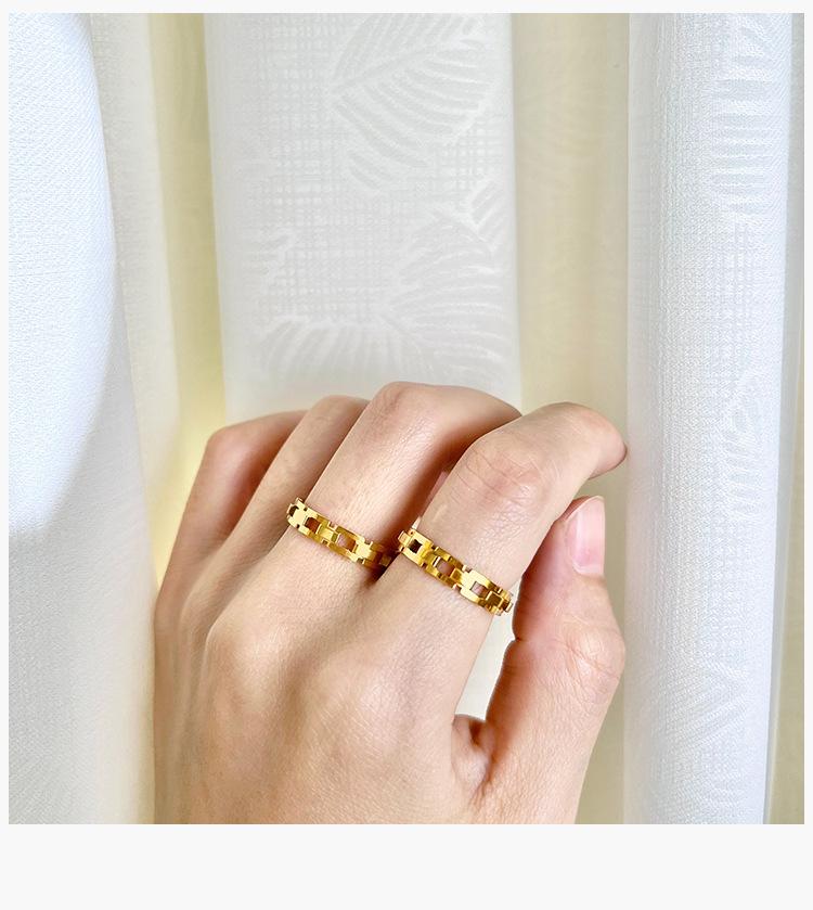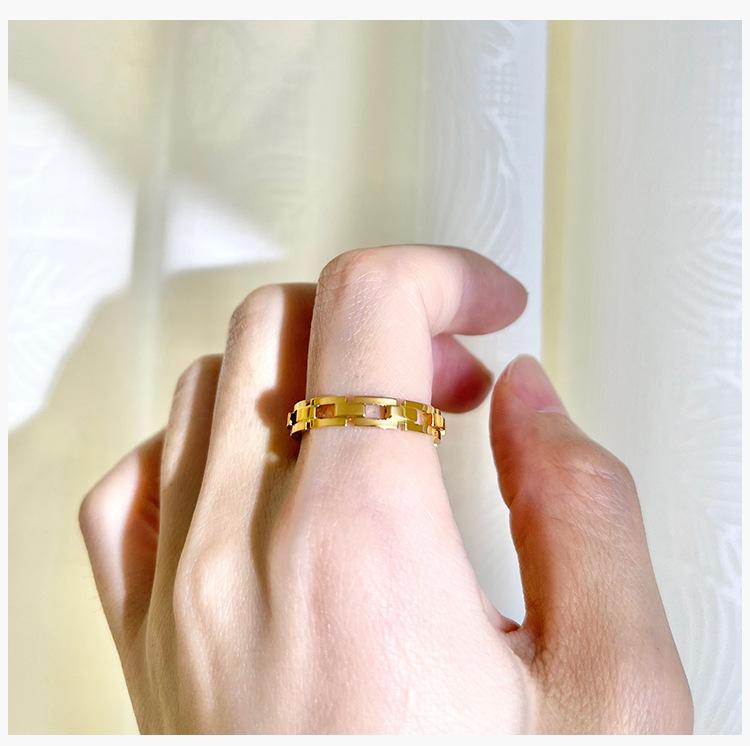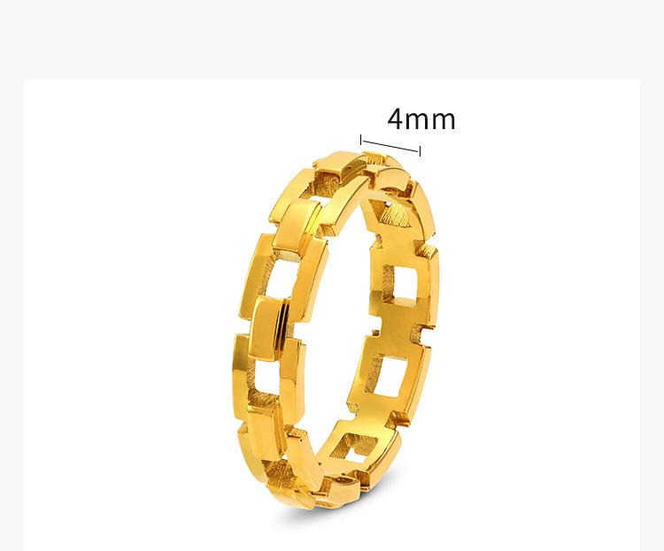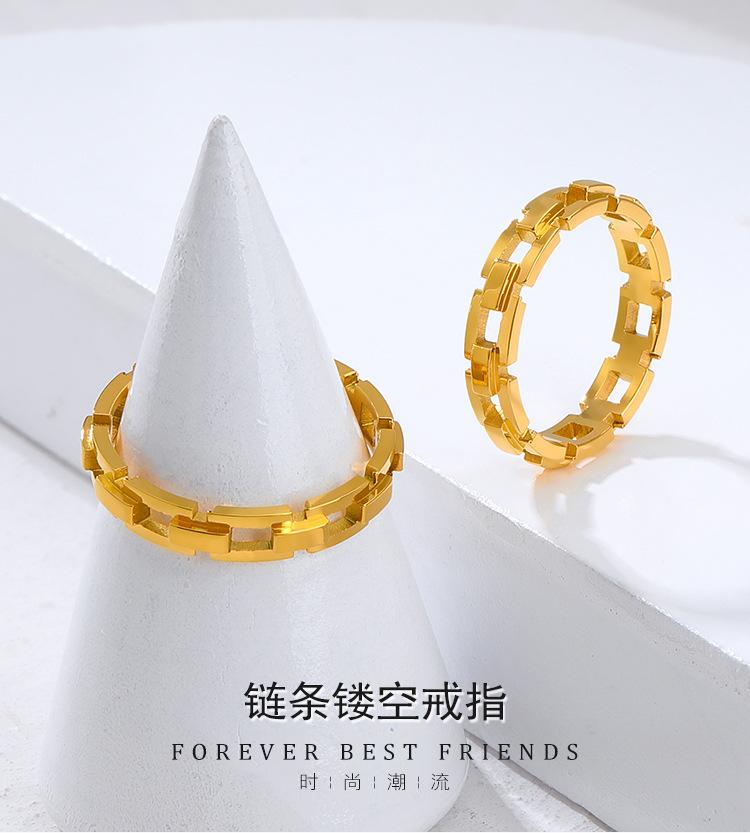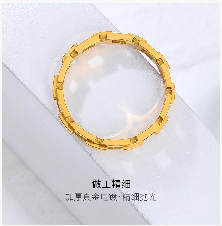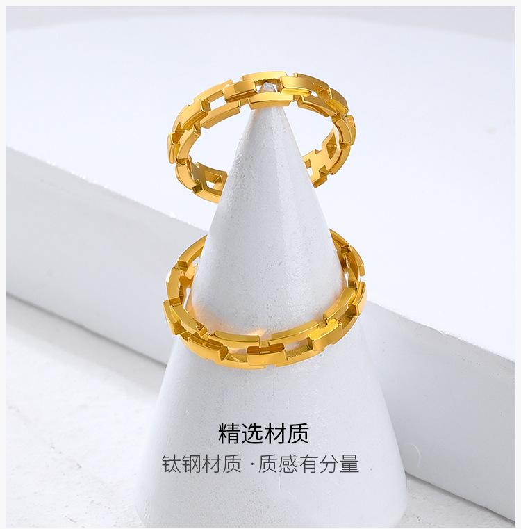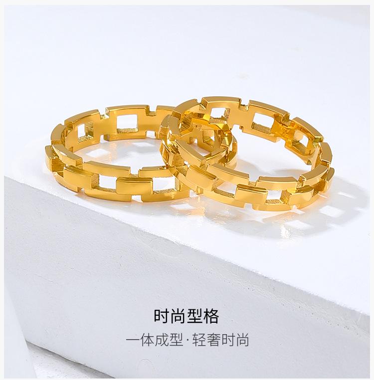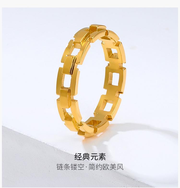 Anillo de cadena de diseño simple de alto nivel transfronterizo entre Europa y Estados Unidos chapado en oro de 18 quilates, anillo de acero de titanio hueco, anillo de pareja femenina