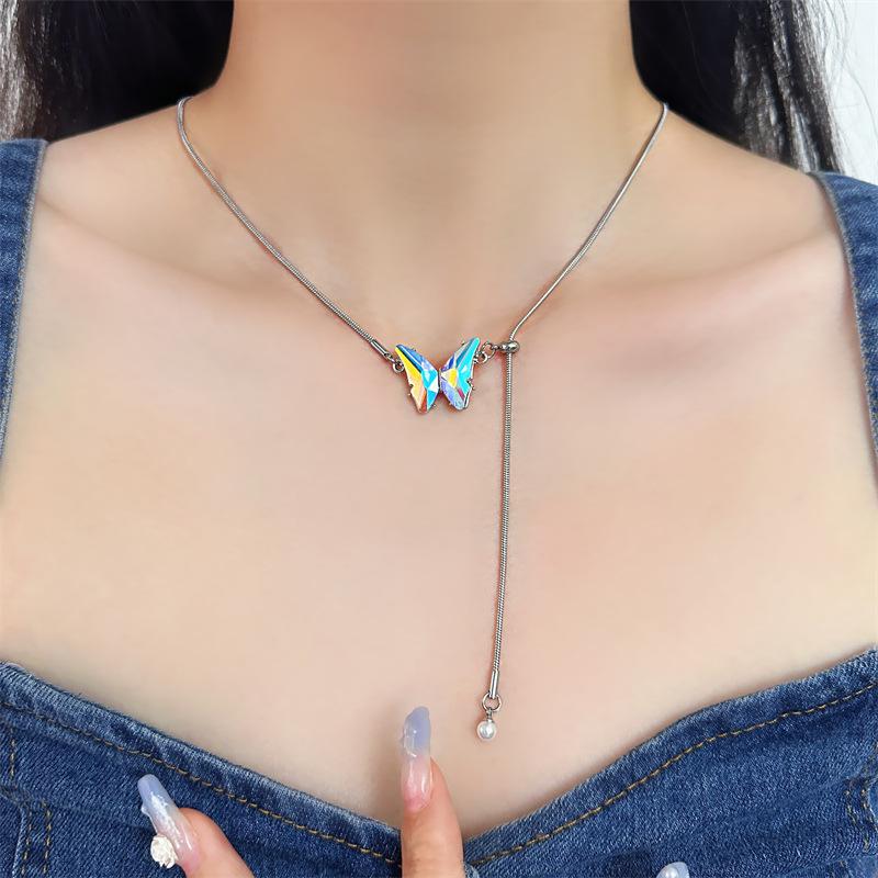 Nuevo collar de mariposa con degradado estilo coreano Ins, gargantilla con cadena de clavícula, collar de lujo ligero de alta gama.