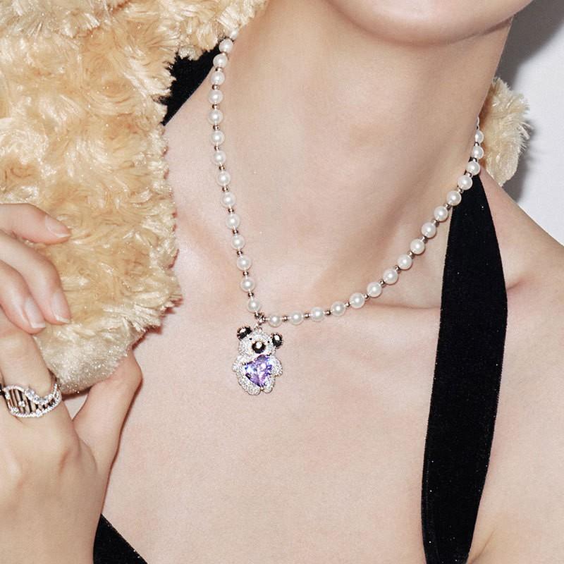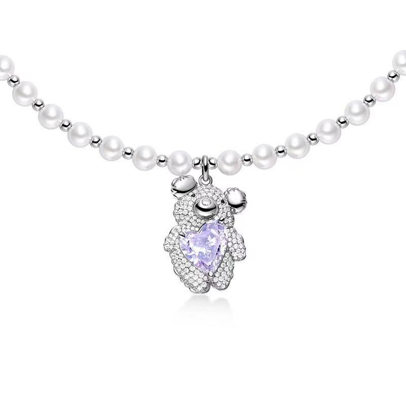 Collar de cadena con gemas moradas de la serie Confesion Bear, Qiao Mei, estilo Tanabata, ideal para todo tipo de ocasiones.
