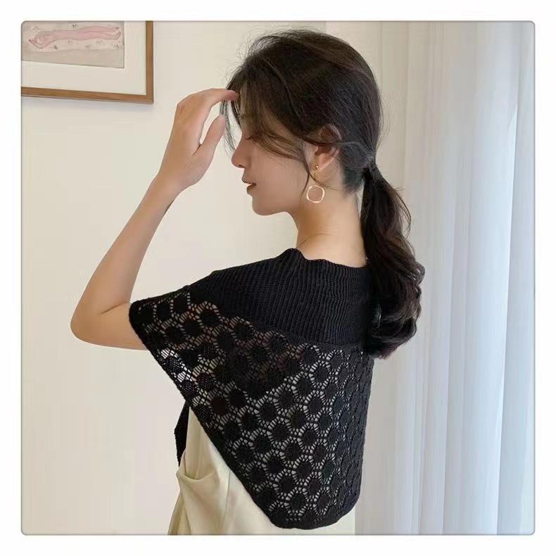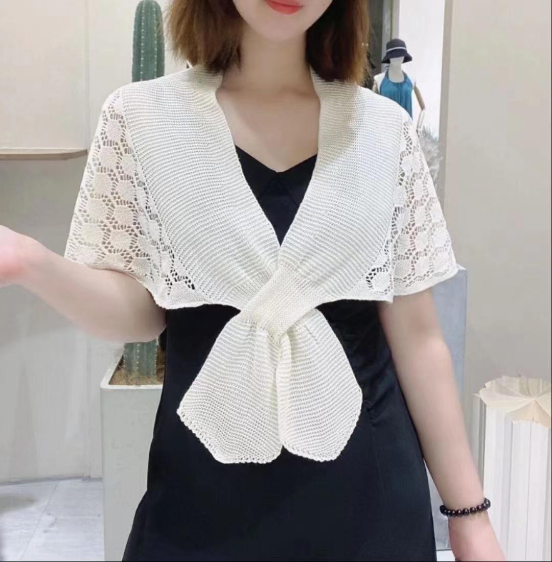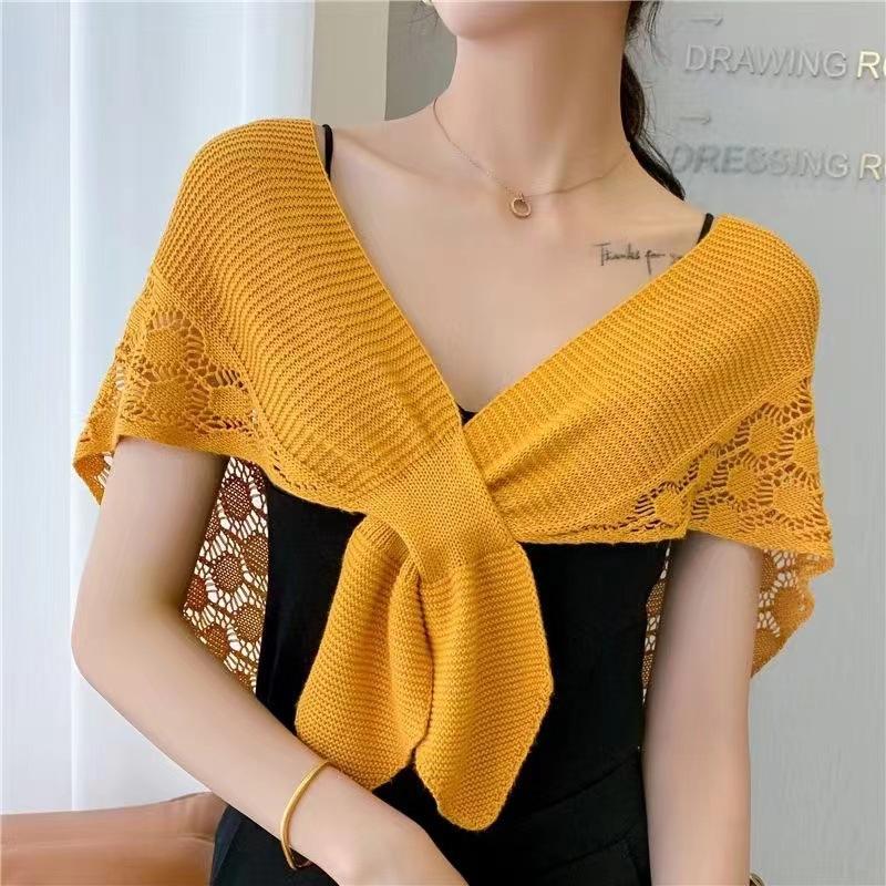Patrón de cola de pez chal pequeño para mujer cheongsam ropa exterior verano falda a juego delgada soporte cervical habitación con aire acondicionado tejido hombrera redondeada