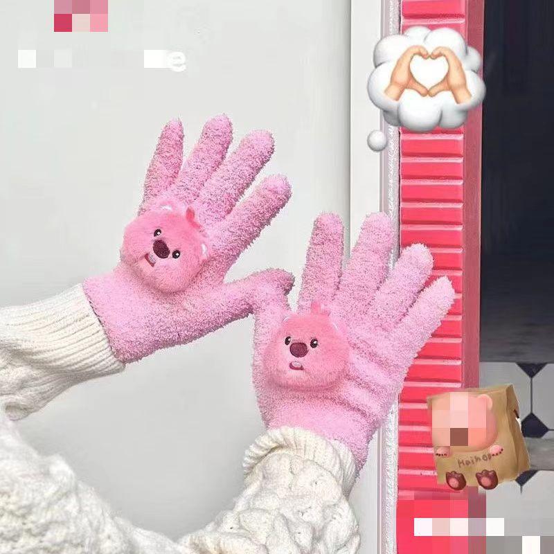 Guantes Marinos de Vellón Coral de Dibujos Animados Invierno Gruesos para Mujer para Montar Lindo a Prueba de Frío Cálido Niña Cinco Dedos Estudiante Felpa