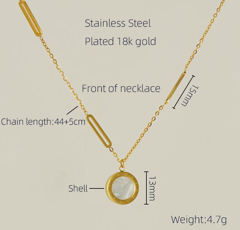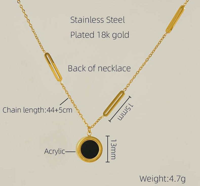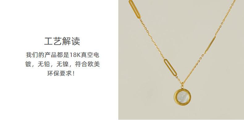 Collar con colgante de luna de acero de titanio y cadena de clavícula de moda transfronteriza europea y americana con personalidad femenina, collar de gota de aceite redondo de acero inoxidable de 18 quilates, tendencia