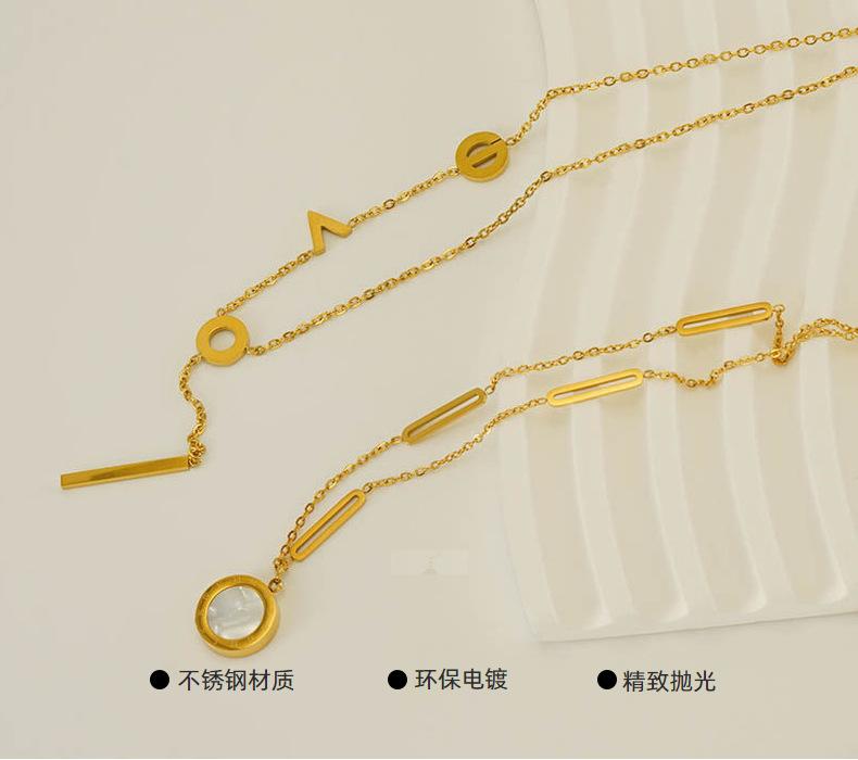 Collar de letras asimétricas de acero inoxidable de 18 quilates de moda transfronteriza para mujer, cadena de clavícula con implicaciones de moda europea y americana, joyería al por mayor