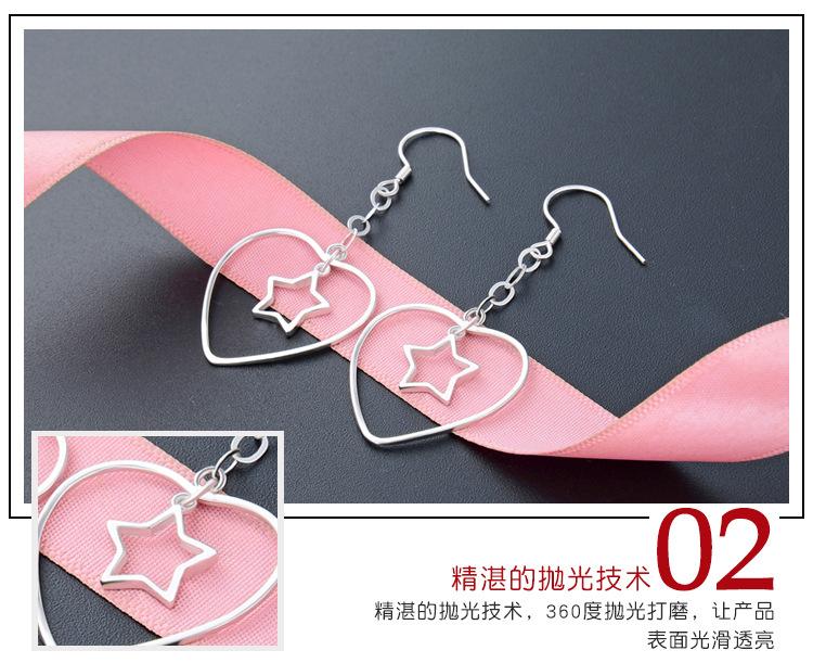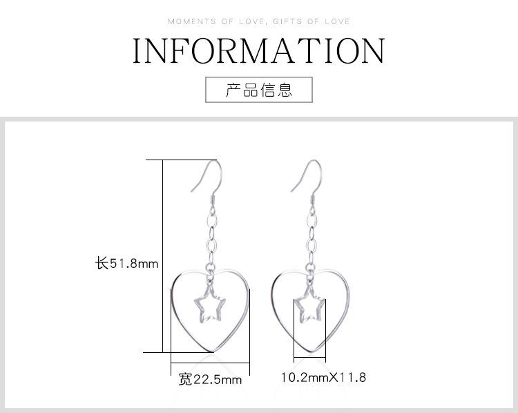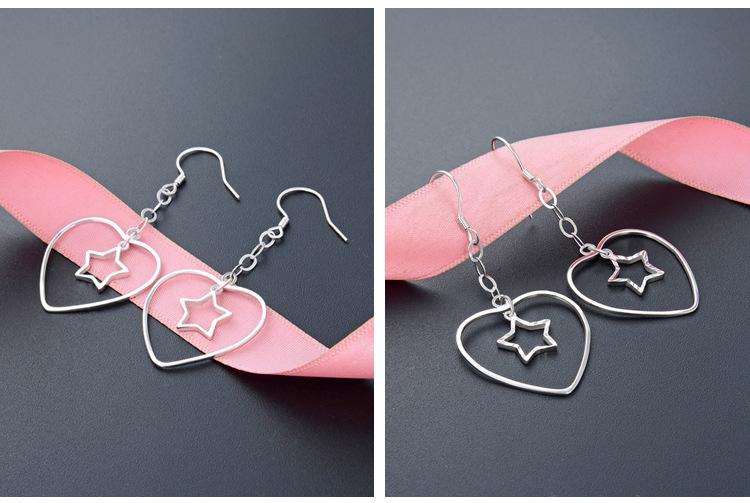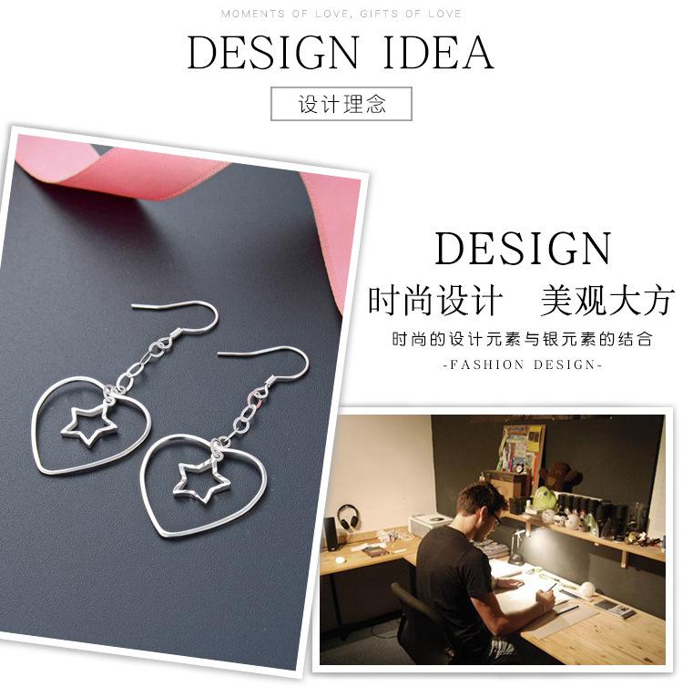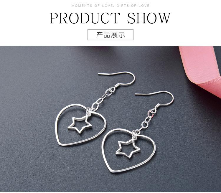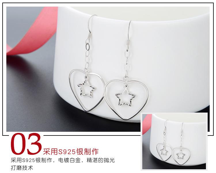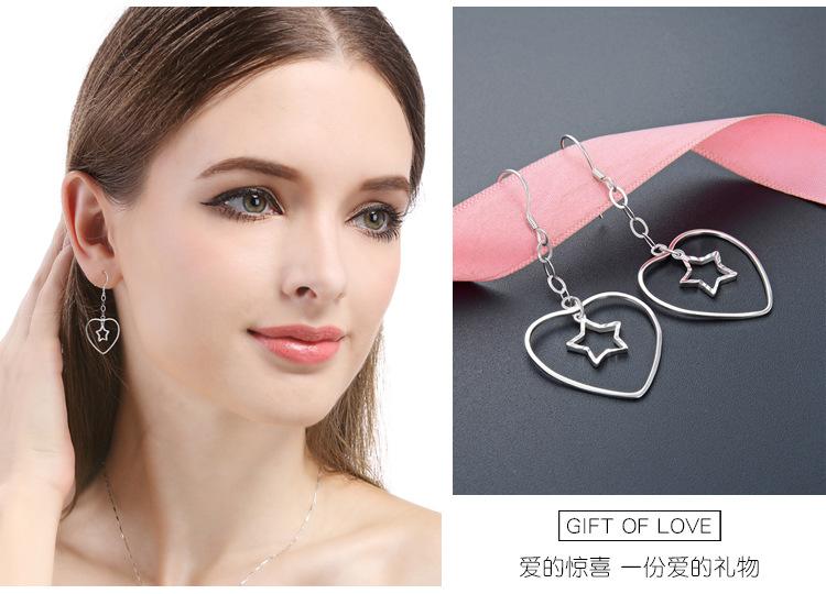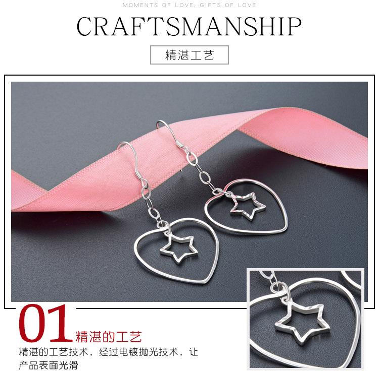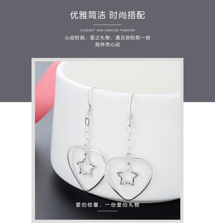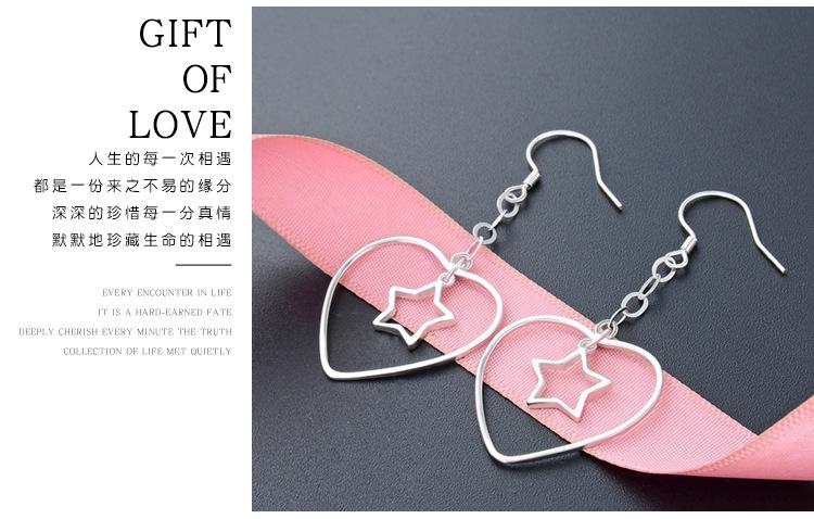 Pendientes de plata de ley 925 con forma de estrella de amor, estilo coreano, estilo fresco y distintivo, con gancho para la oreja, largos, para mujer