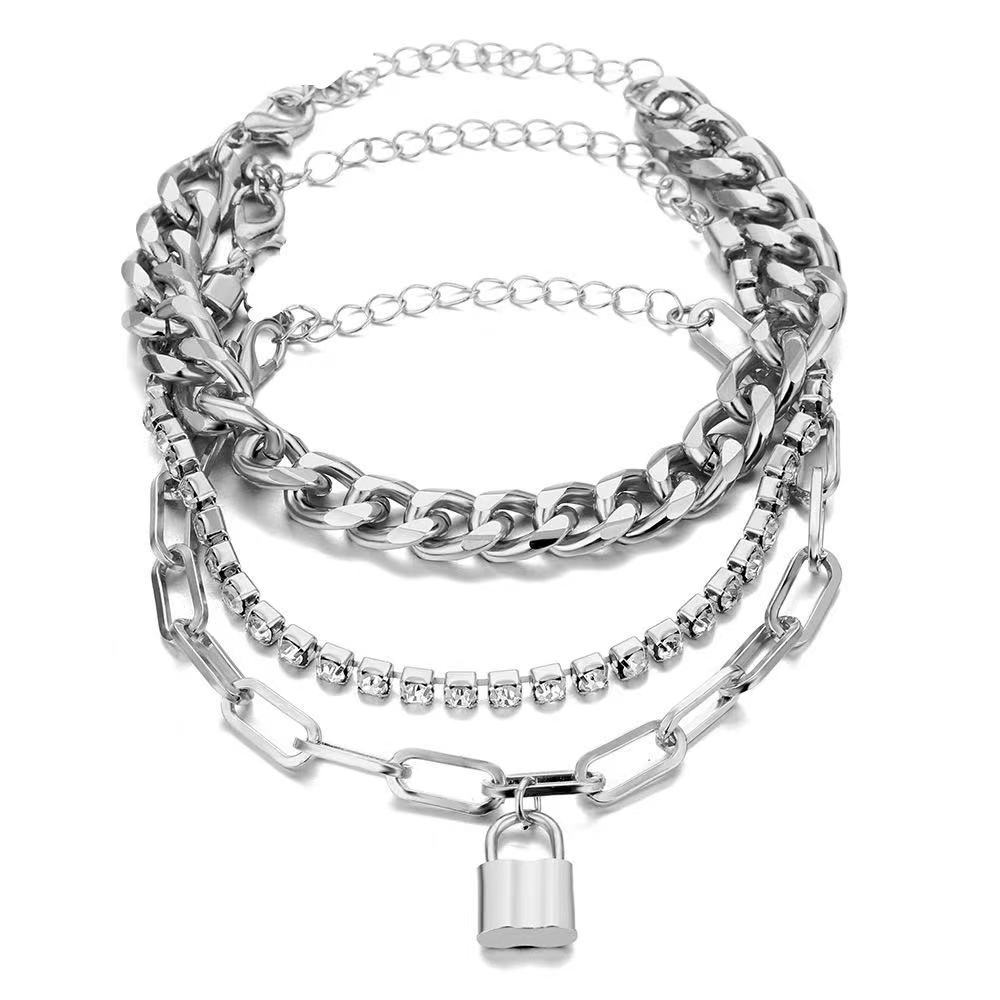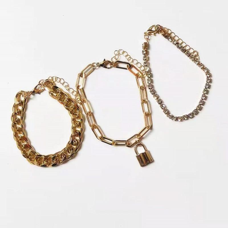 Pulsera para Mujer Estilo Punk Transfronterizo Europeo y Americano Oro Plata Cierre Diamante Cadena Gruesa Set de Pulseras Metálicas