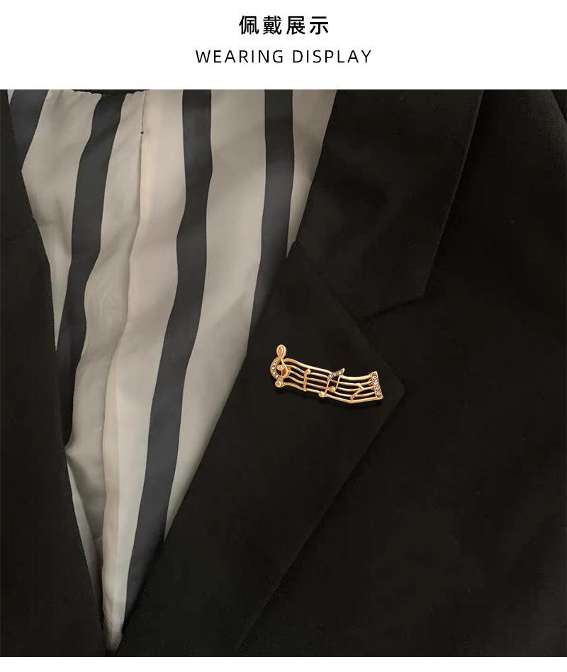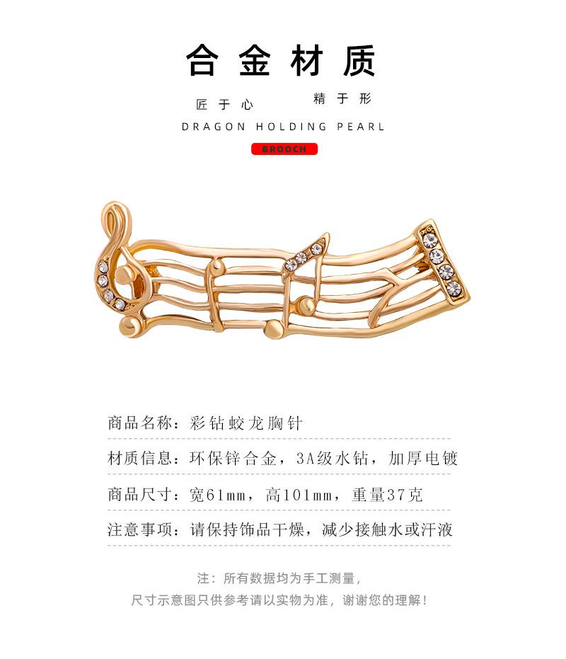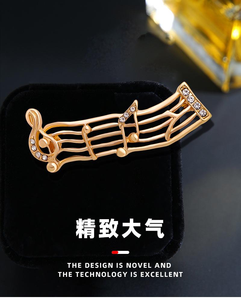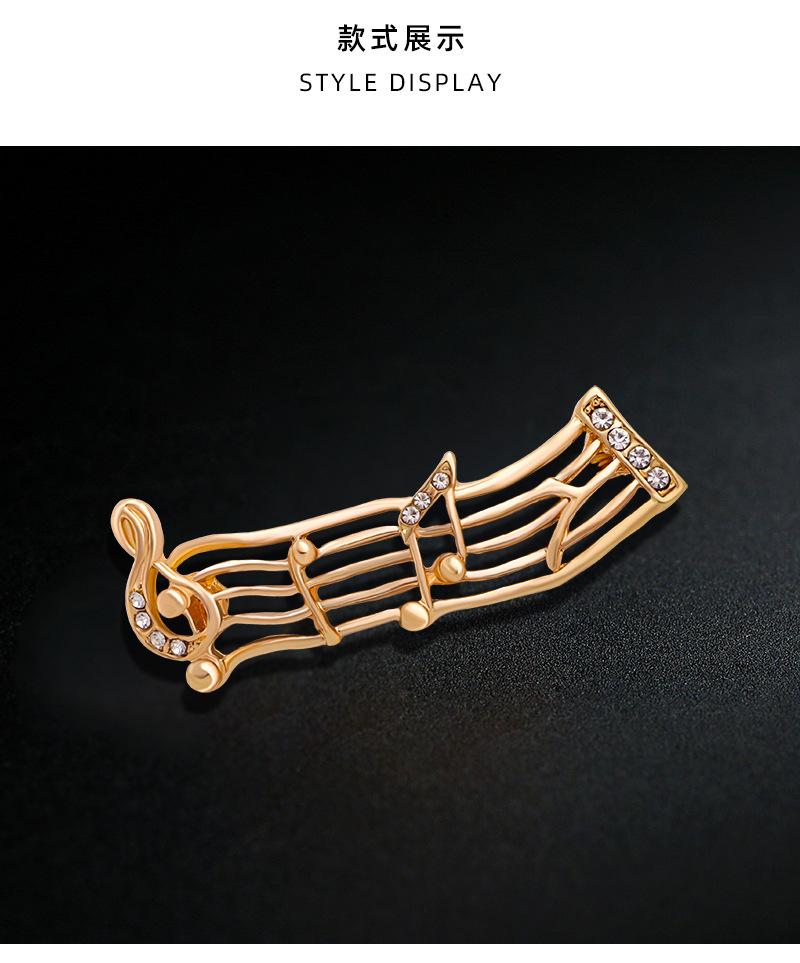 Broche de moda retro europea y americana transfronteriza, broche de música de onda, pin de nota de onda, aleación, pedrería, símbolo musical, ramillete