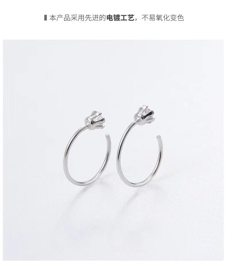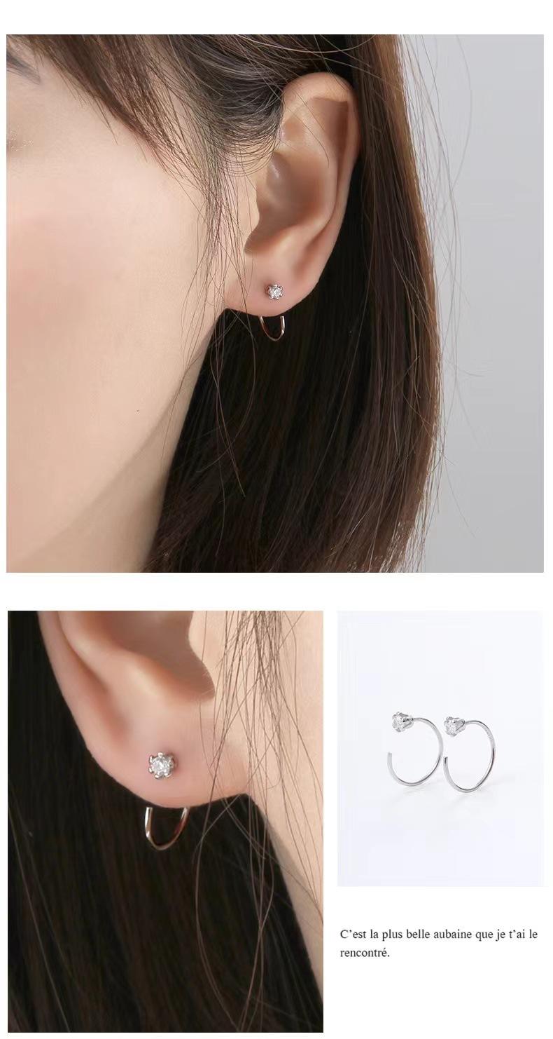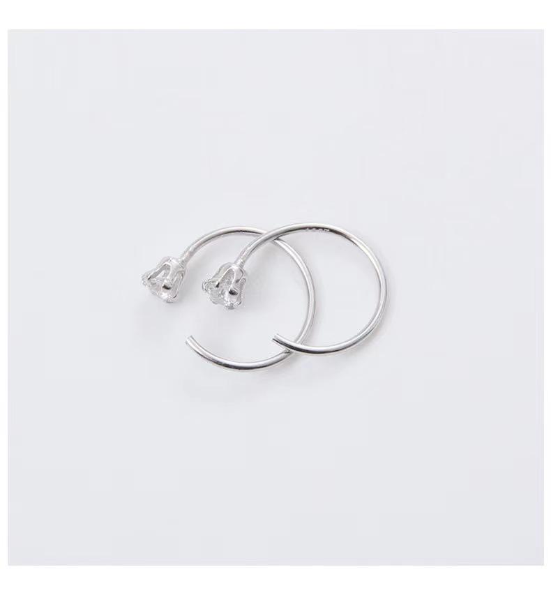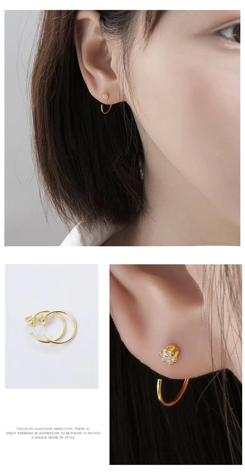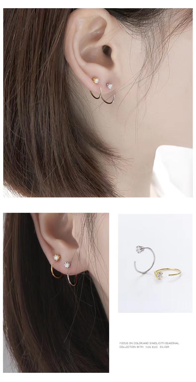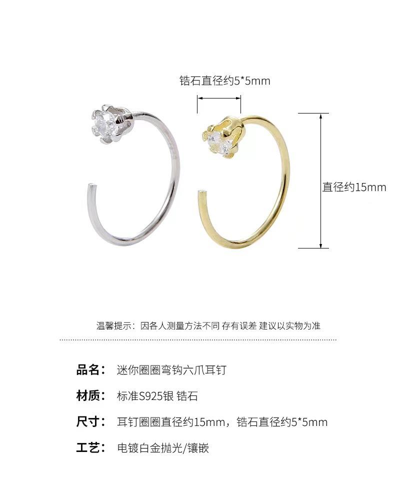 Pendientes de plata de ley s925 para mujer, sencillos, pequeños, con gancho de seis garras y un solo taladro, con agujeros para las orejas.