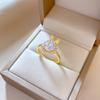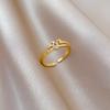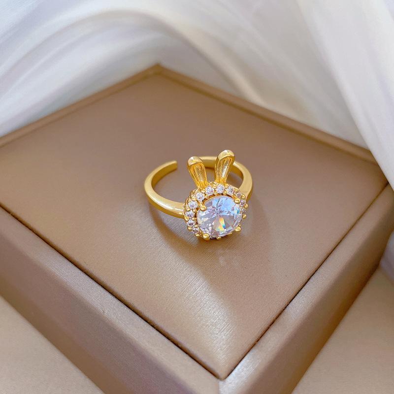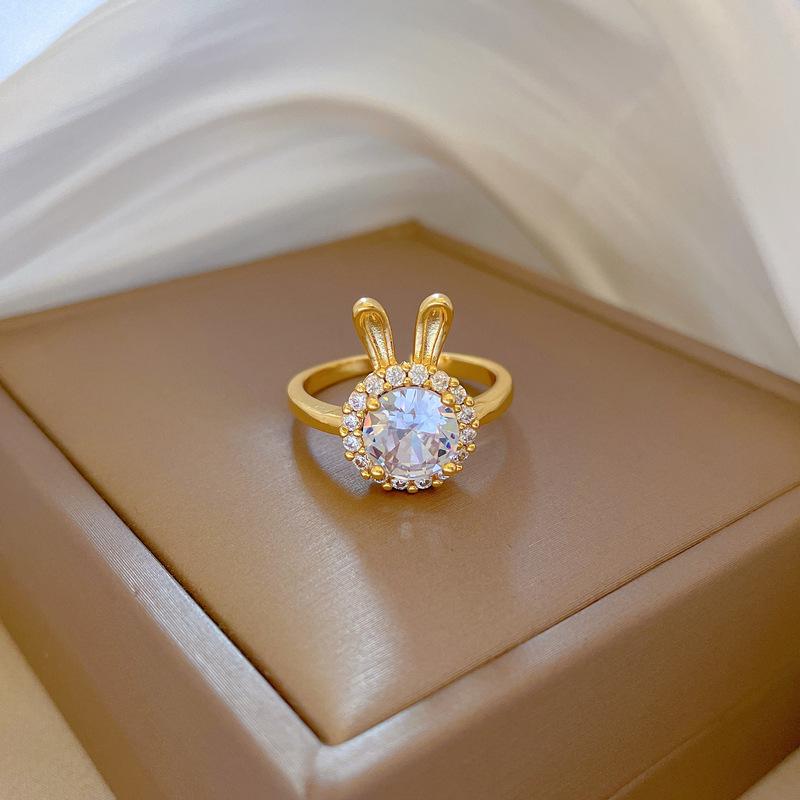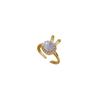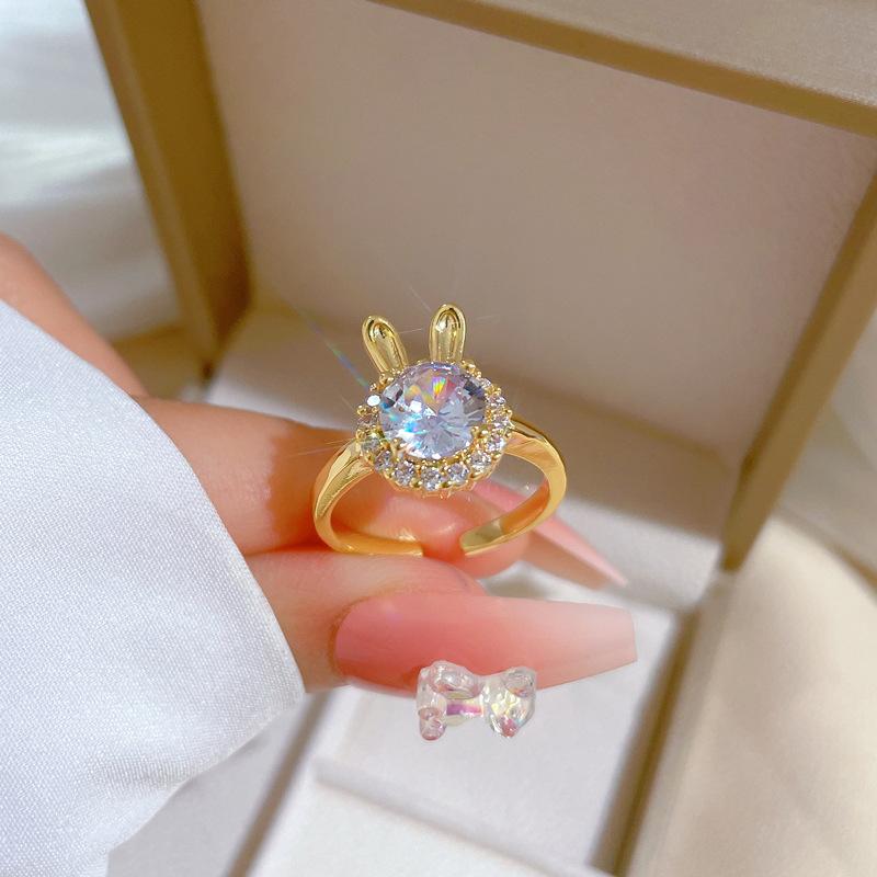 [Oro auténtico] Anillo de conejo con circonitas brillantes, apertura ajustable, joyería sencilla, anillo japonés para parejas.