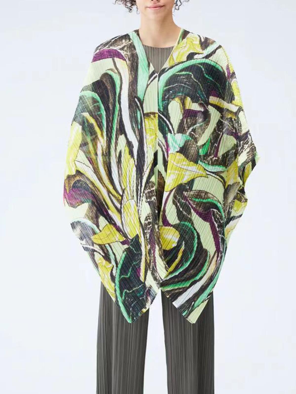 Abrigo tipo chal Miyake de alta calidad, estampado, combina con todo, protector solar, elegante y a la moda, bufanda de seda.