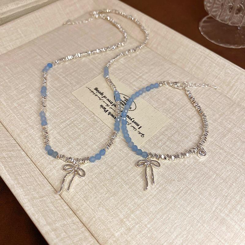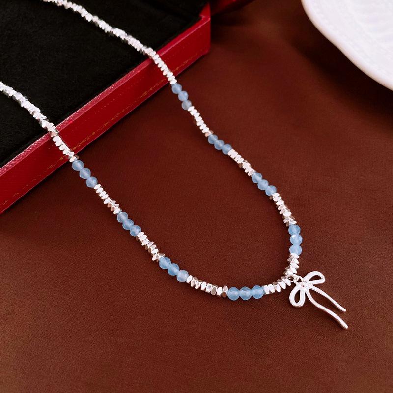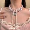 Collar de Cristal de Lazo, Lujo Ligero Retro, Cadena de Clavícula de Alta Gama, Diseño Nicho, Collar de Temperamento Versátil al Por Mayor