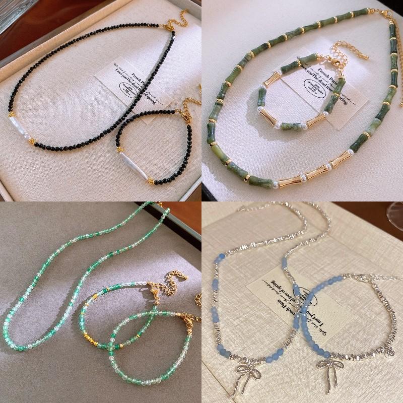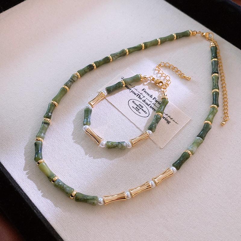 1# Necklace-Black-Bead, 3# Necklace-Green-Bamboo, 4# bracelet-green-bamboo, 5# Necklace-Green-Beads, 6# bracel...