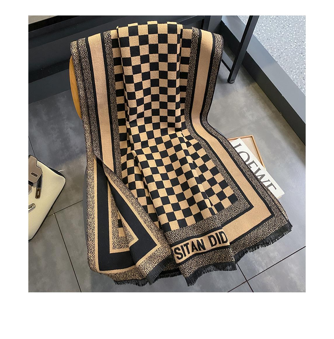 Bufanda de mujer a cuadros en blanco y negro, nueva, de otoño e invierno, gruesa, de cachemira, cálida, estilo coreano, clásica, combinable con todo.