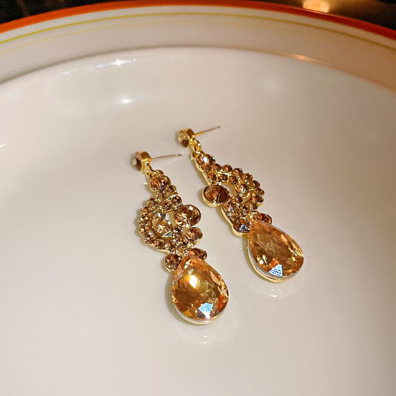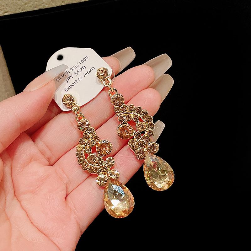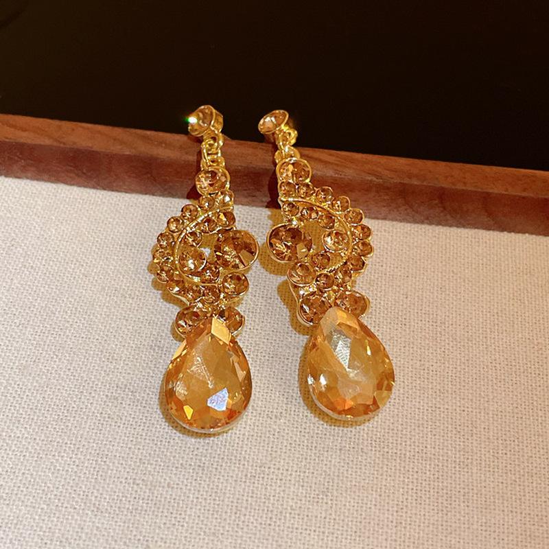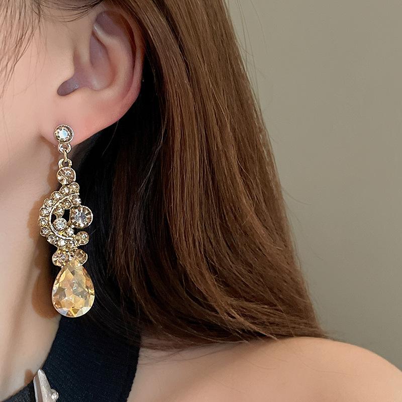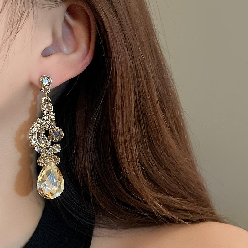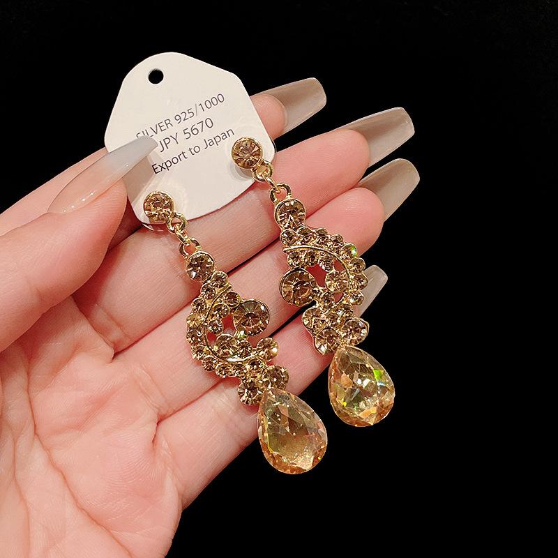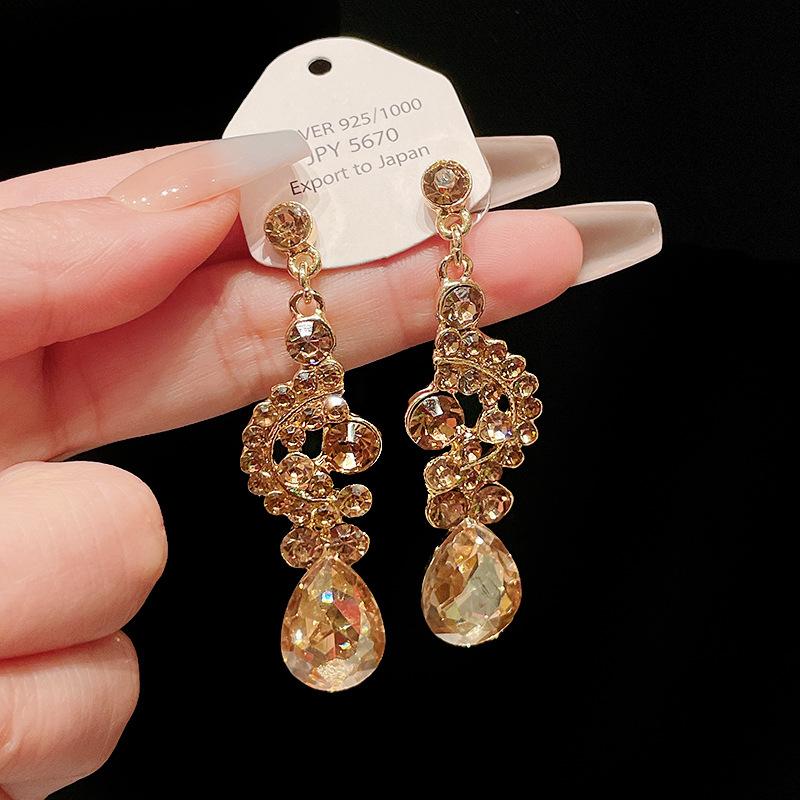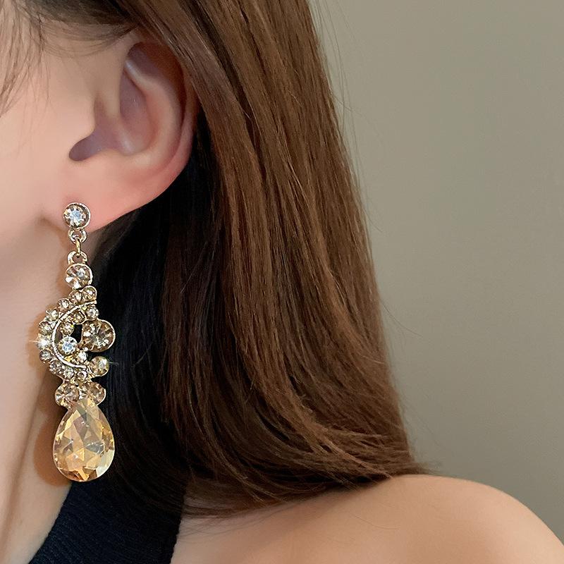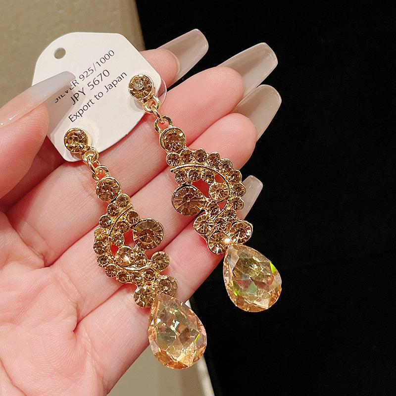 Pendientes largos con borlas de metal con incrustaciones de diamantes, populares en Europa y América, para mujer, pendientes de alta gama, temperamento de nicho, pendientes transfronterizos al por mayor