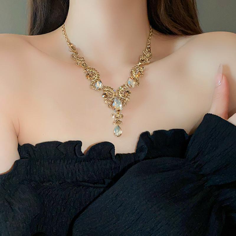Collar multicapa con temperamento de perla, cadena de clavícula estilo palacio de nicho retro para mujer, moda de alta gama, sensación de luz, joyería de lujo al por mayor