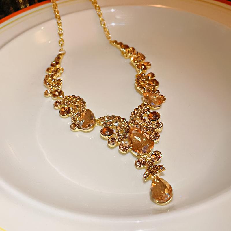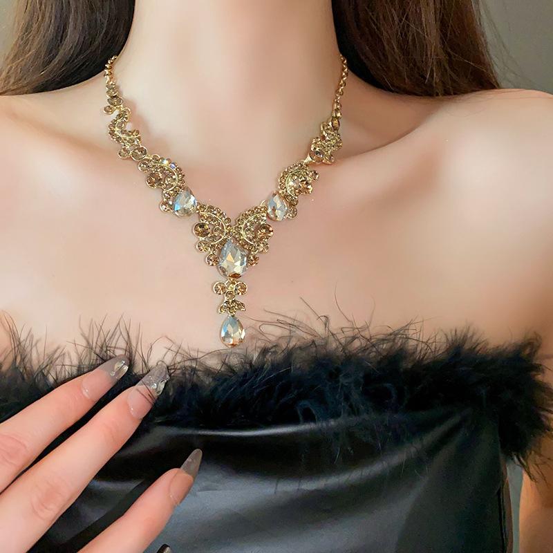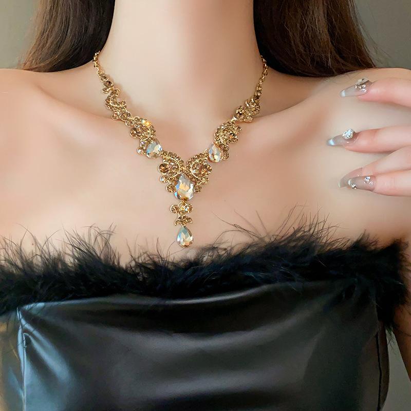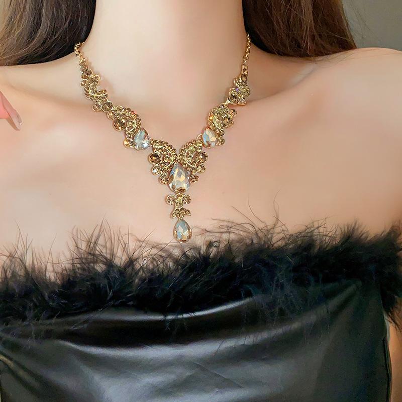 Collar geométrico de gota de agua en forma de abanico con incrustaciones de diamantes, temperamento retro de lujo ligero, cadena para la clavícula, joyería de diseño Joker de moda al por mayor