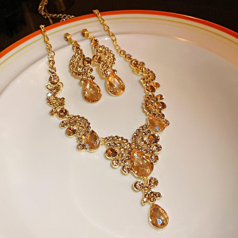 Conjunto de collar y pendientes con diamantes cuadrados, estilo europeo y americano, cadena de clavícula ligera de lujo, personalidad, joyería nueva de alta gama al por mayor.