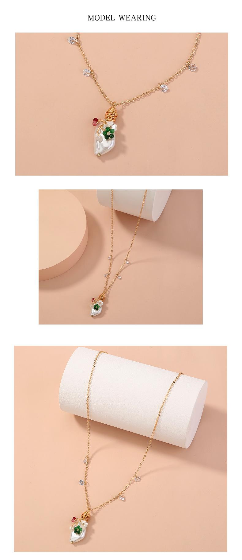 | Collar de clavícula con colgante de empalme de perlas simple con personalidad de accesorios populares europeos y americanos, collar multicapa moderno y moderno para mujeres |