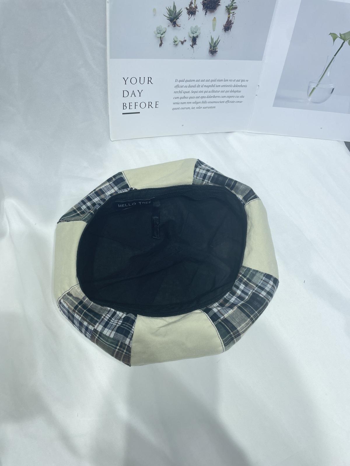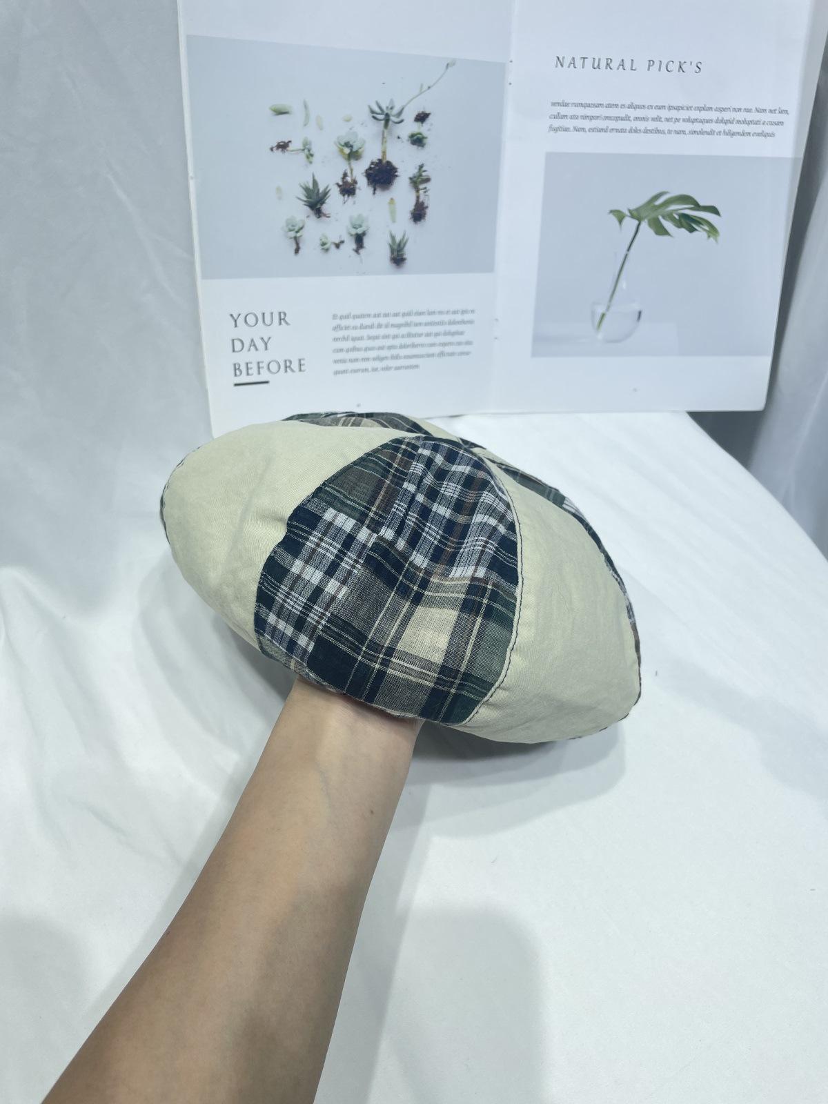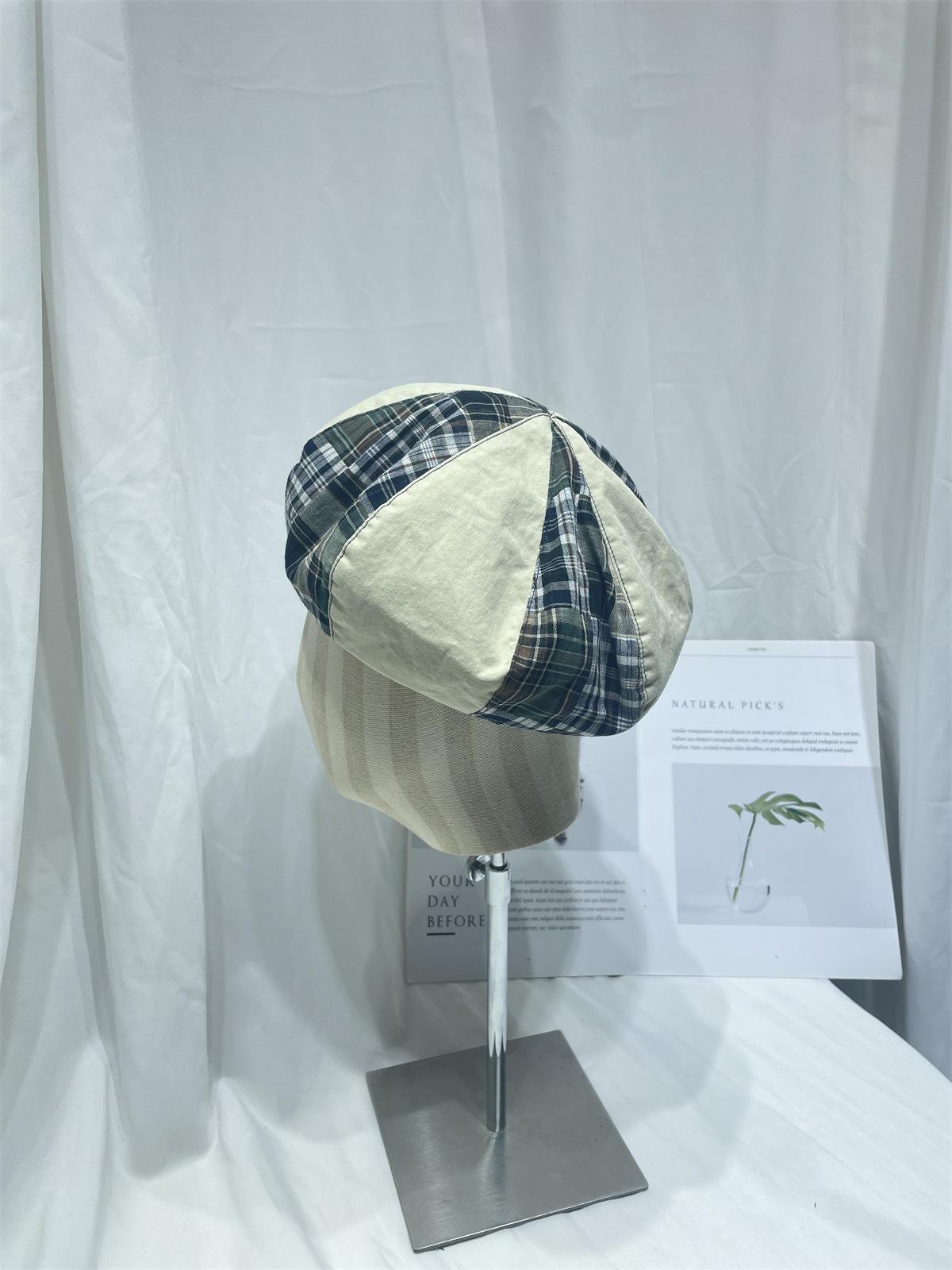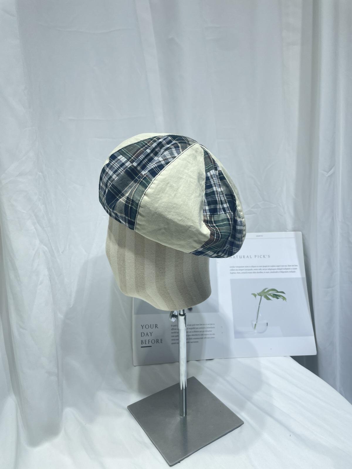 Boina sencilla de patchwork a cuadros estilo japonés para niños, moda de primavera y verano, retro, que muestra el rostro, de pequeño pintor, sombrero de calabaza, sombrero de brote