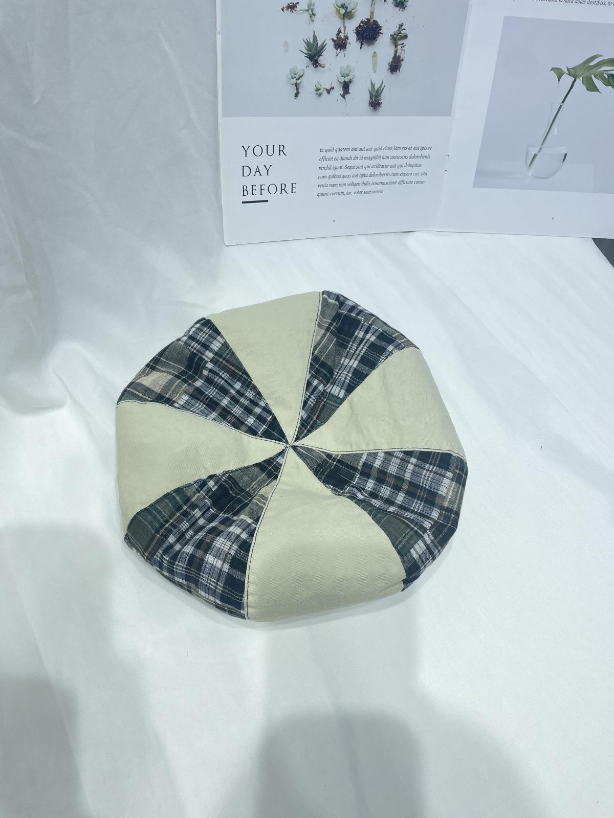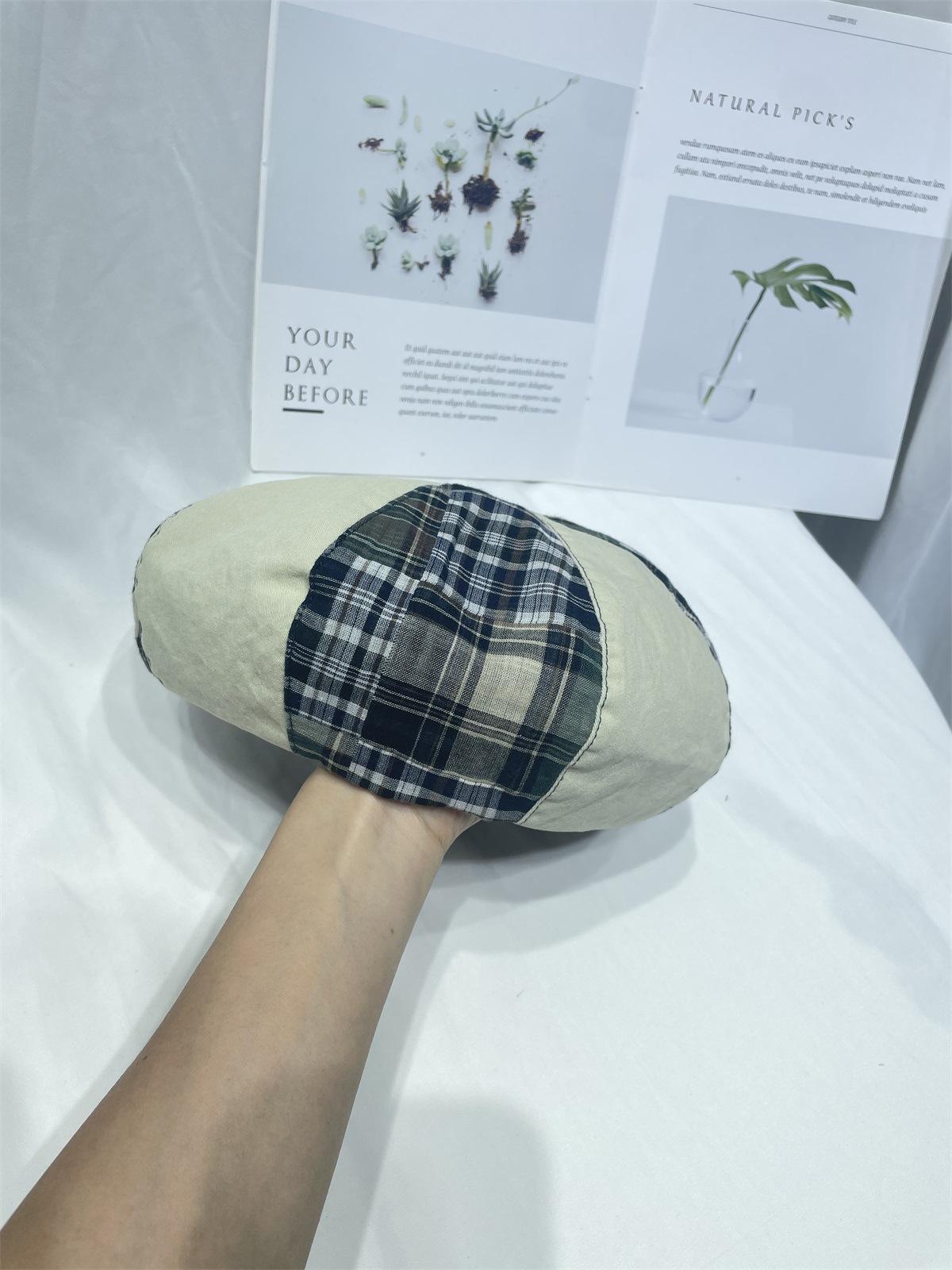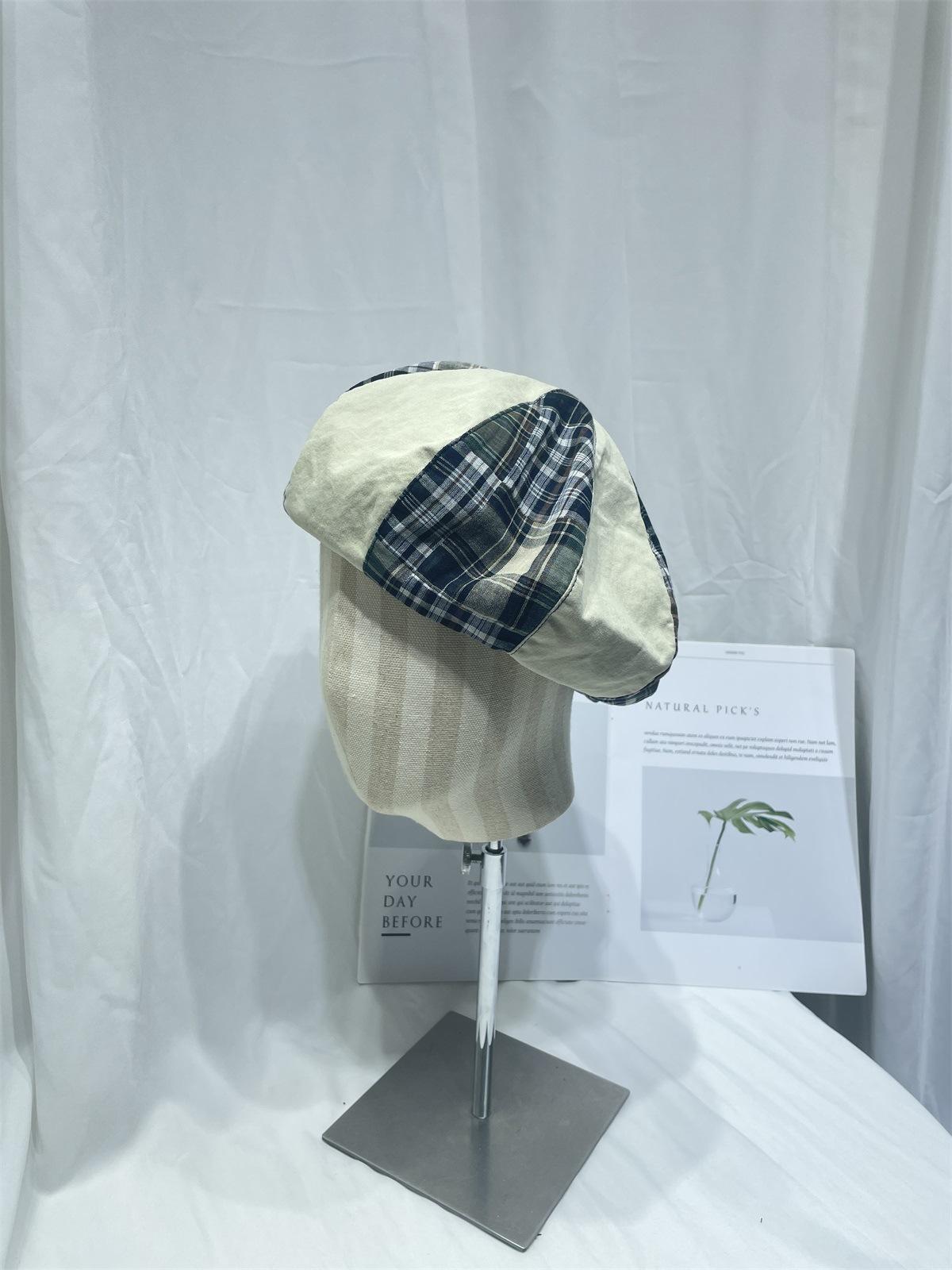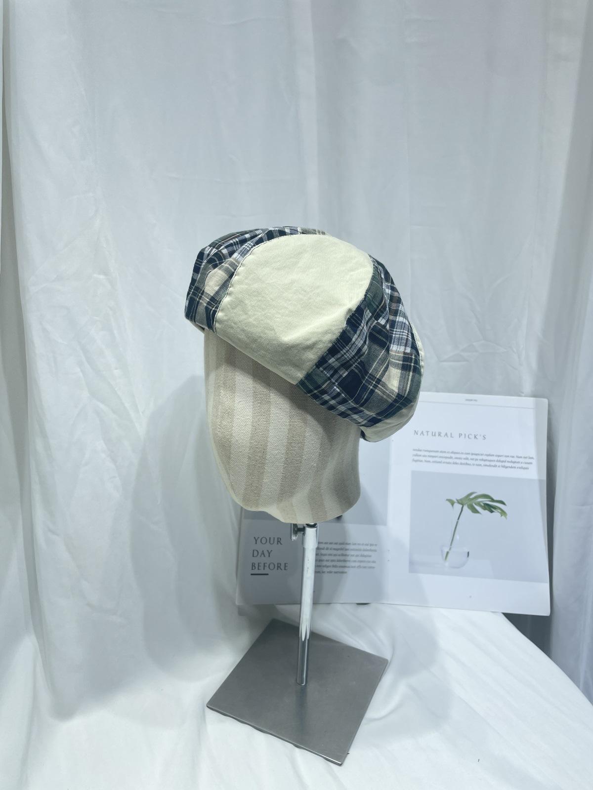 Boina sencilla de patchwork a cuadros estilo japonés para niños, moda de primavera y verano, retro, que muestra el rostro, de pequeño pintor, sombrero de calabaza, sombrero de brote