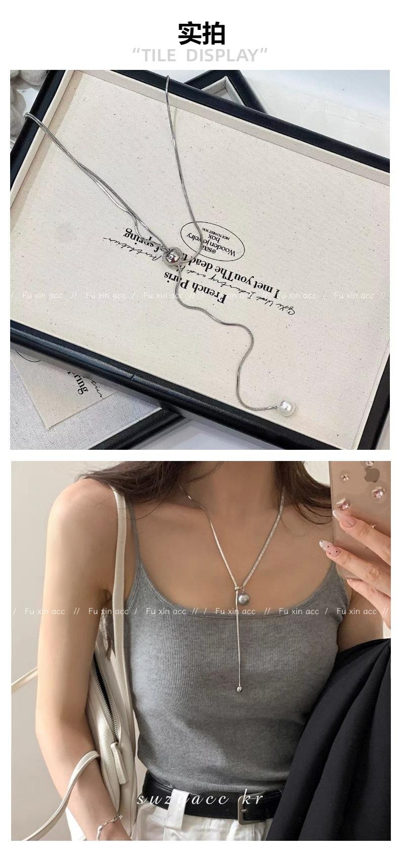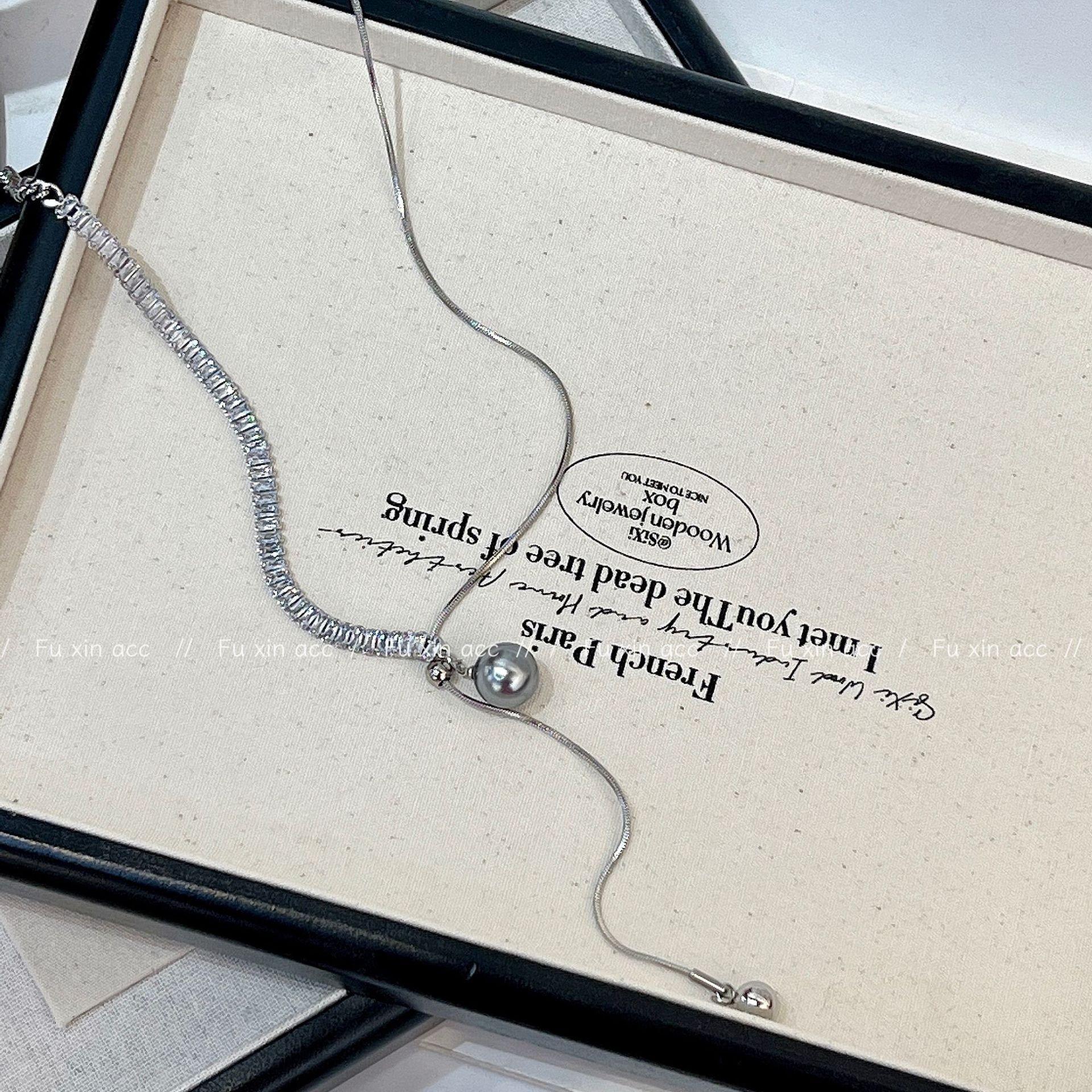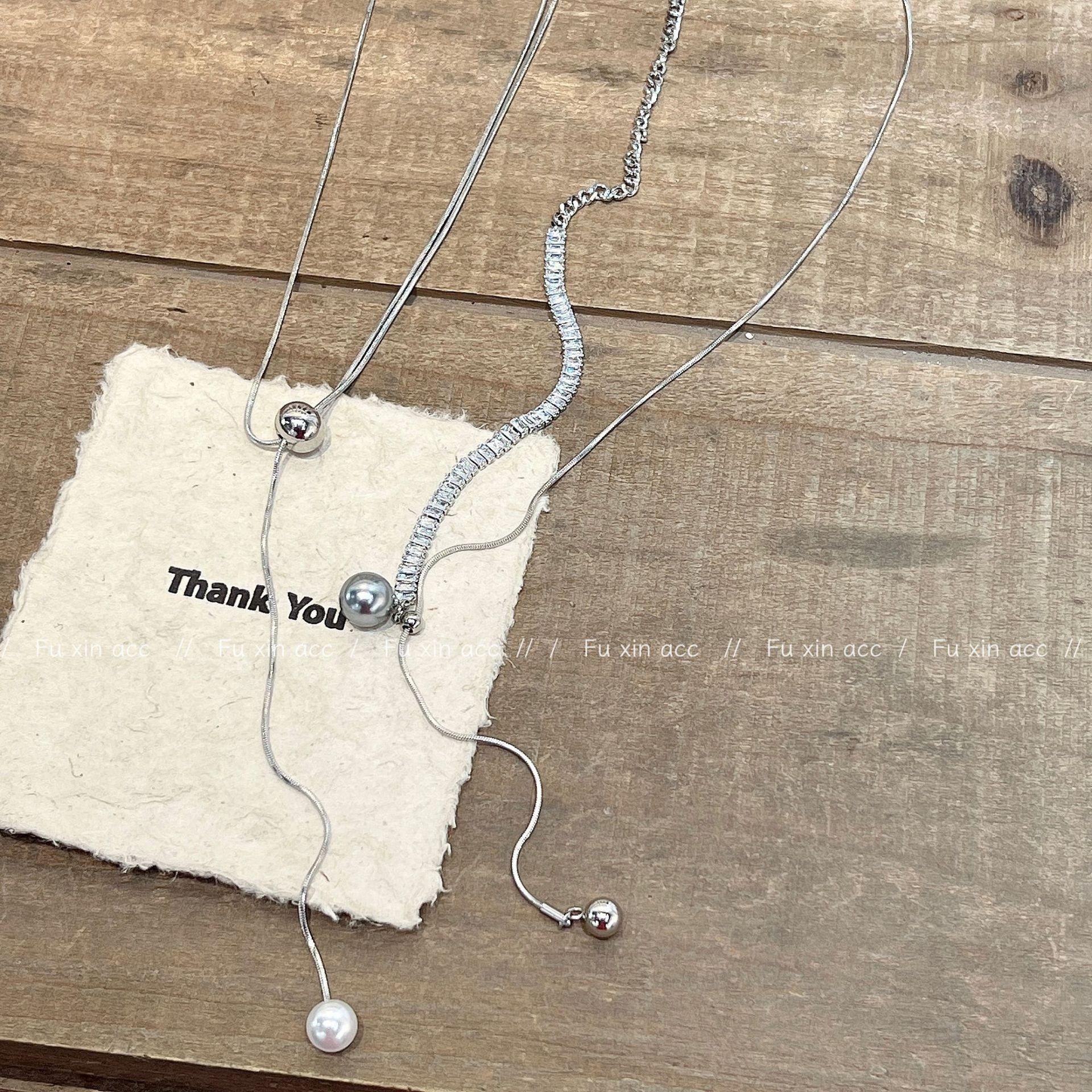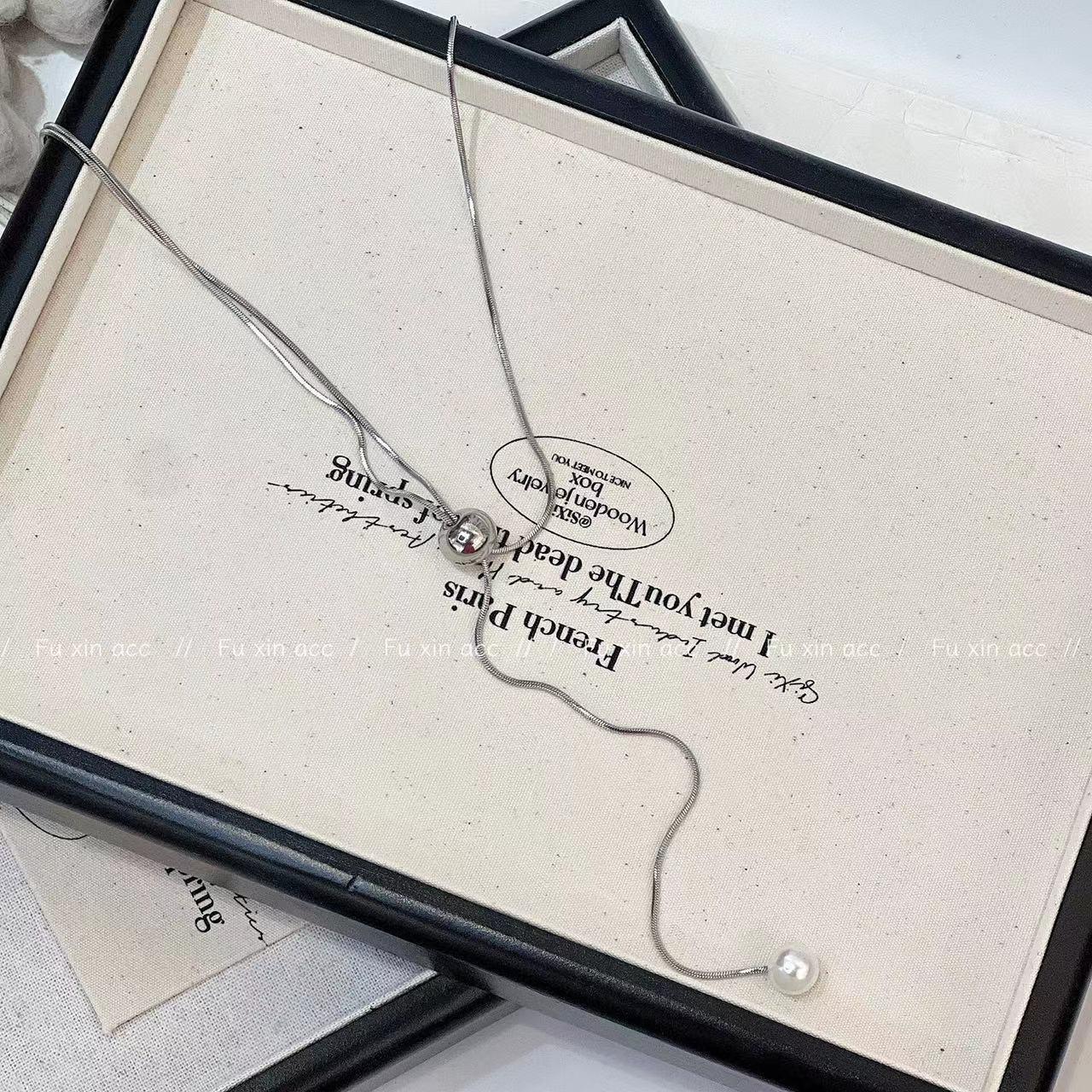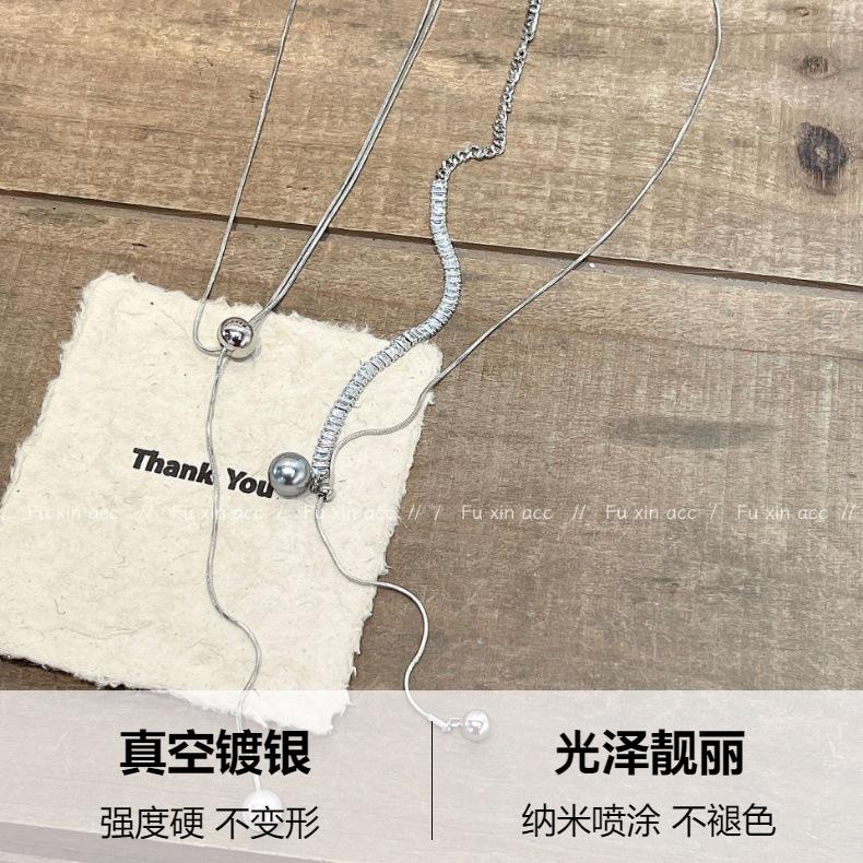 FX - Nuevo collar con colgante de borla de cuentas redondas de acero inoxidable con cadena de circonitas para pareja, ligero y de lujo, de alta calidad